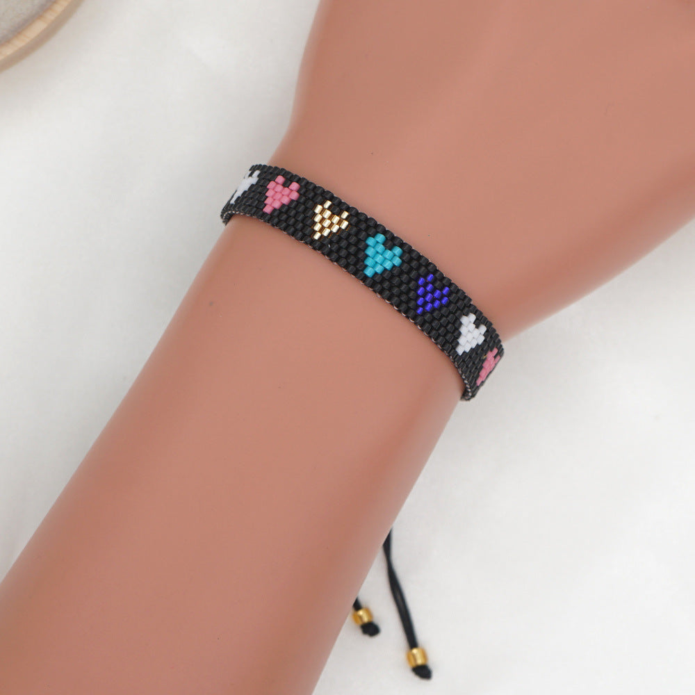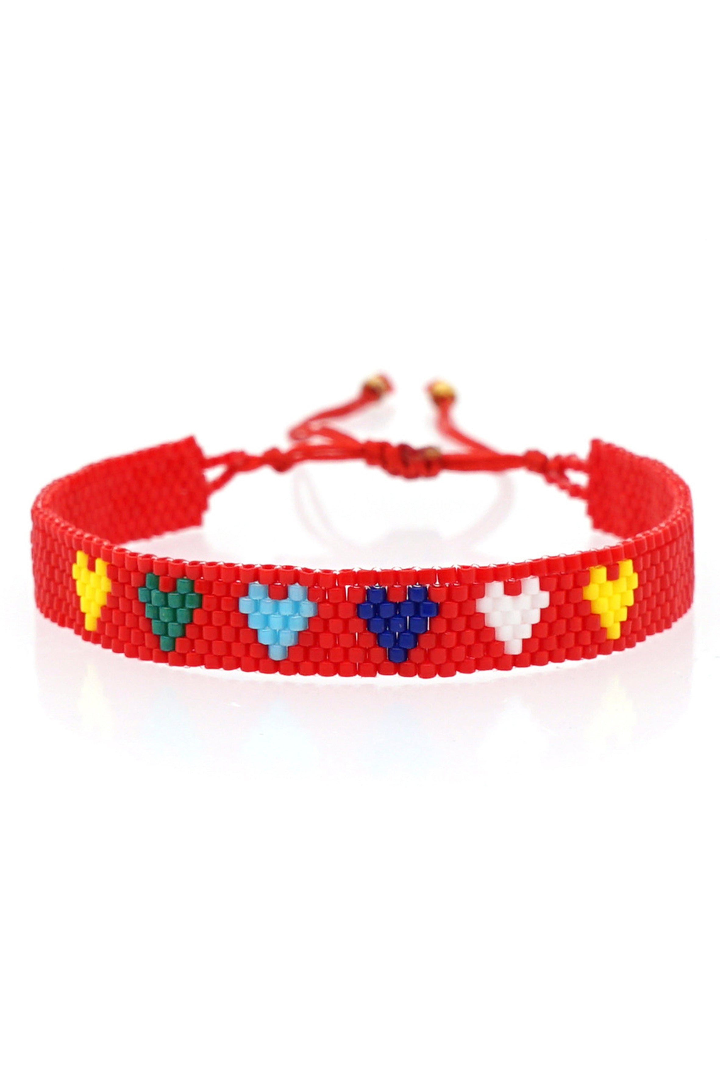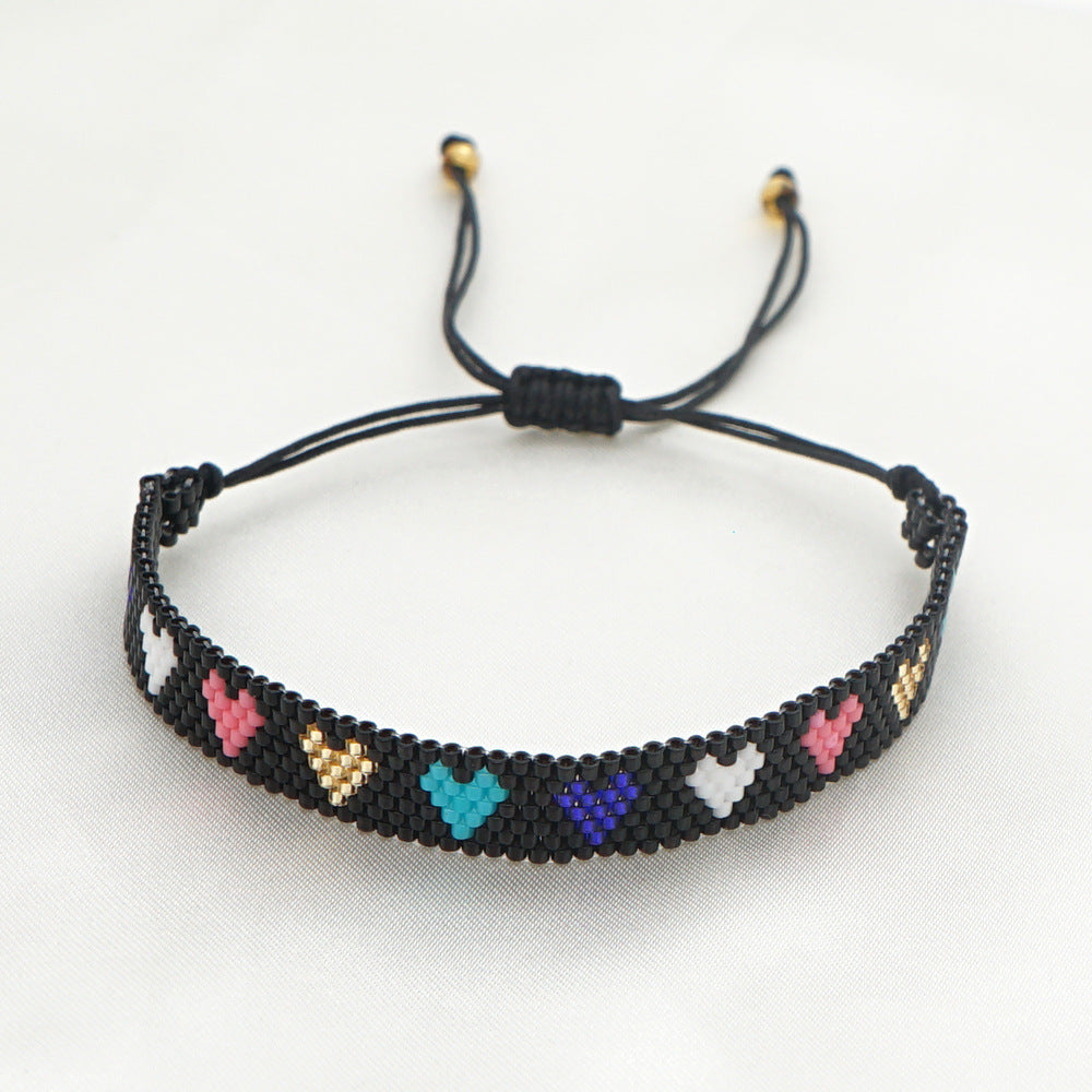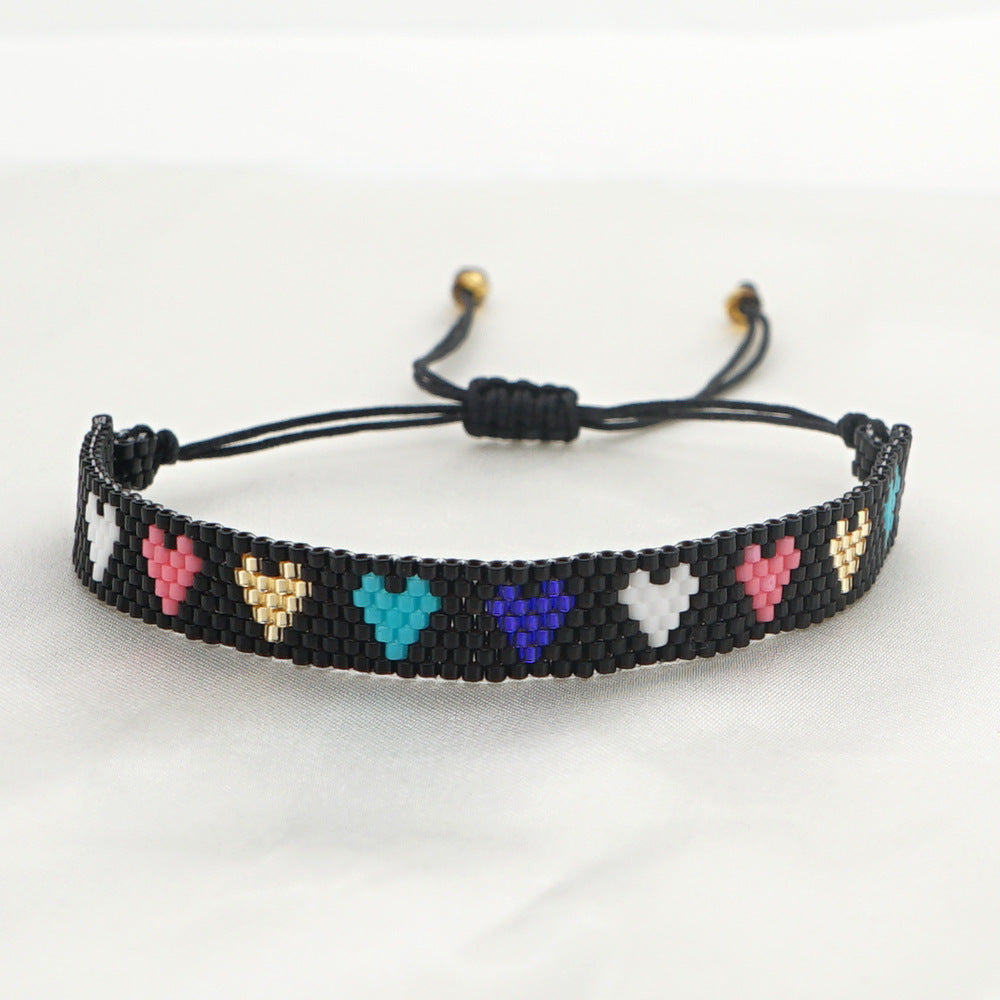 Pulseras trenzadas con cuentas de semillas en forma de corazón B3139