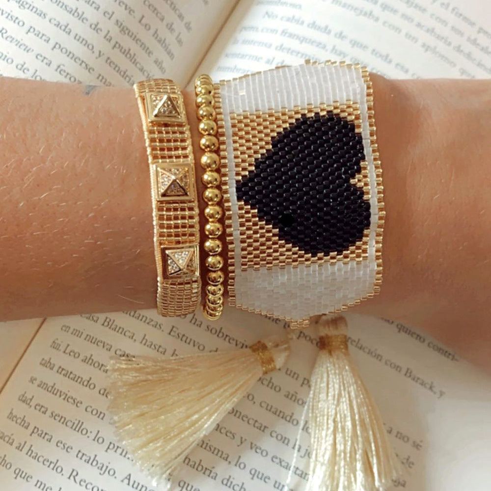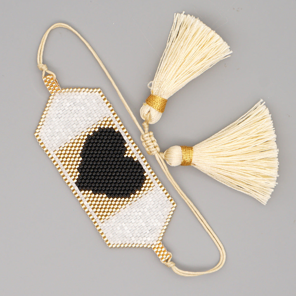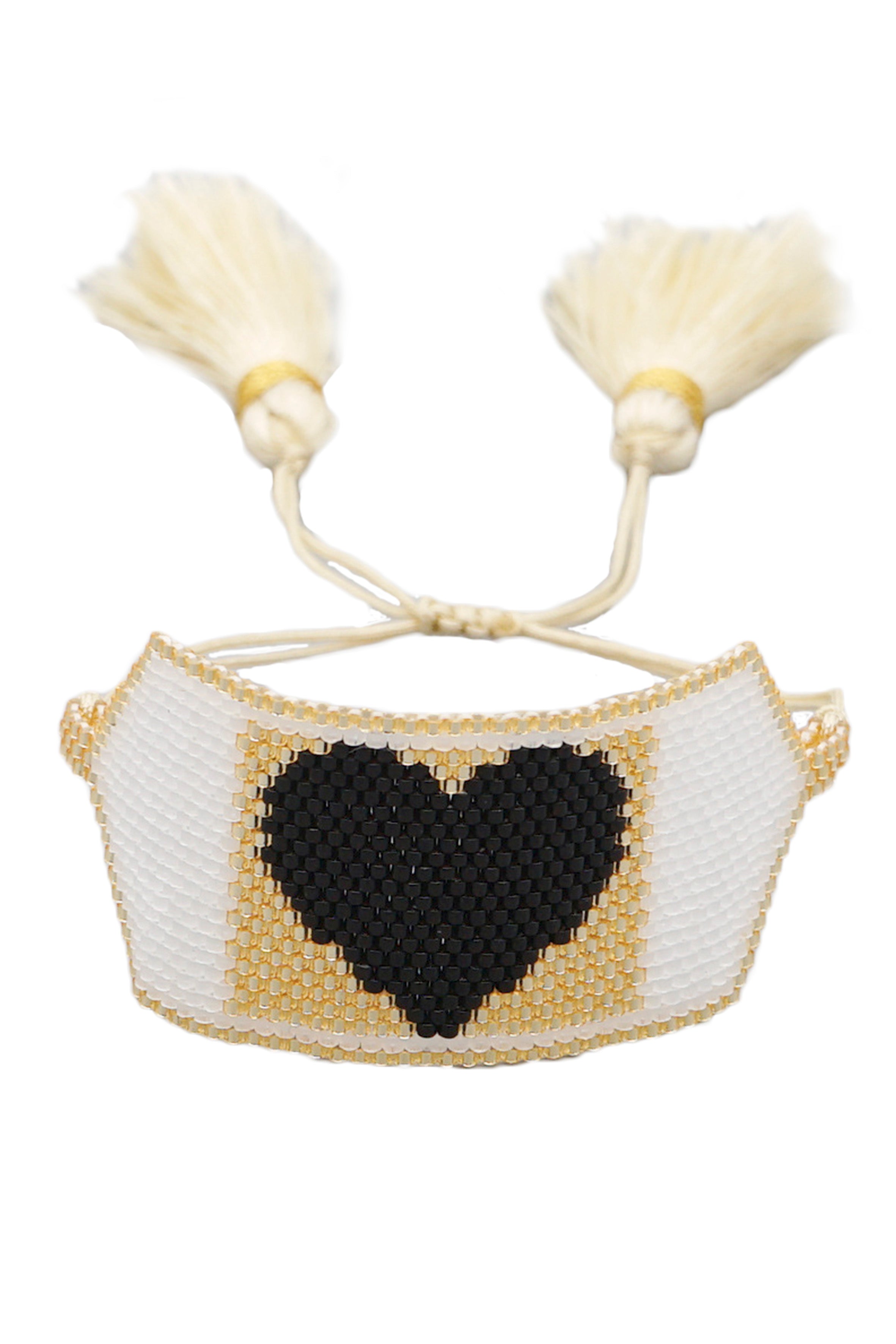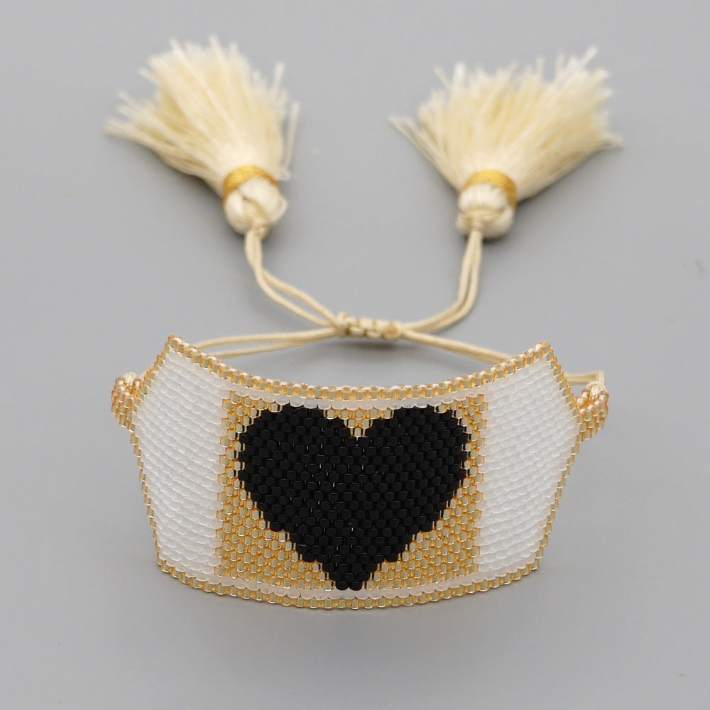 Pulseras de borlas trenzadas con cuentas de semillas en forma de corazón B2554