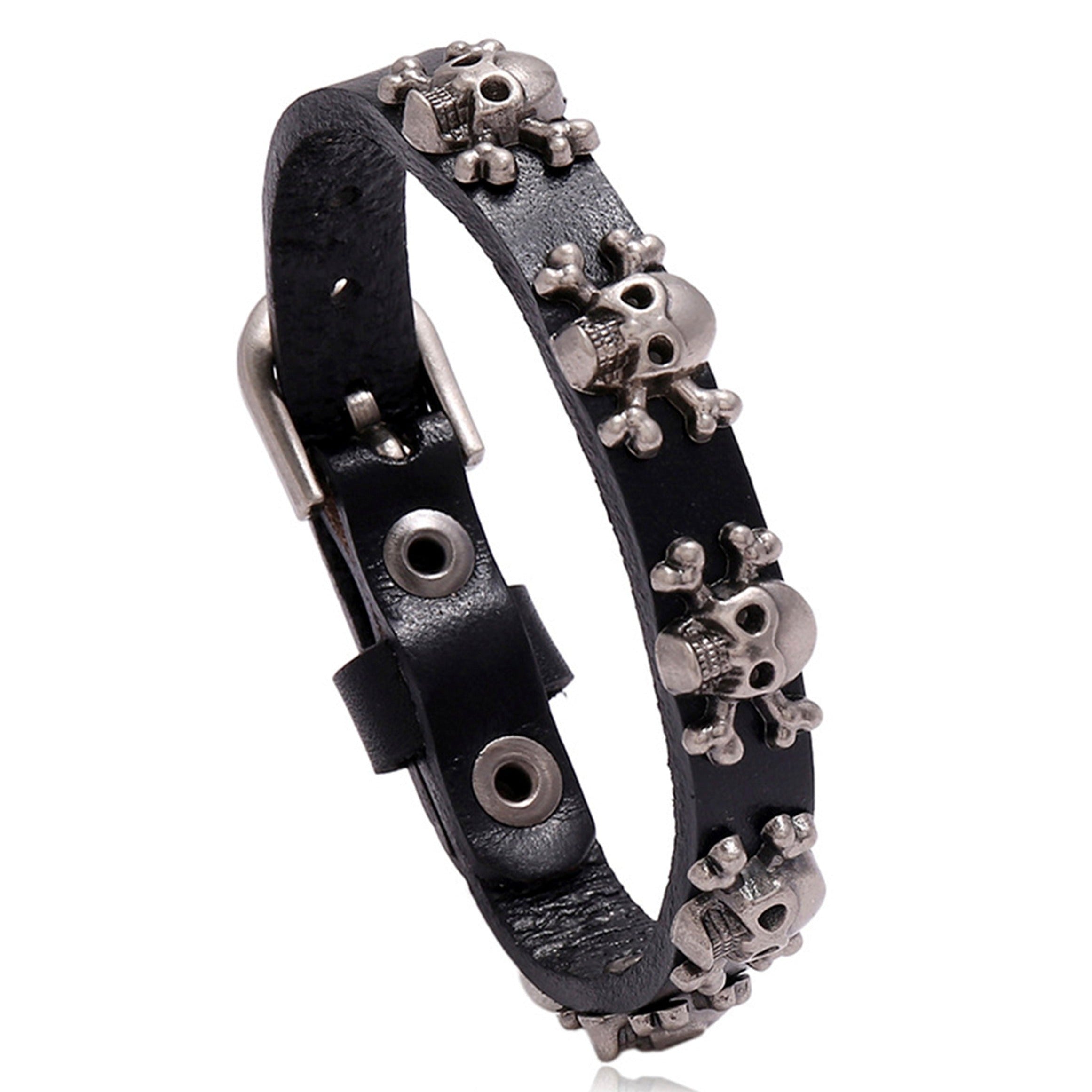 3. Pulsera de cuero con broche de presión y calavera punk B3655
