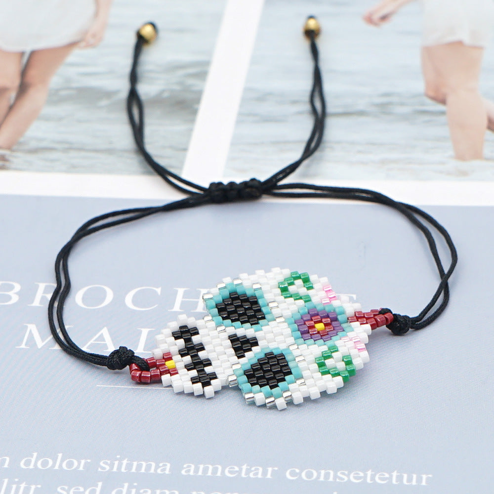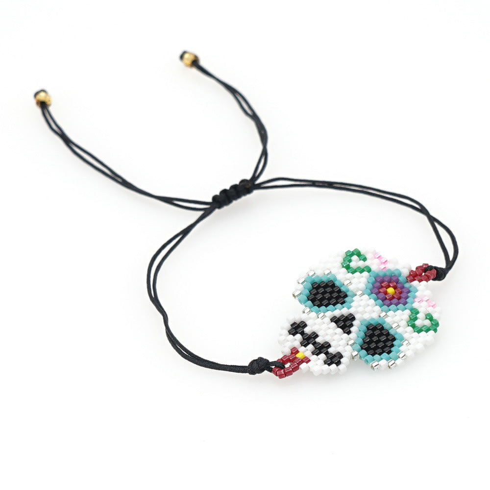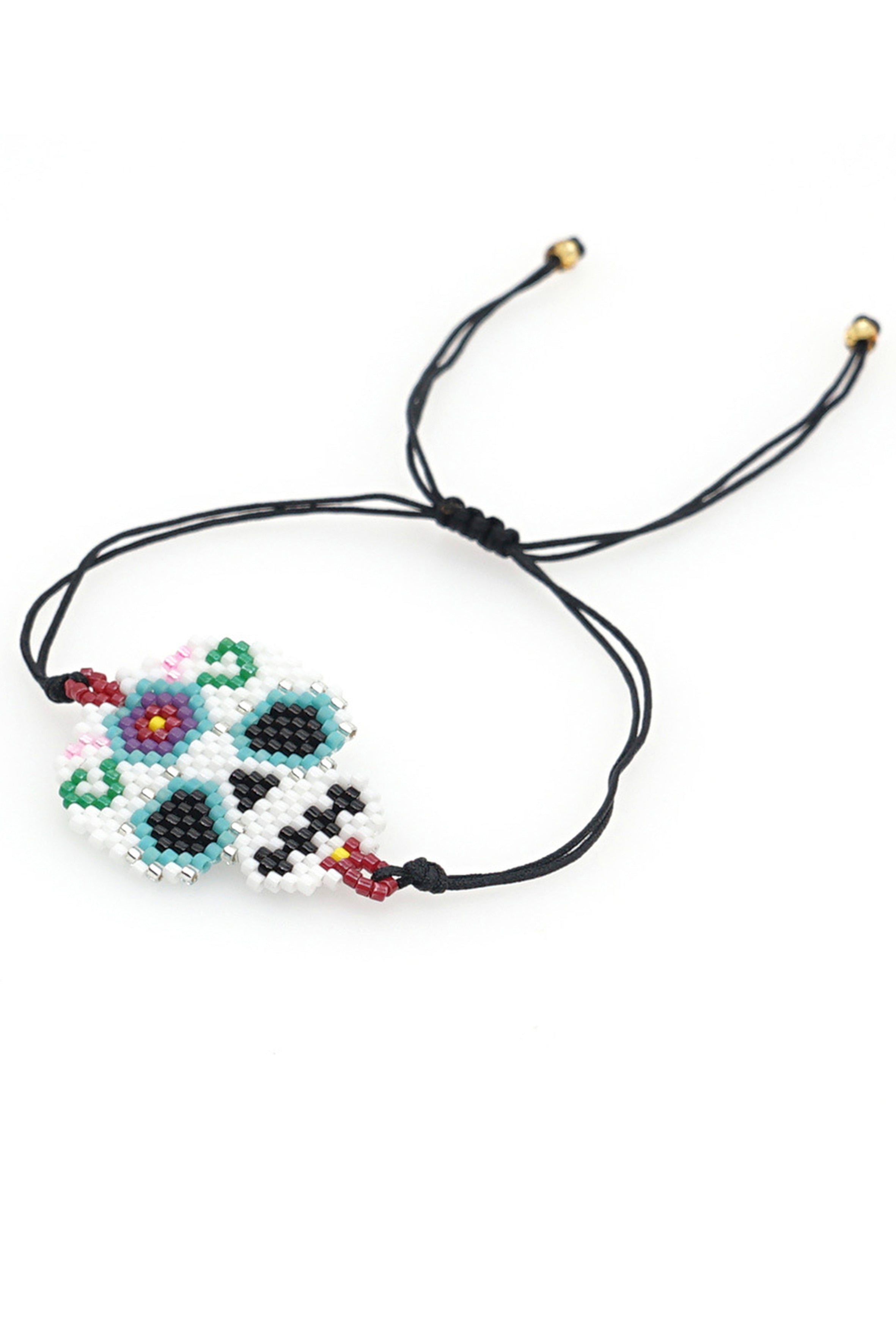 Pulseras trenzadas con cuentas de semillas y calaveras B2921