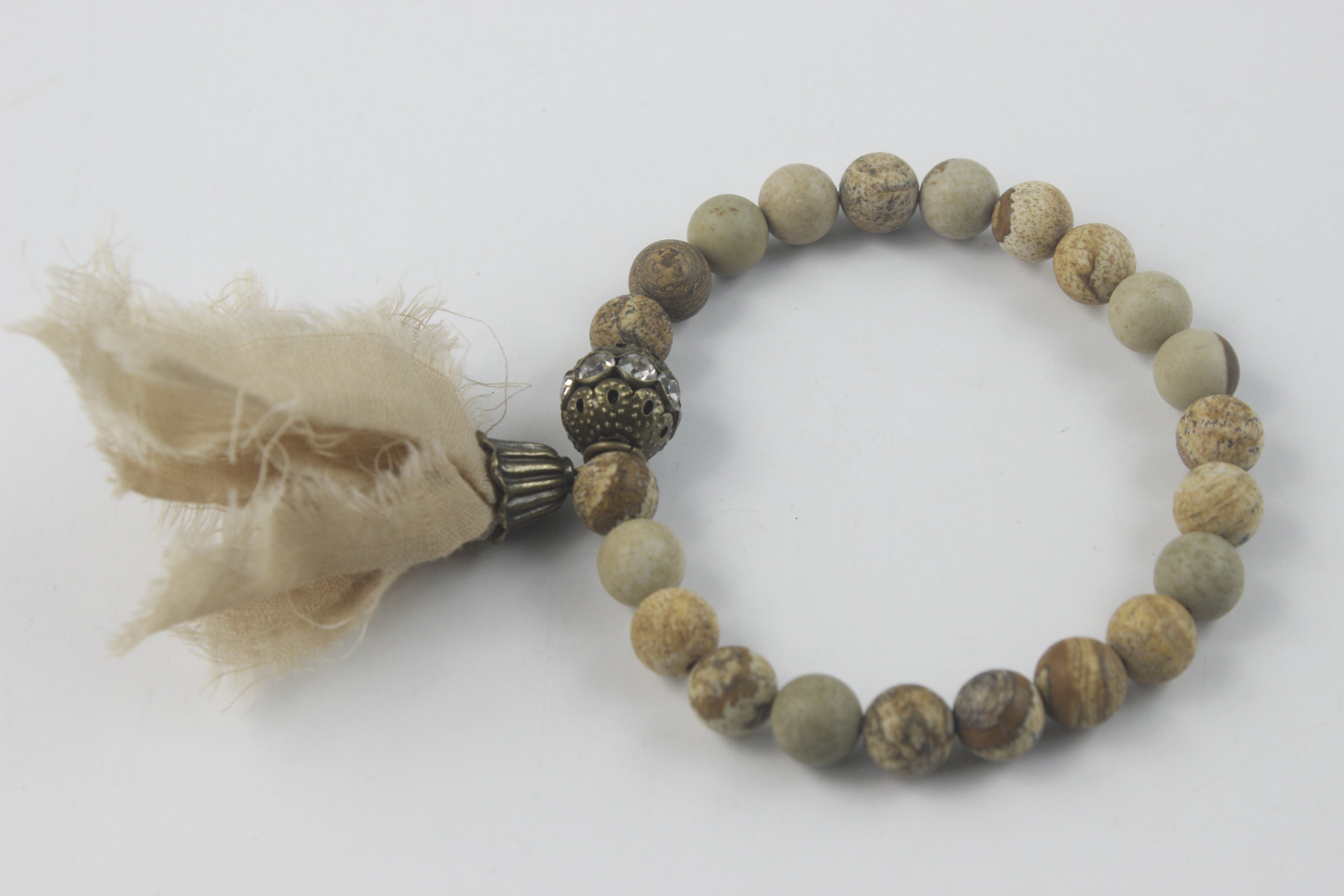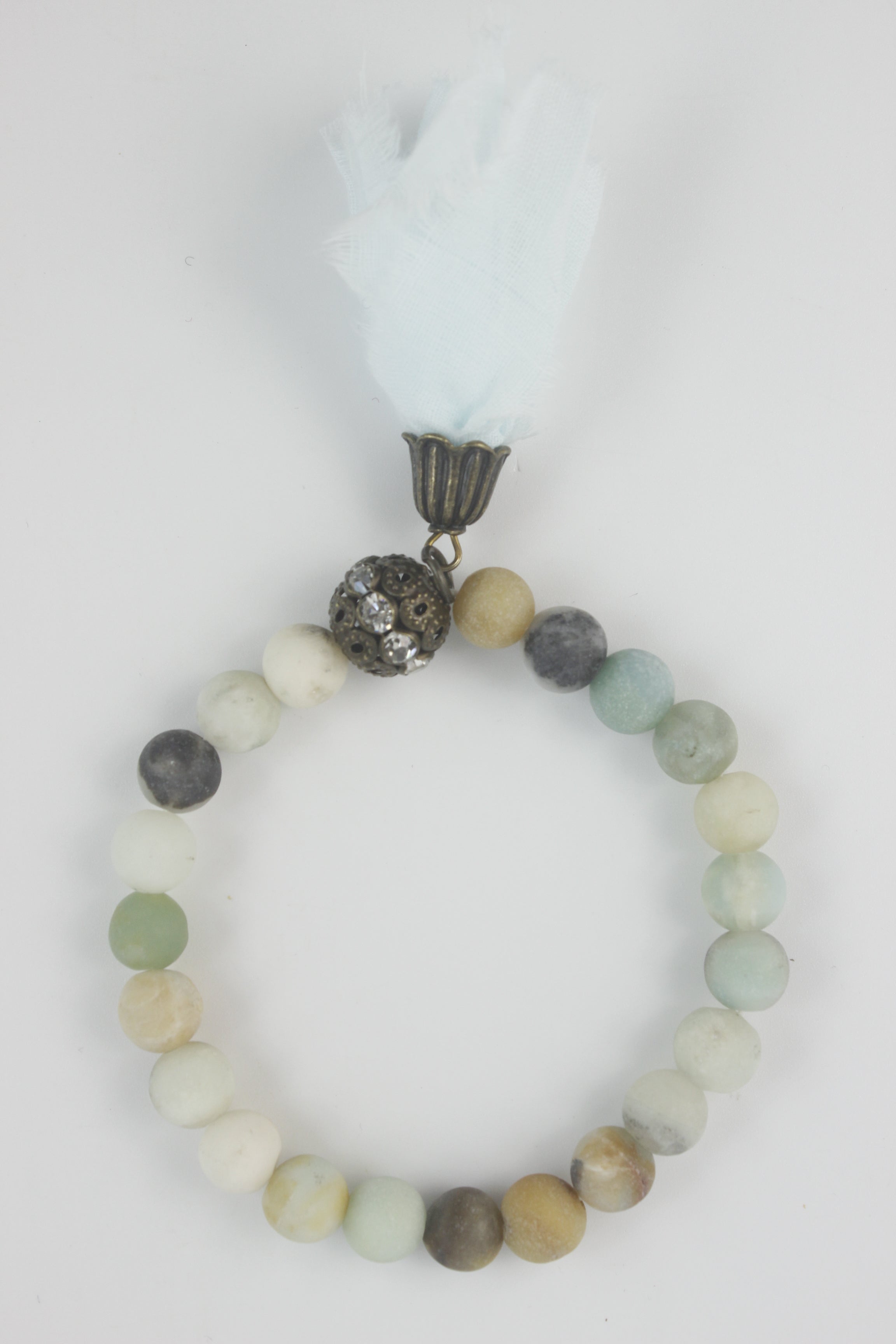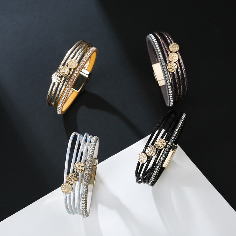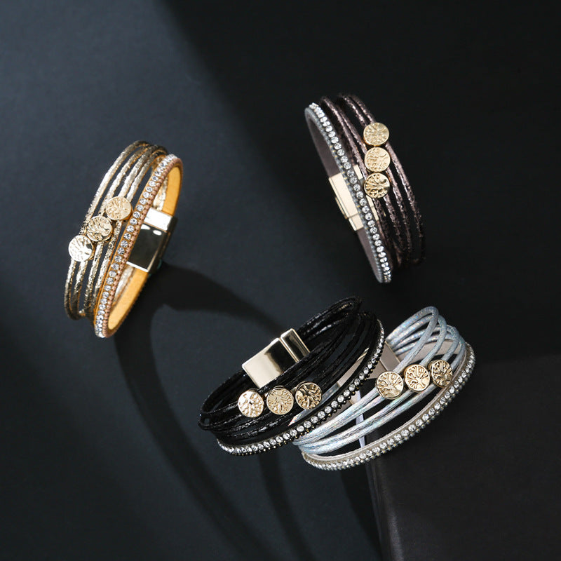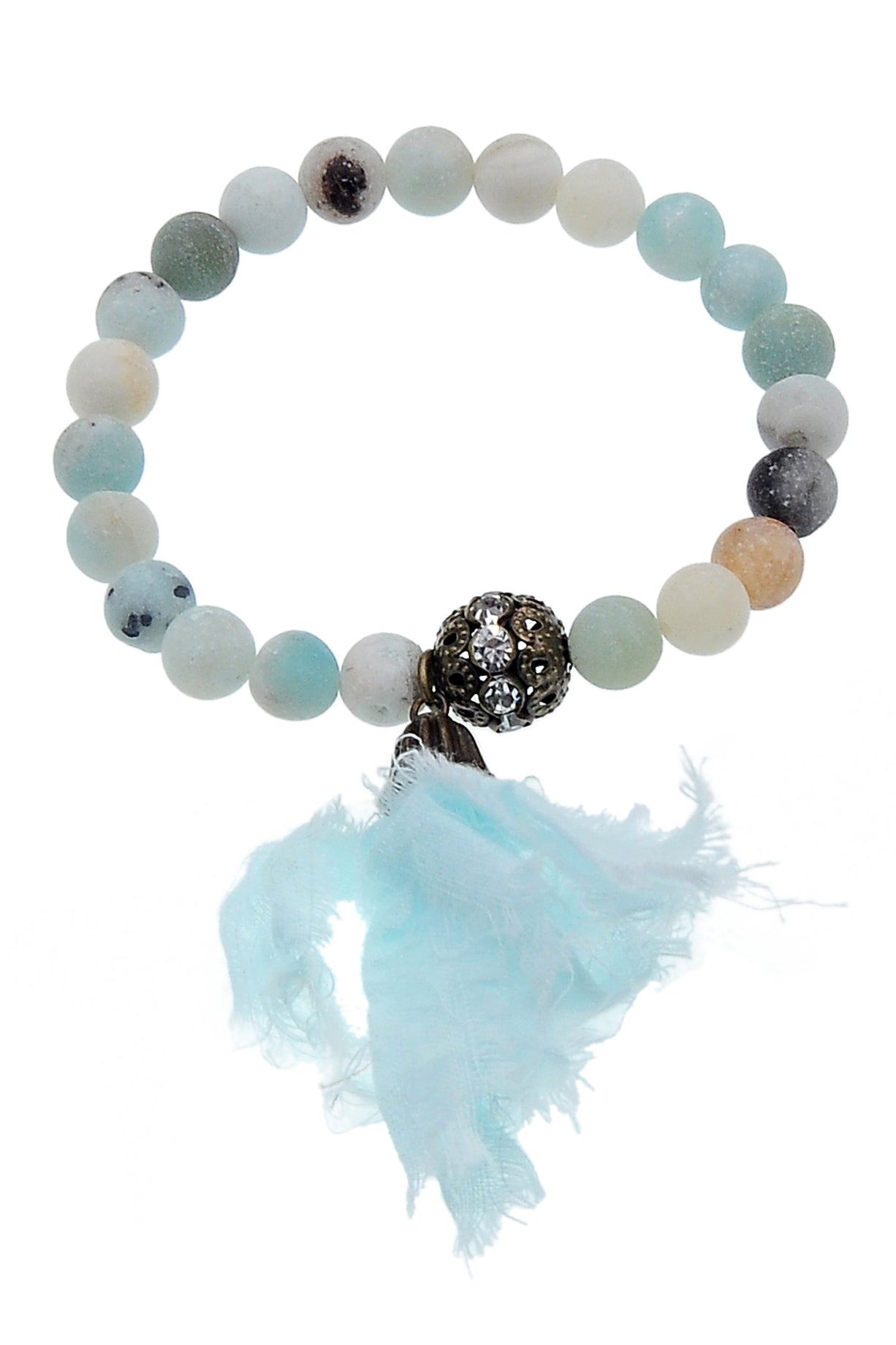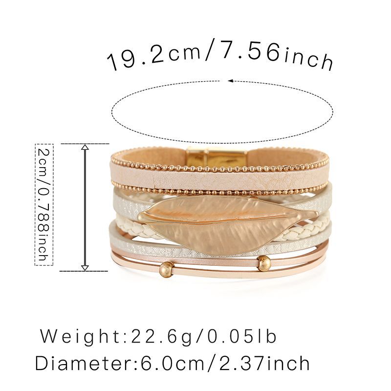 Pulsera de cuero con diamantes de imitación y piedra natural hecha a mano B4226