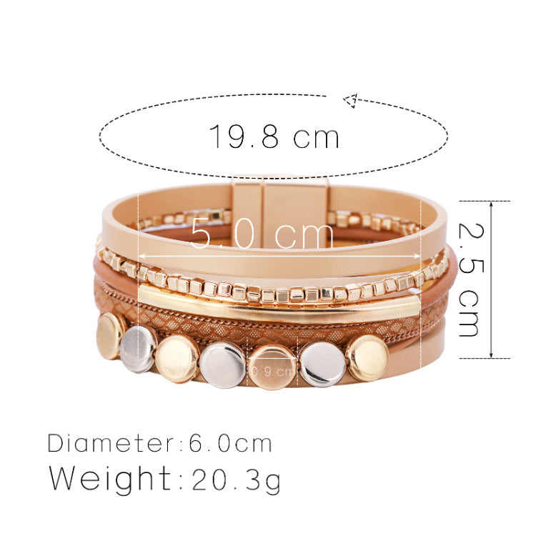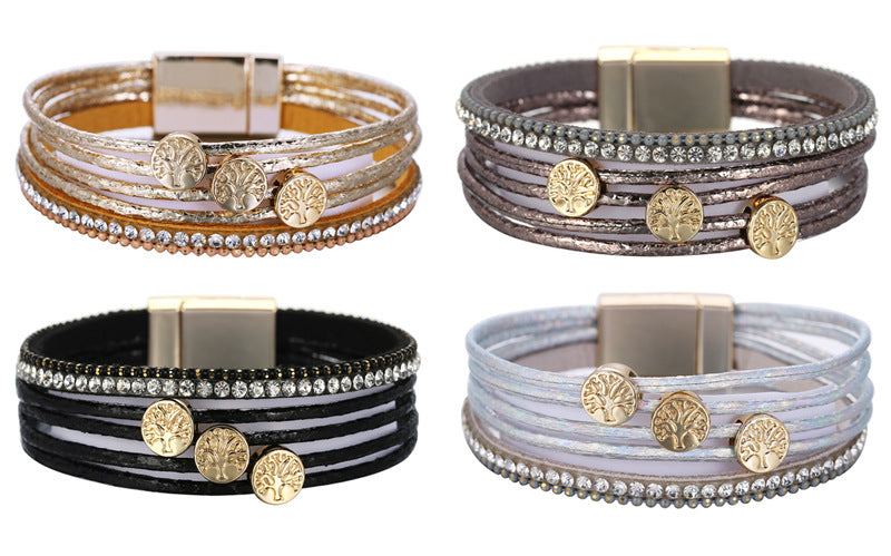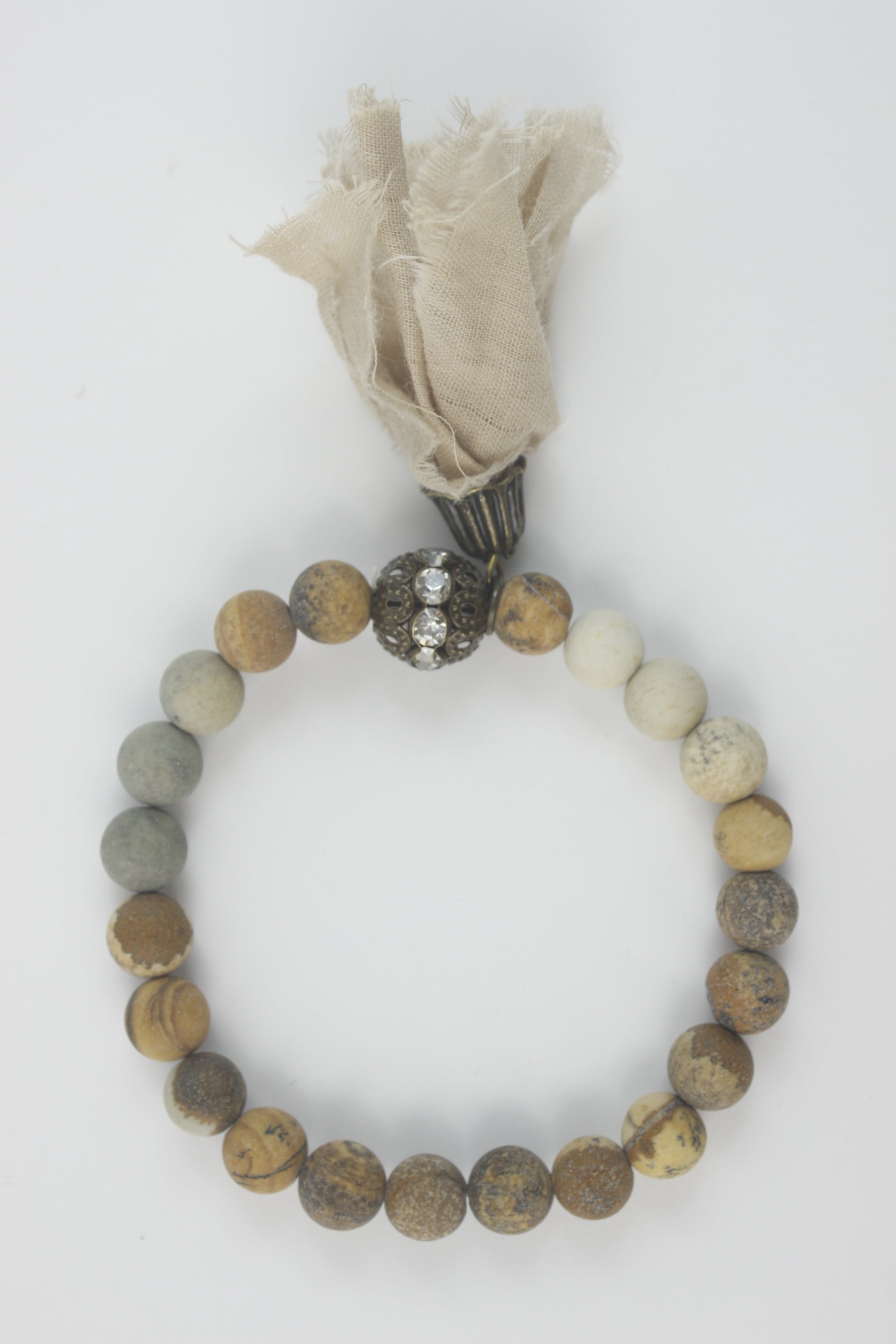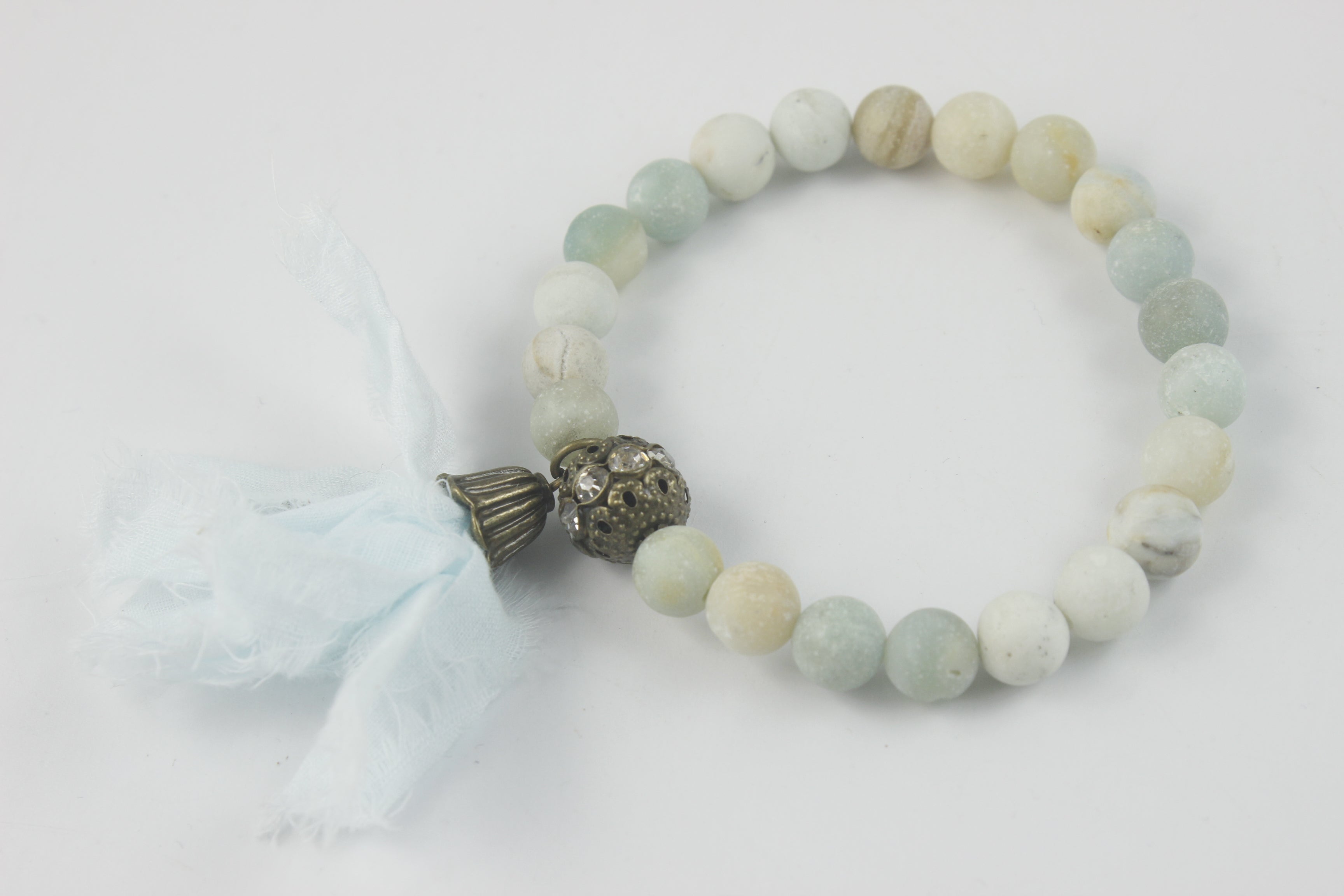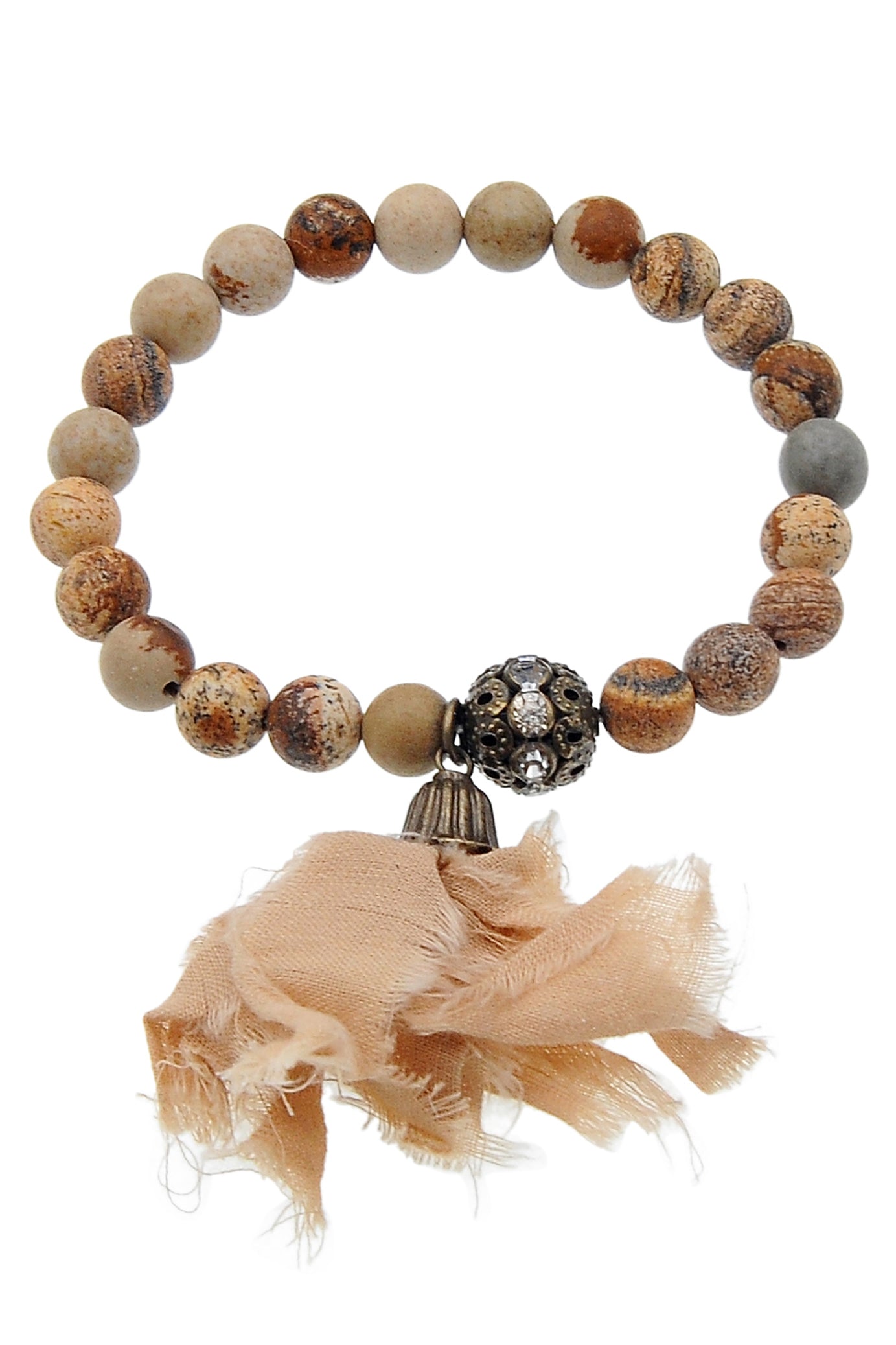 Pulsera de cuero con diamantes de imitación y piedra natural hecha a mano B4226