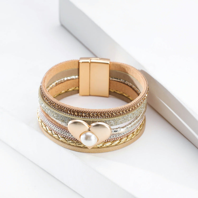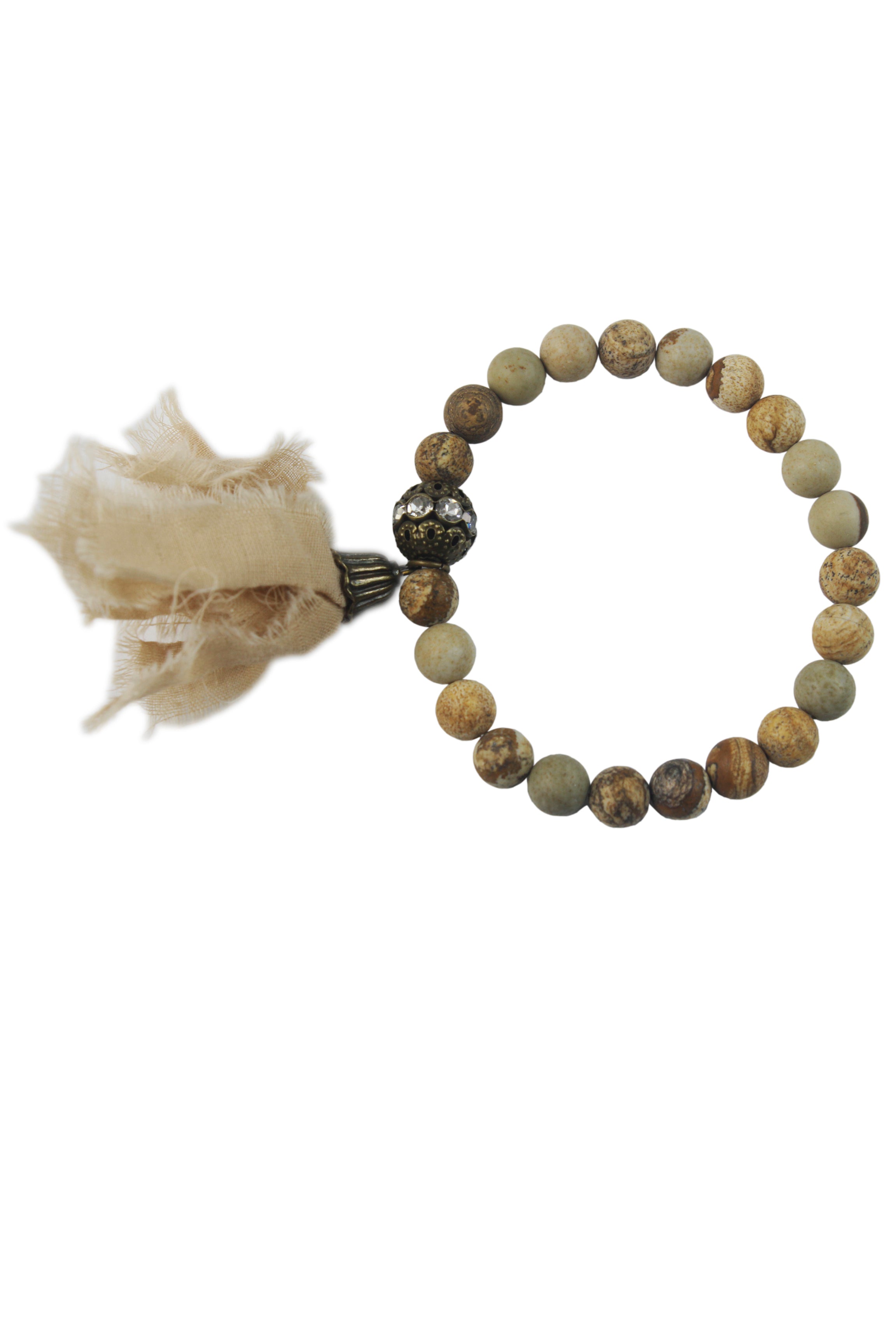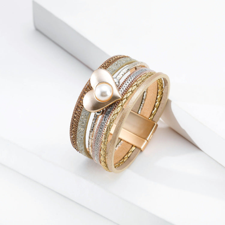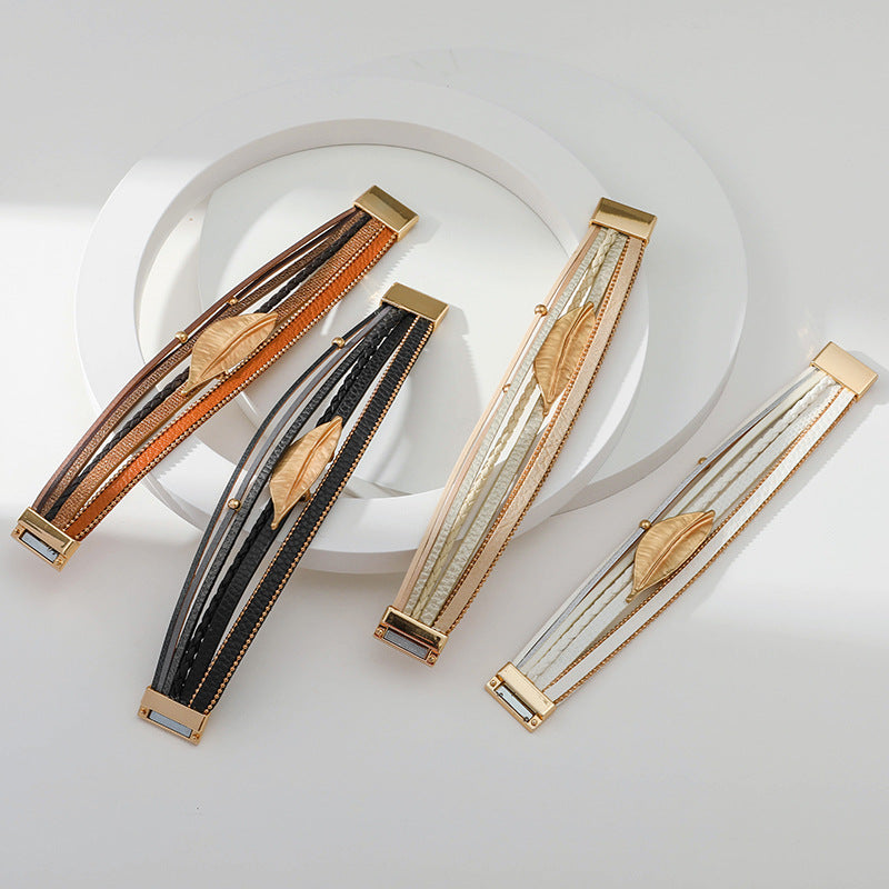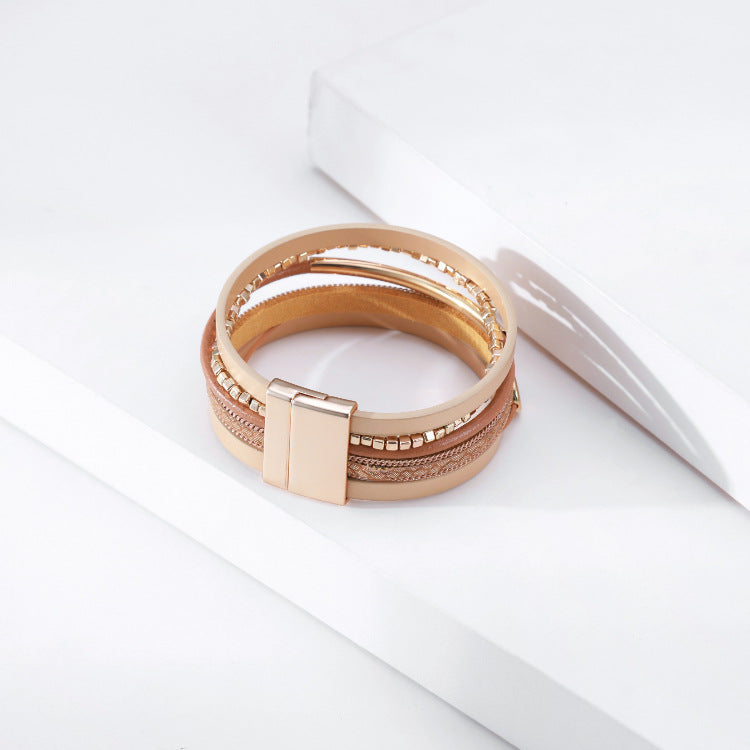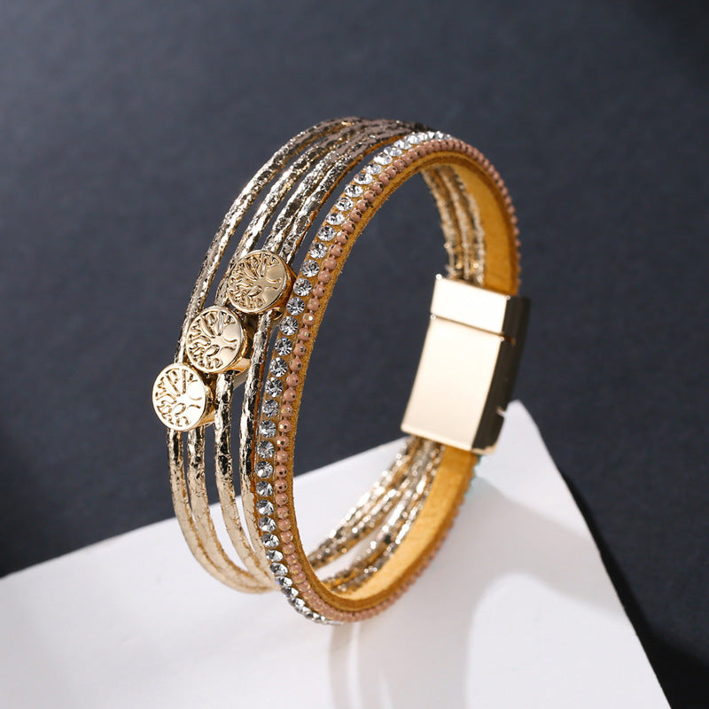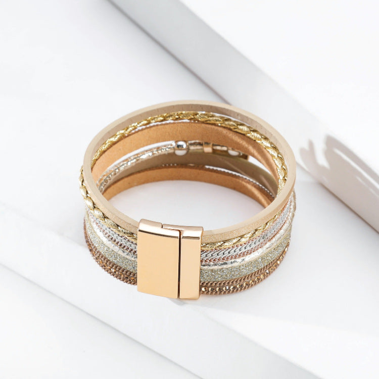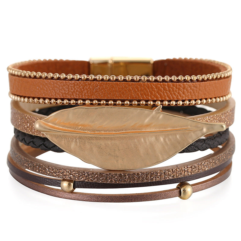 Pulsera de cuero con diamantes de imitación y piedra natural hecha a mano B4226