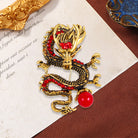 Broche de aleación con forma de dragón, estilo chino elegante y exquisito, estilo vintage, con incrustaciones brillantes y diseño de animal