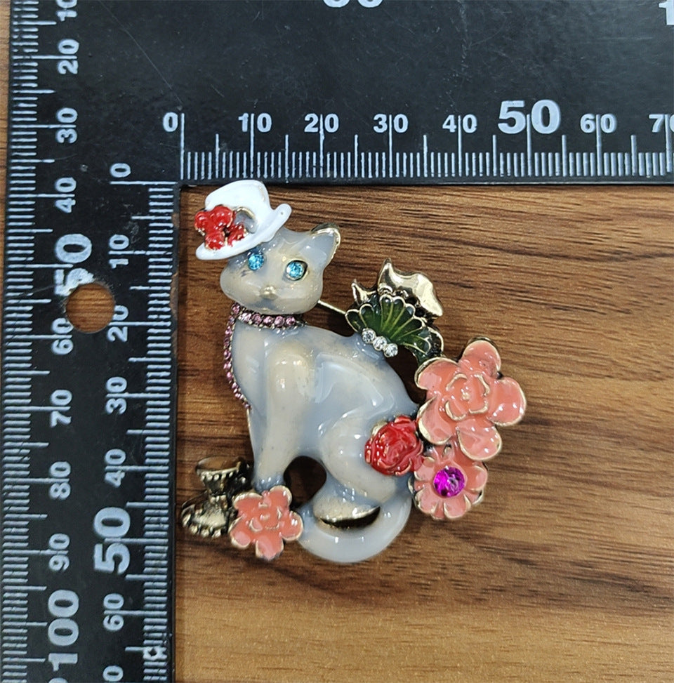 3. Flower Cat Enamel Brooch PA5236