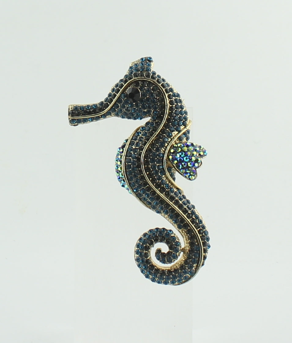 This lovely brooch features a seahorse design ,decorated with strands of colorful faceted inlaid crystals.