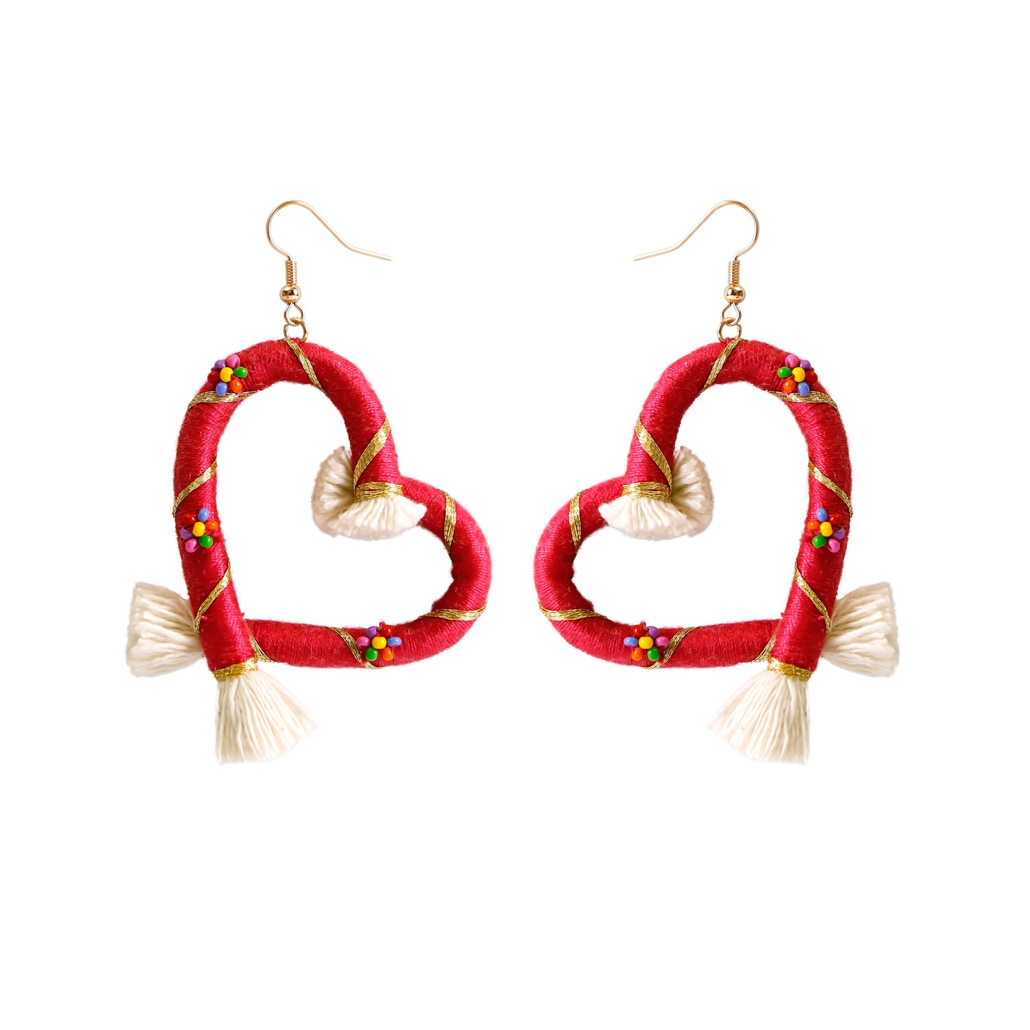 Pendientes de borlas trenzadas con forma de corazón E5783