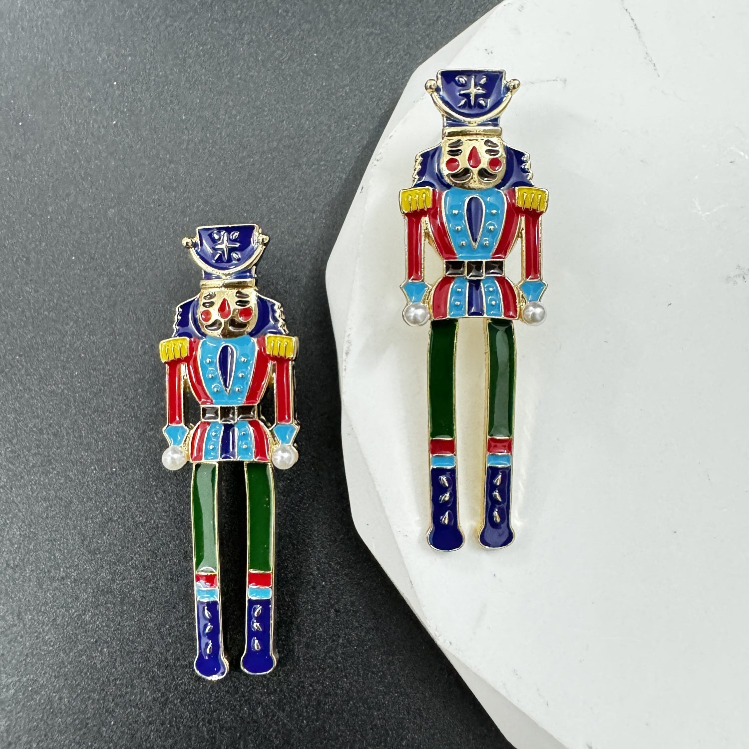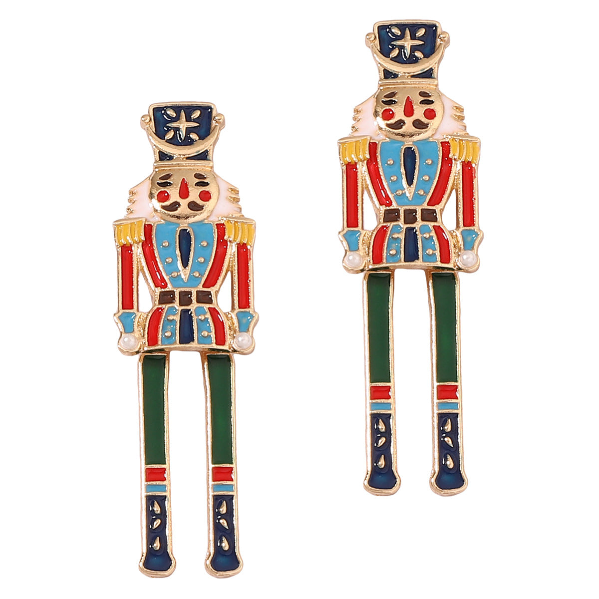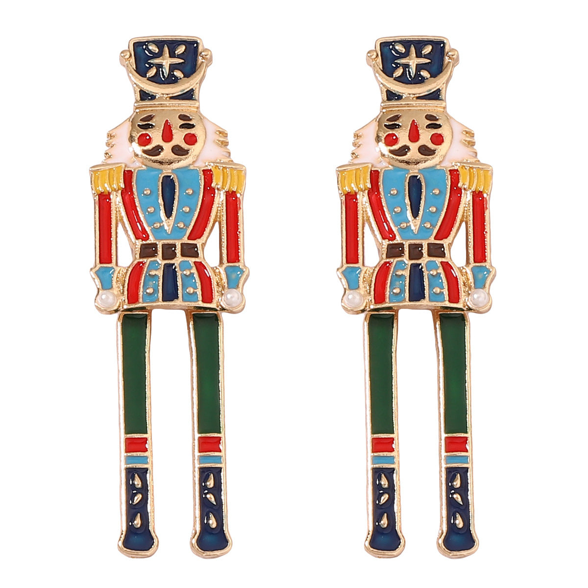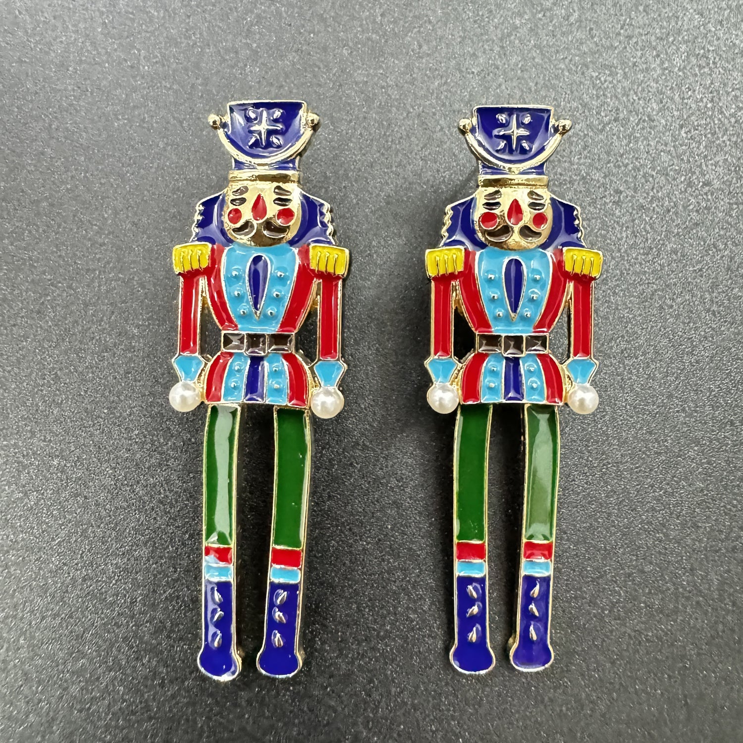 Pendientes de tuerca con forma de soldado y cascanueces navideños con personalidad, joyería de aleación, pendientes creativos para mujer para fiesta navideña
