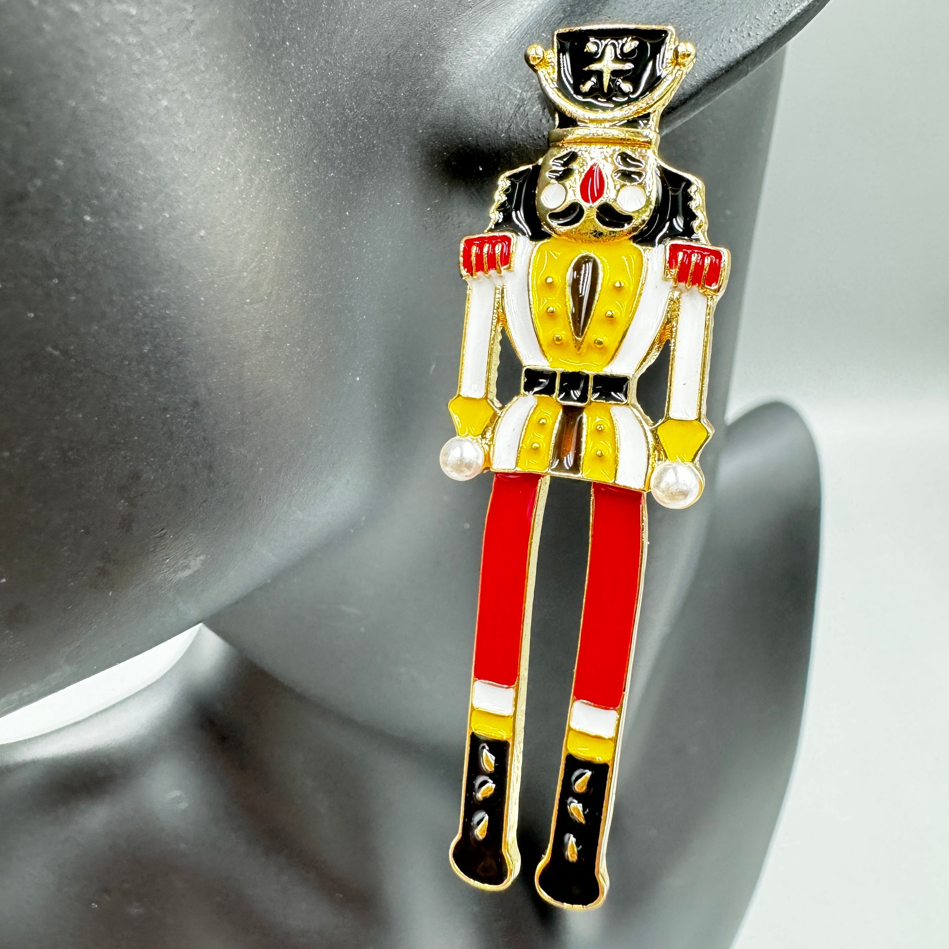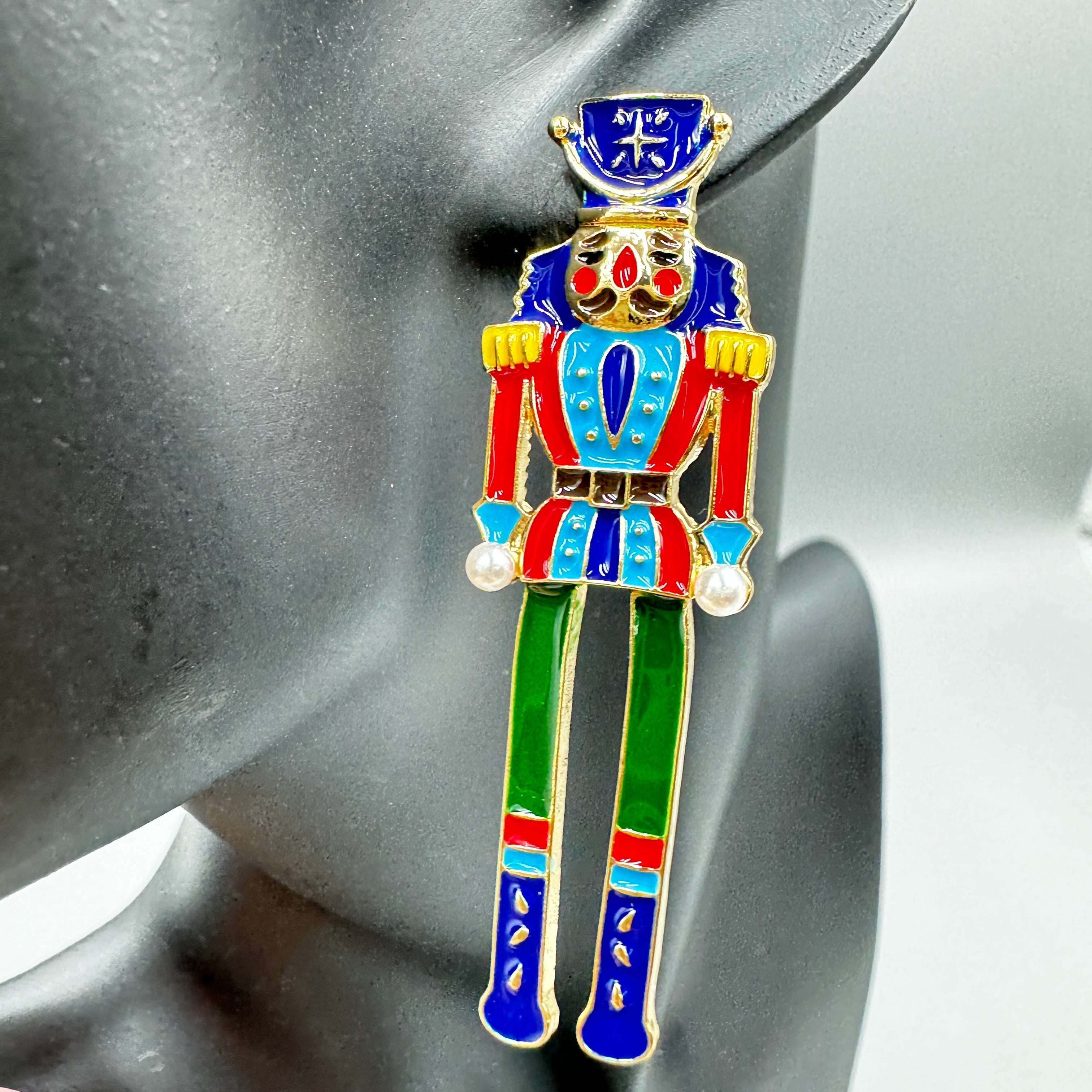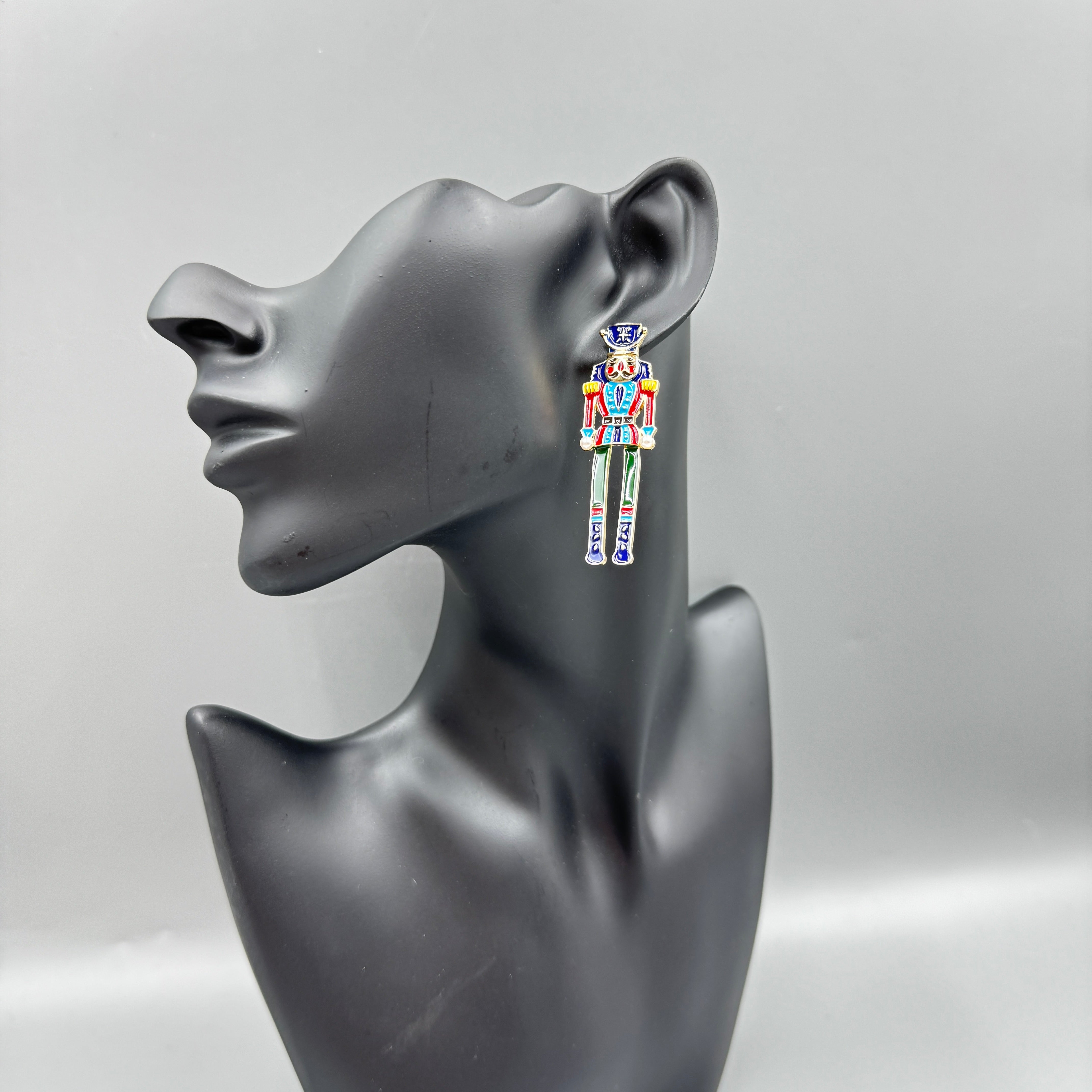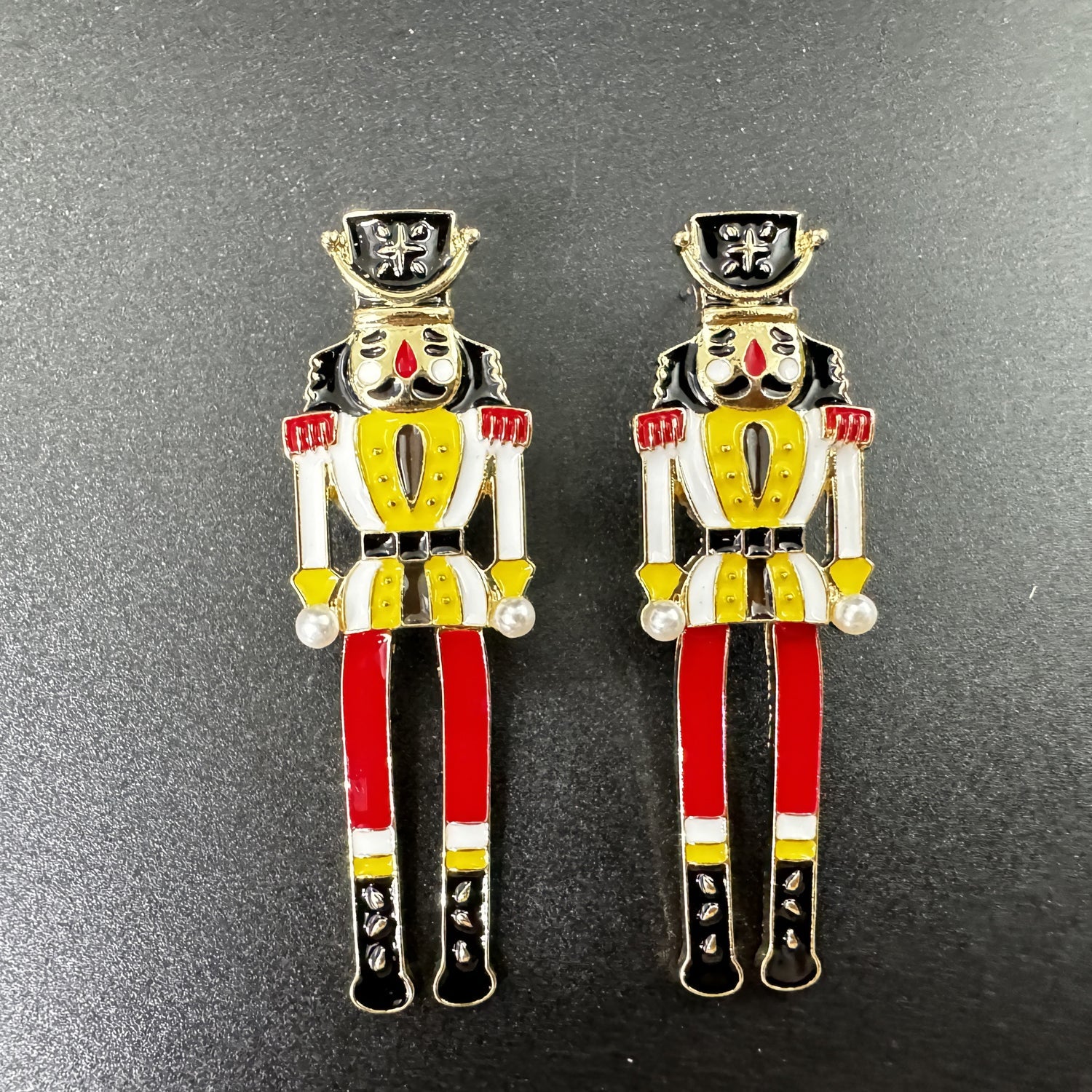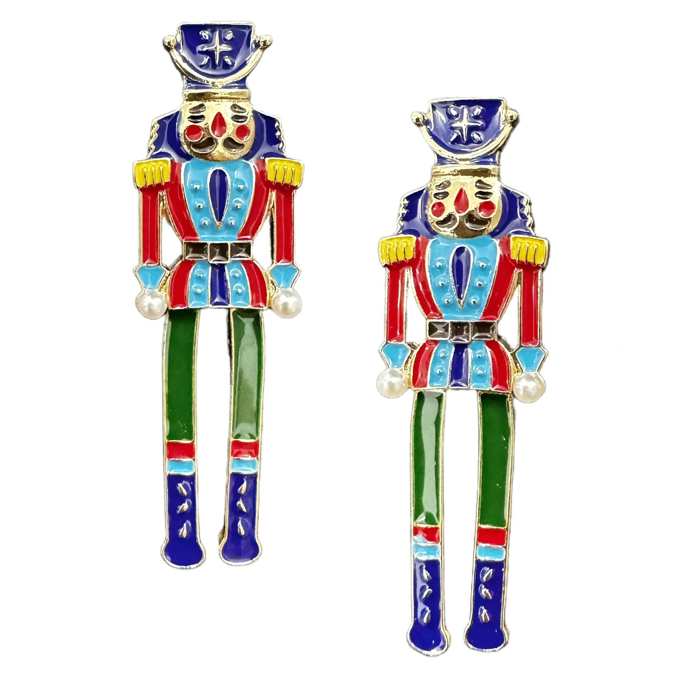Pendientes de tuerca con forma de soldado y cascanueces navideños con personalidad, joyería de aleación, pendientes creativos para mujer para fiesta navideña
