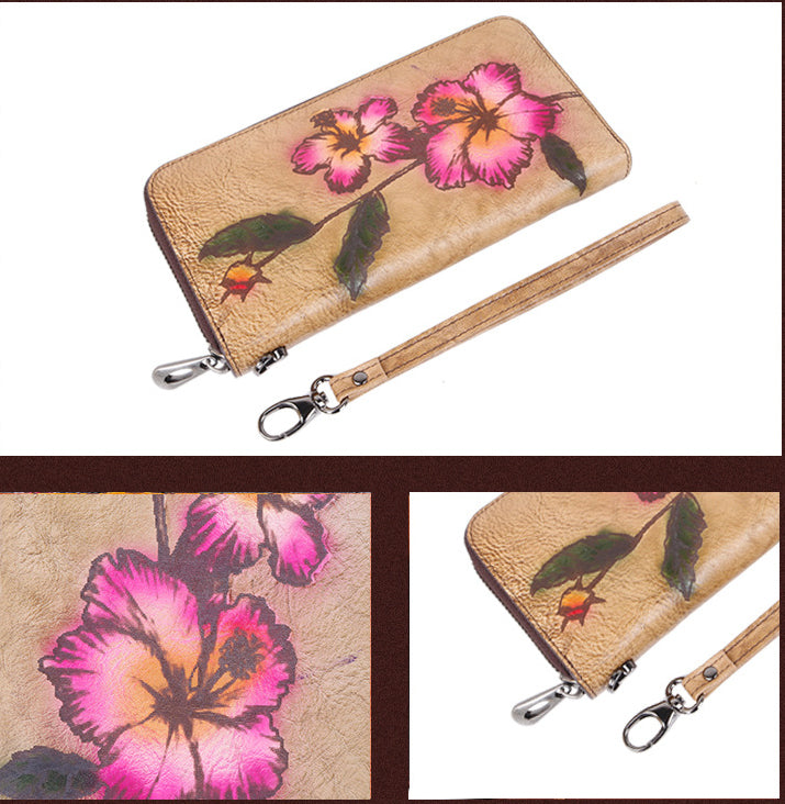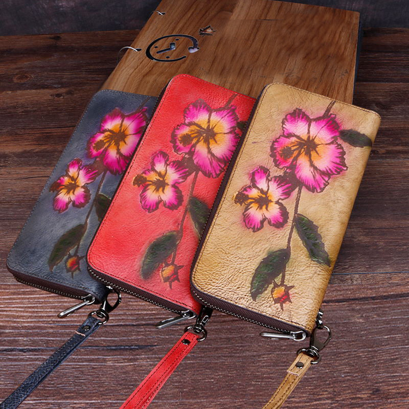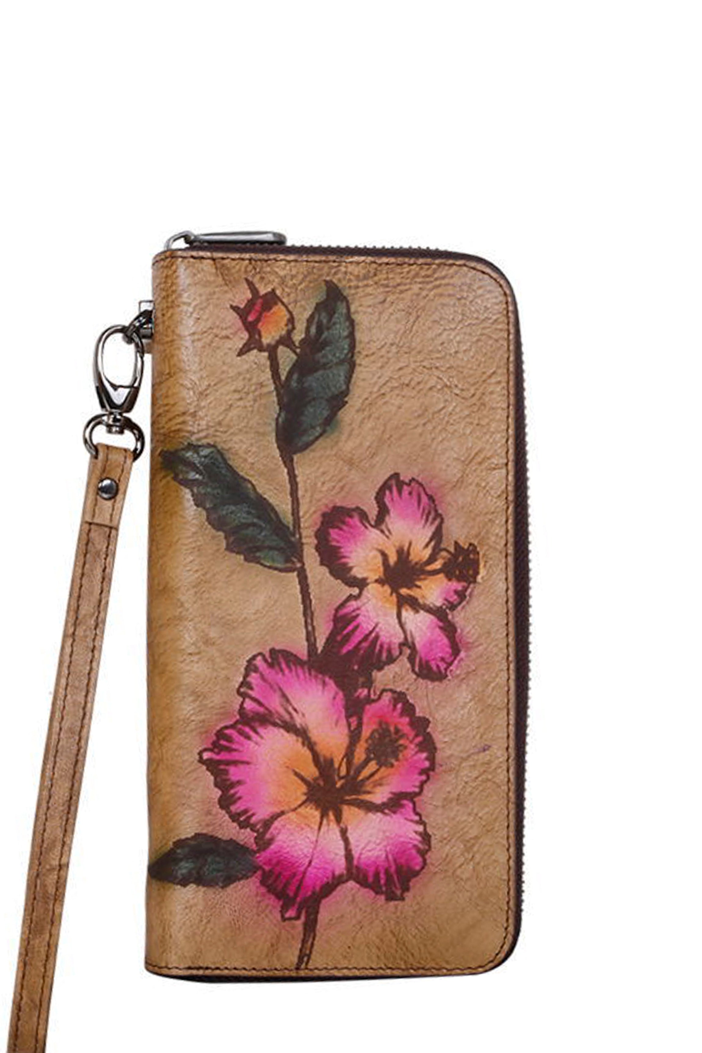 Pulseras de piel auténtica con estampado floral de hibisco HB1119