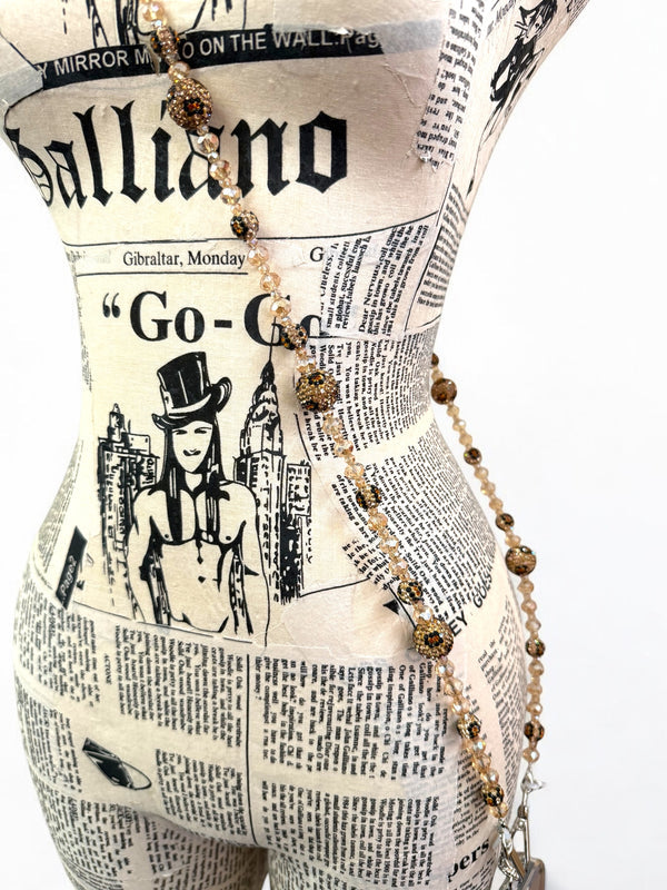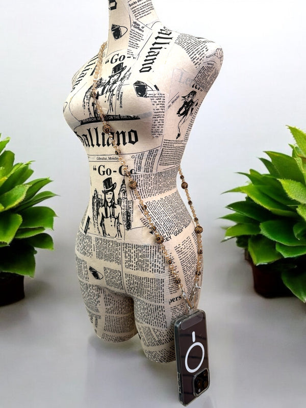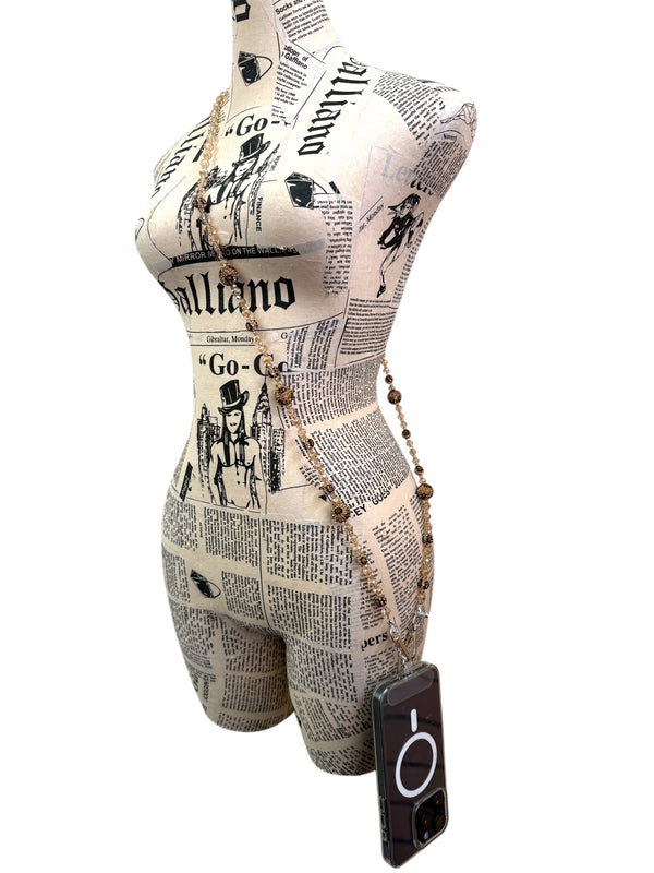 3. Leopard Bead Rhinestone Crystal Crossbody Lanyard PC5621-Brown