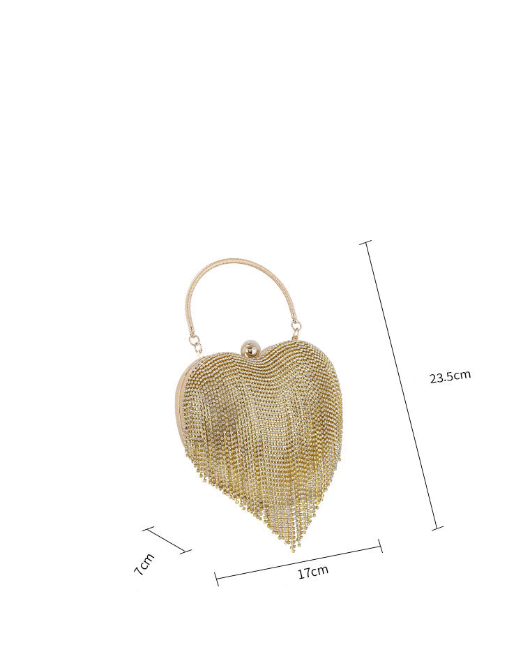 Bolso de noche con borlas y diamantes de imitación en forma de corazón HB2303