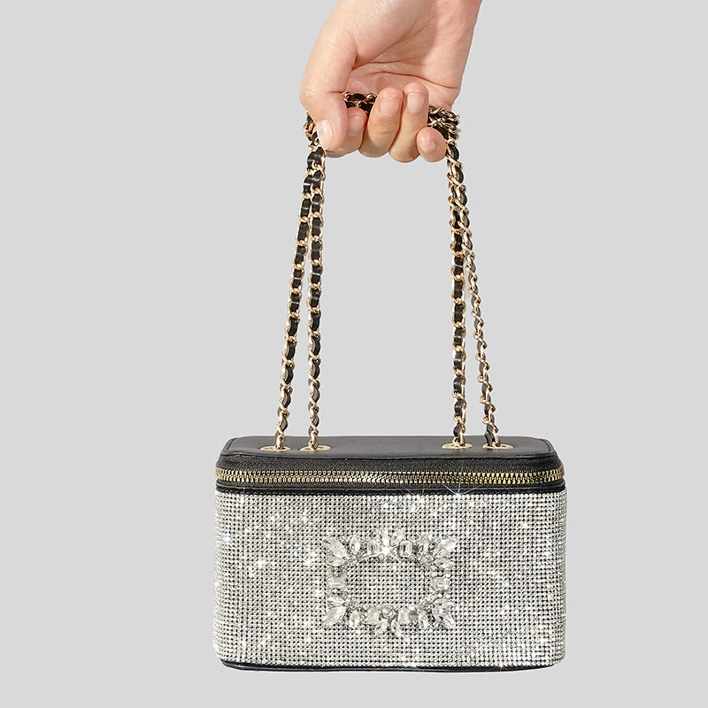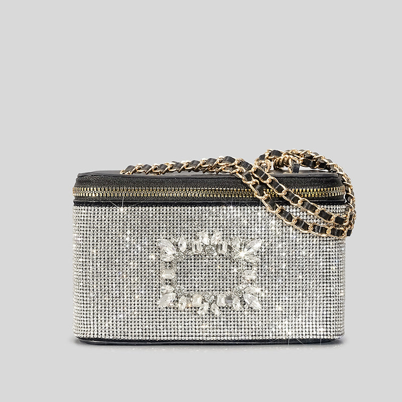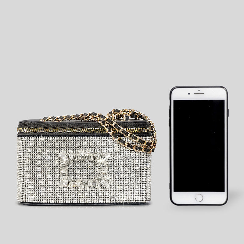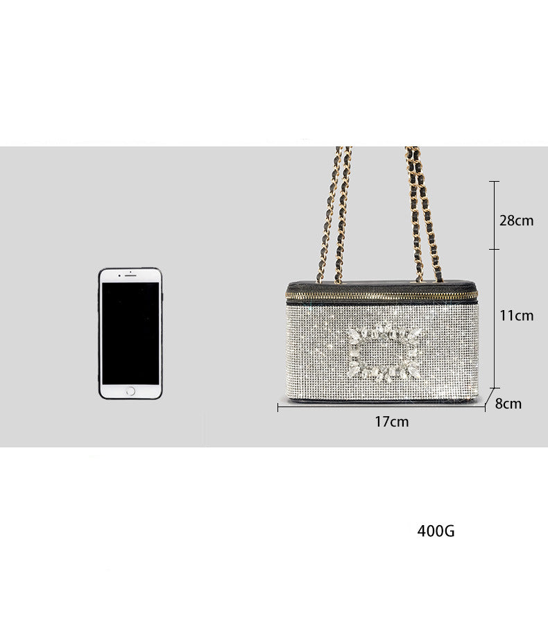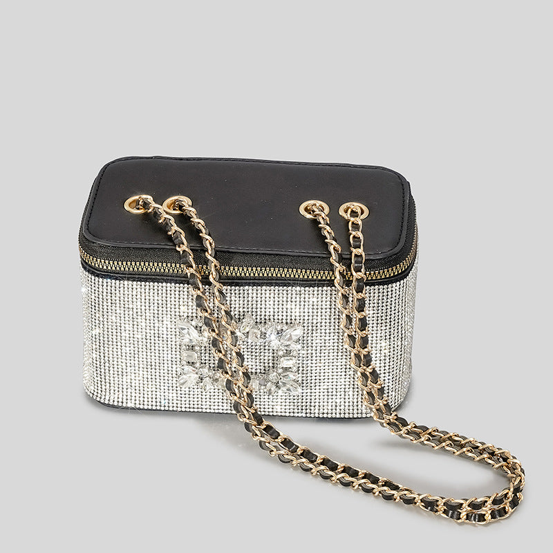 Bolsa tipo caja de PU con diamantes de imitación HB2542