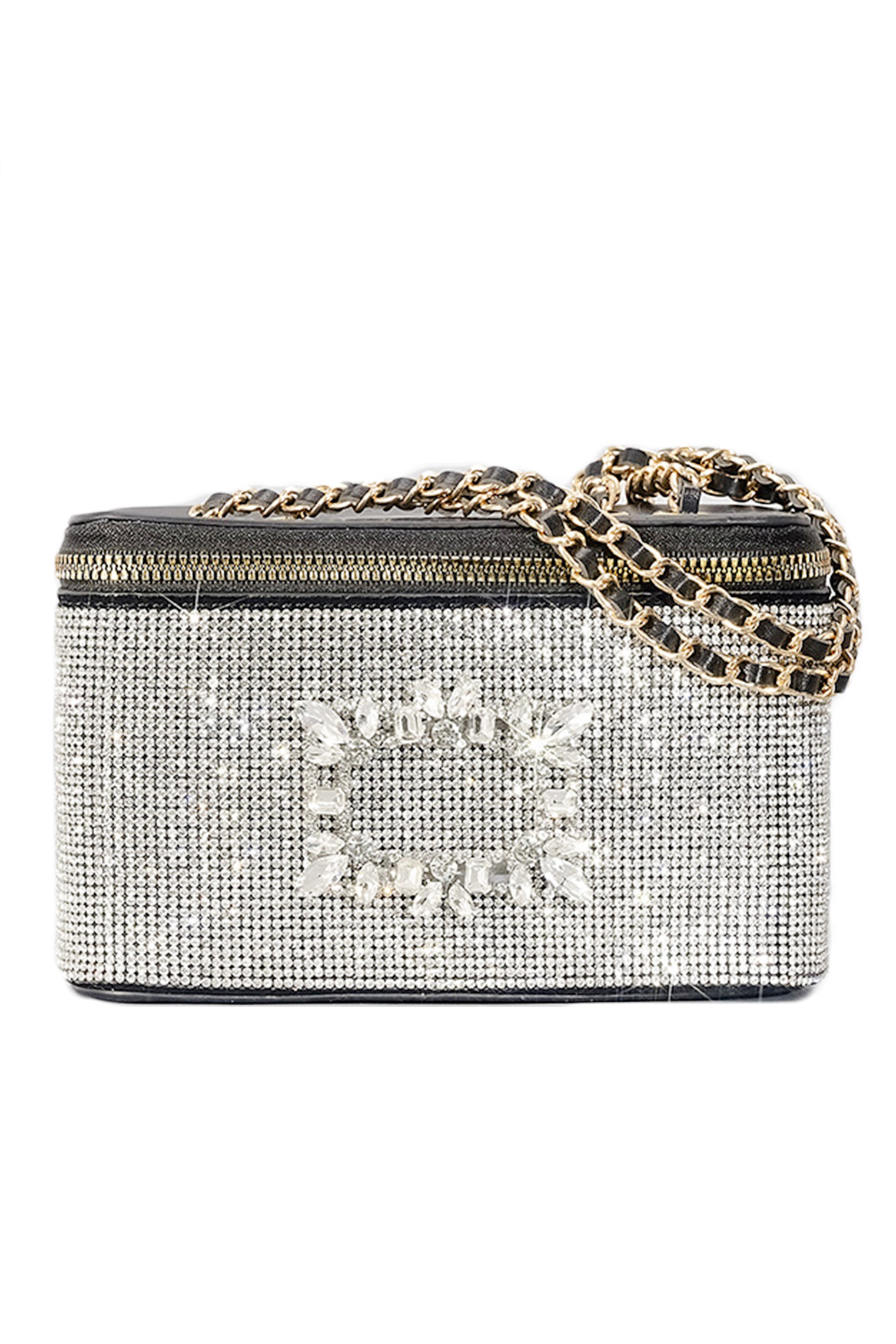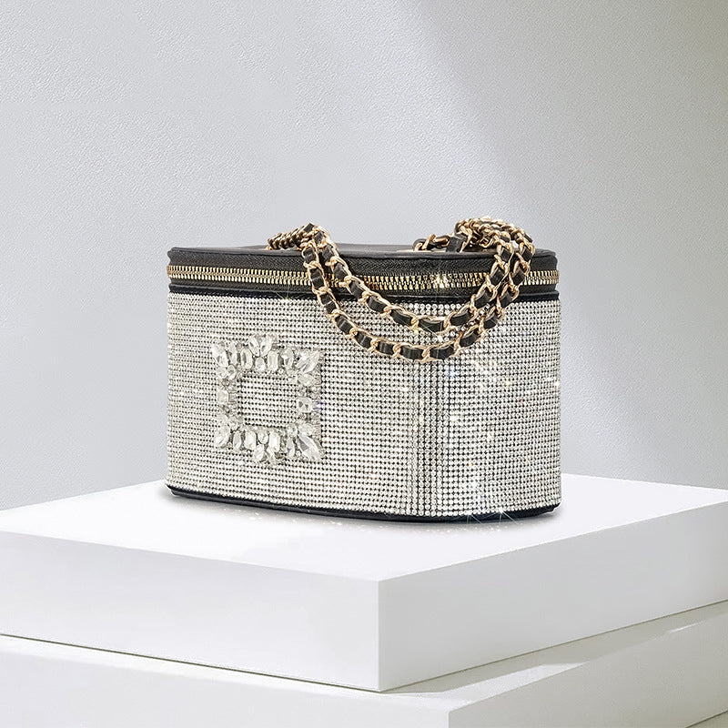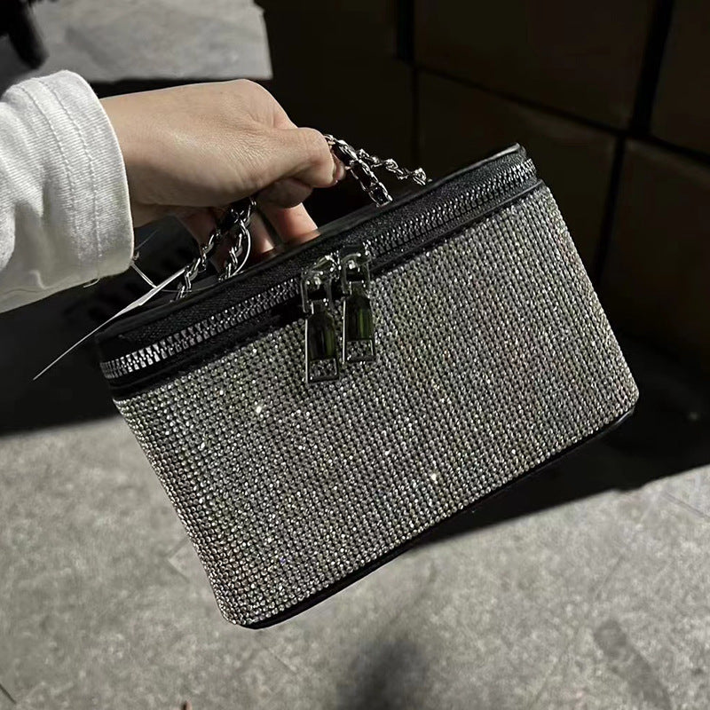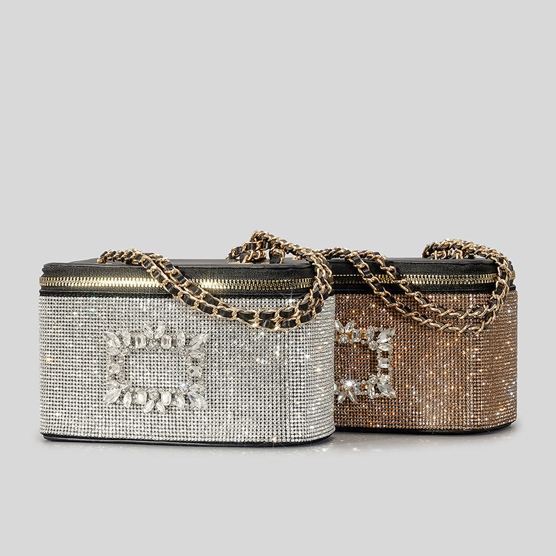 Bolsa tipo caja de PU con diamantes de imitación HB2542