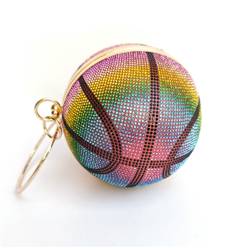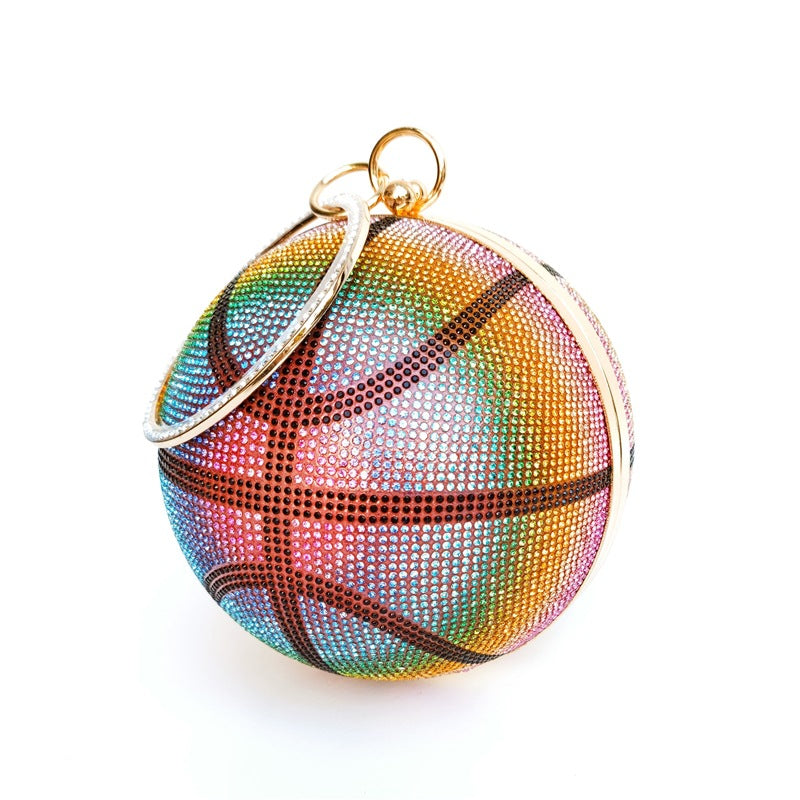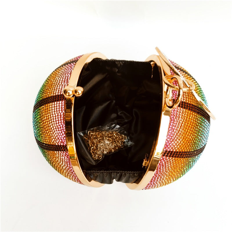 Bolso de noche con diamantes de imitación y diseño de baloncesto HB1746