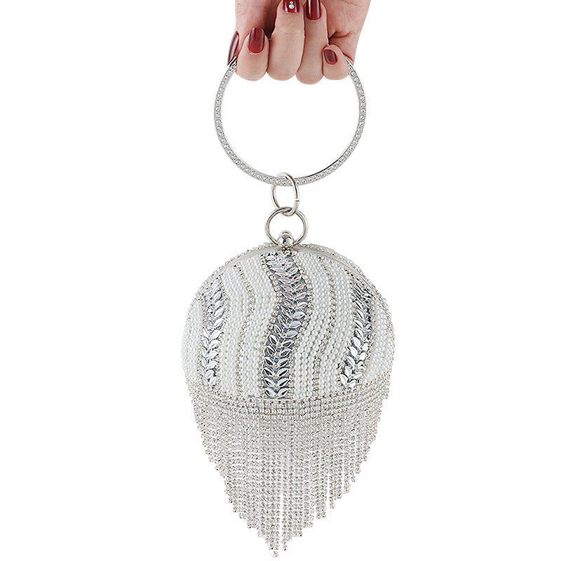 Bolso de noche con borlas y bolas de perlas y diamantes de imitación HB2208