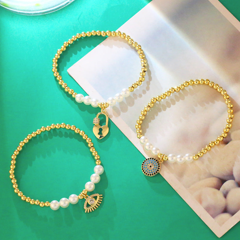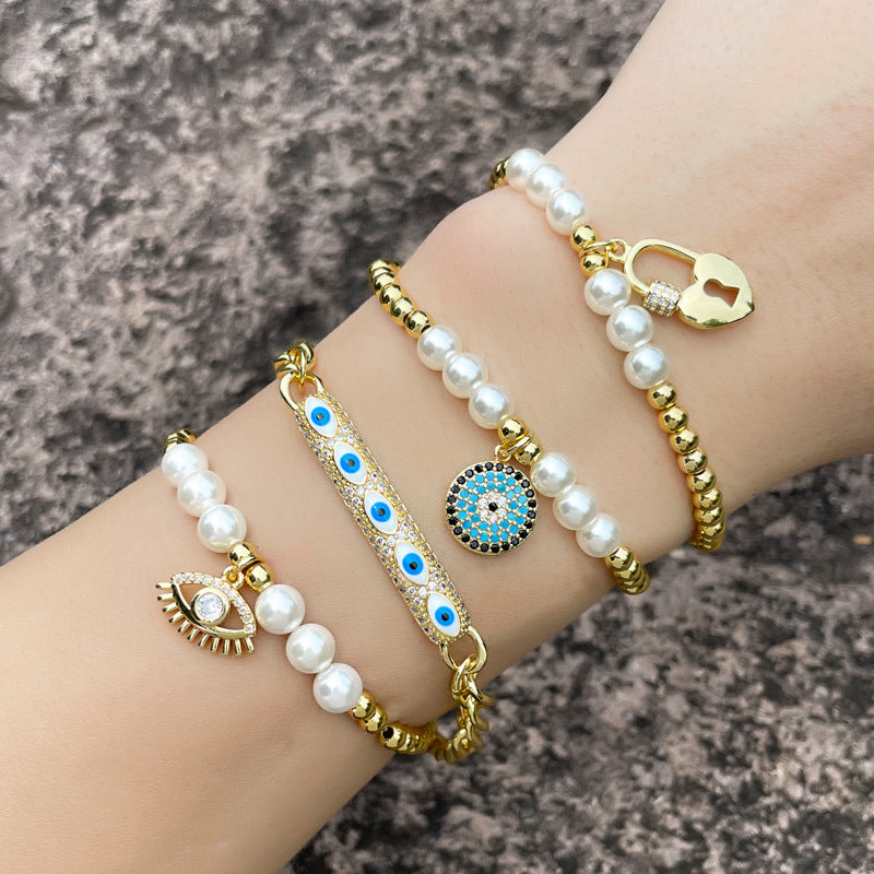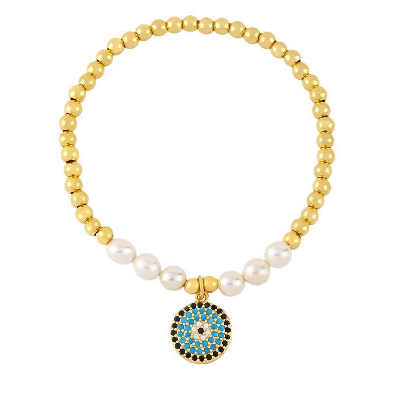Pulsera de cuentas de circonita con forma de ojo malvado B3149