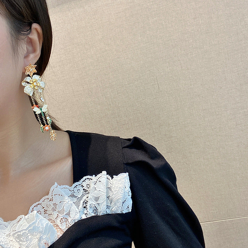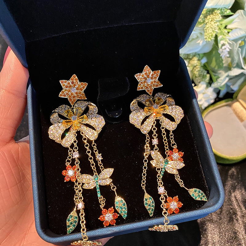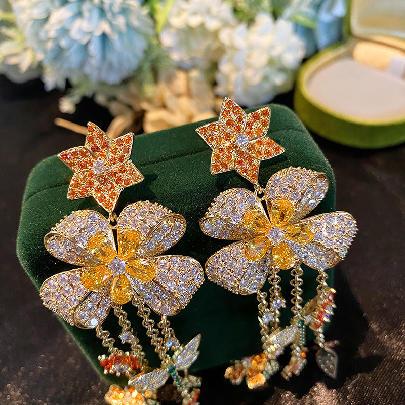 Pendientes de circonita cúbica con borlas florales E7850