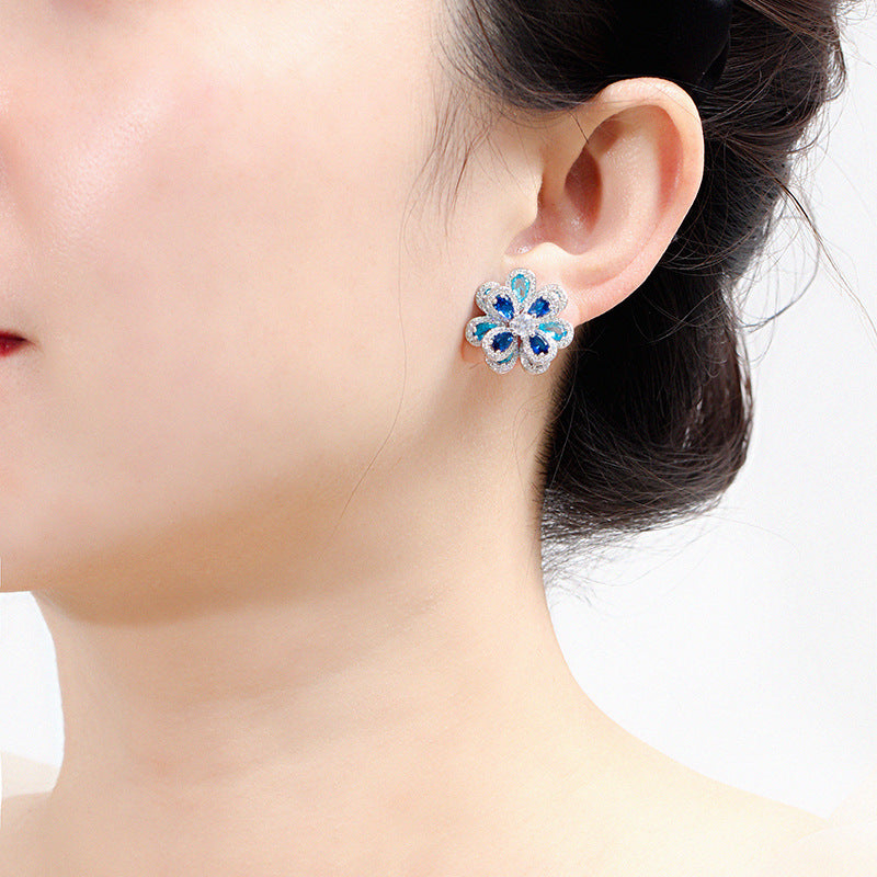 Pendientes de flor con circonitas cúbicas E7363