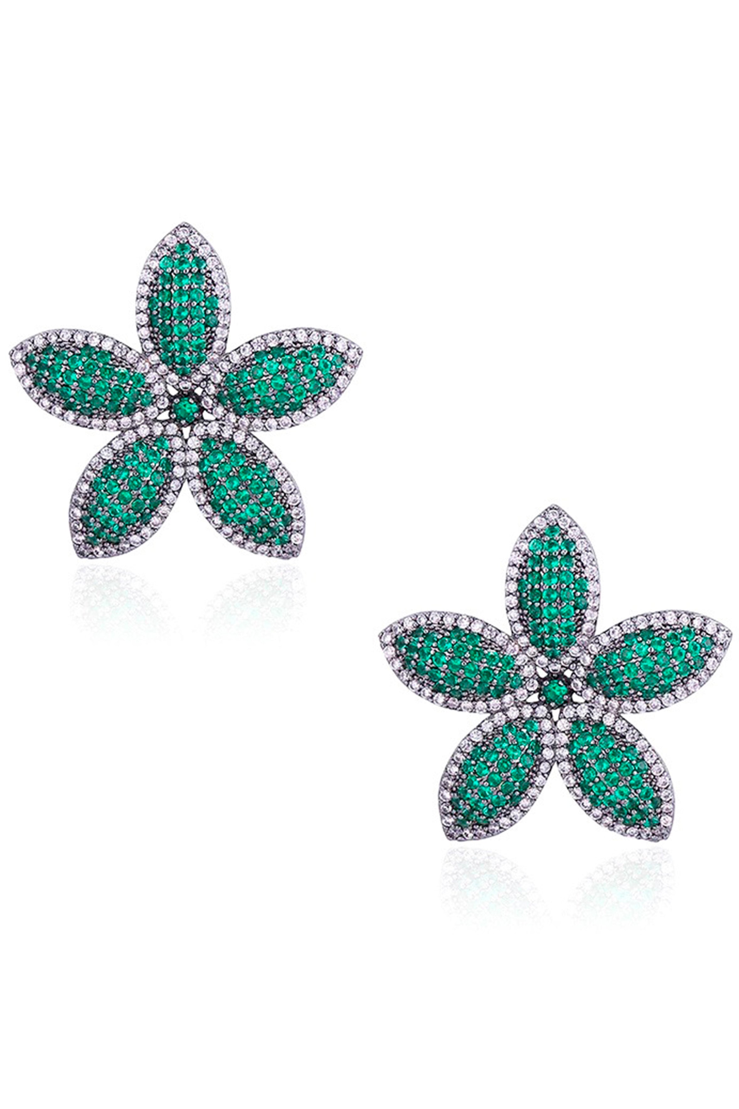Pendientes de botón con circonitas cúbicas en forma de flor E7474