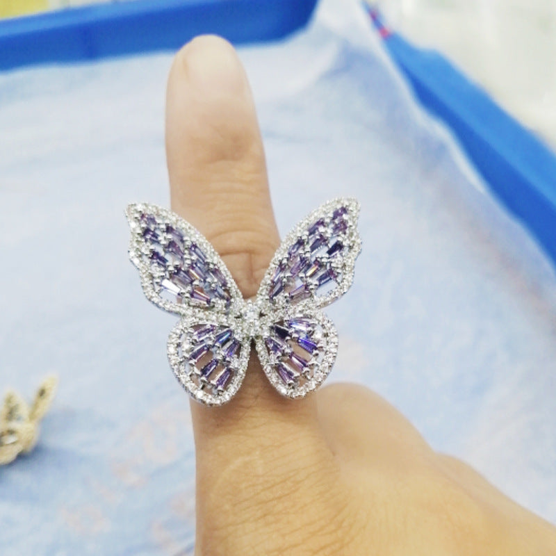 Anillos de circonita cúbica con forma de mariposa R2496