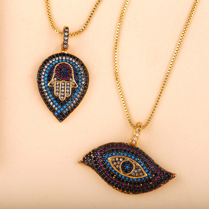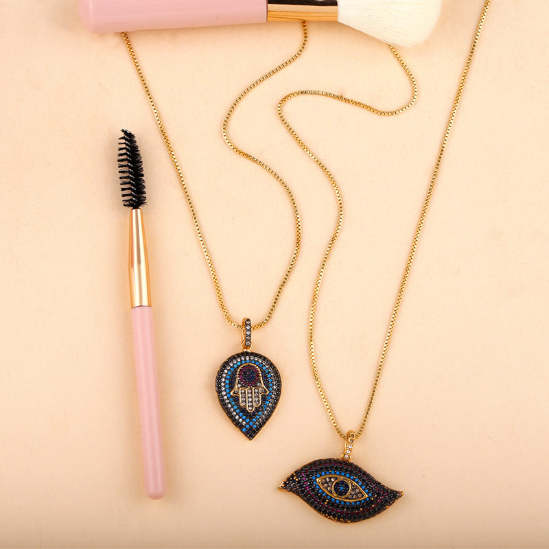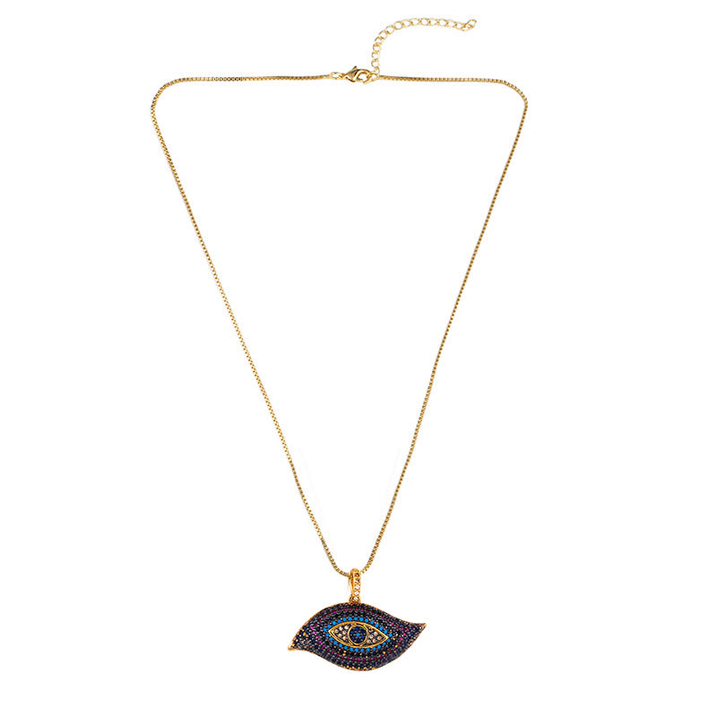 Collar de cadena de cobre con circonitas y ojo malvado N3891