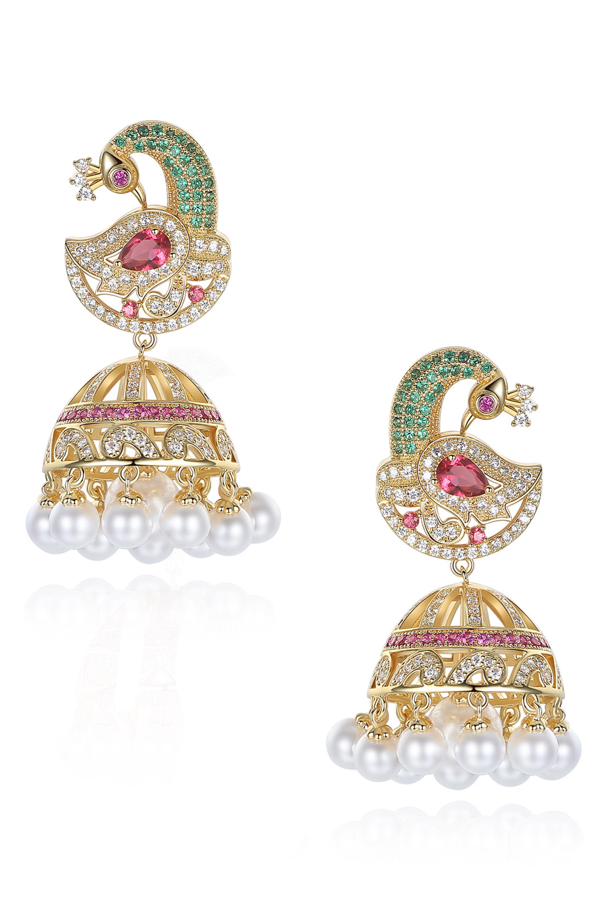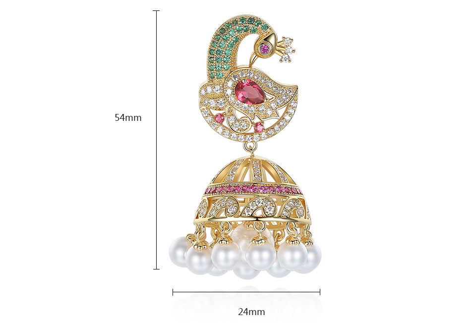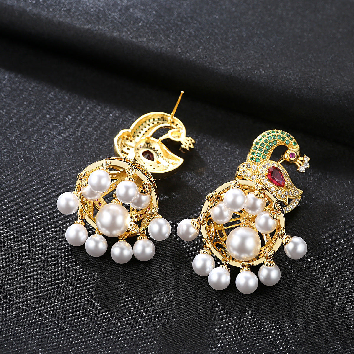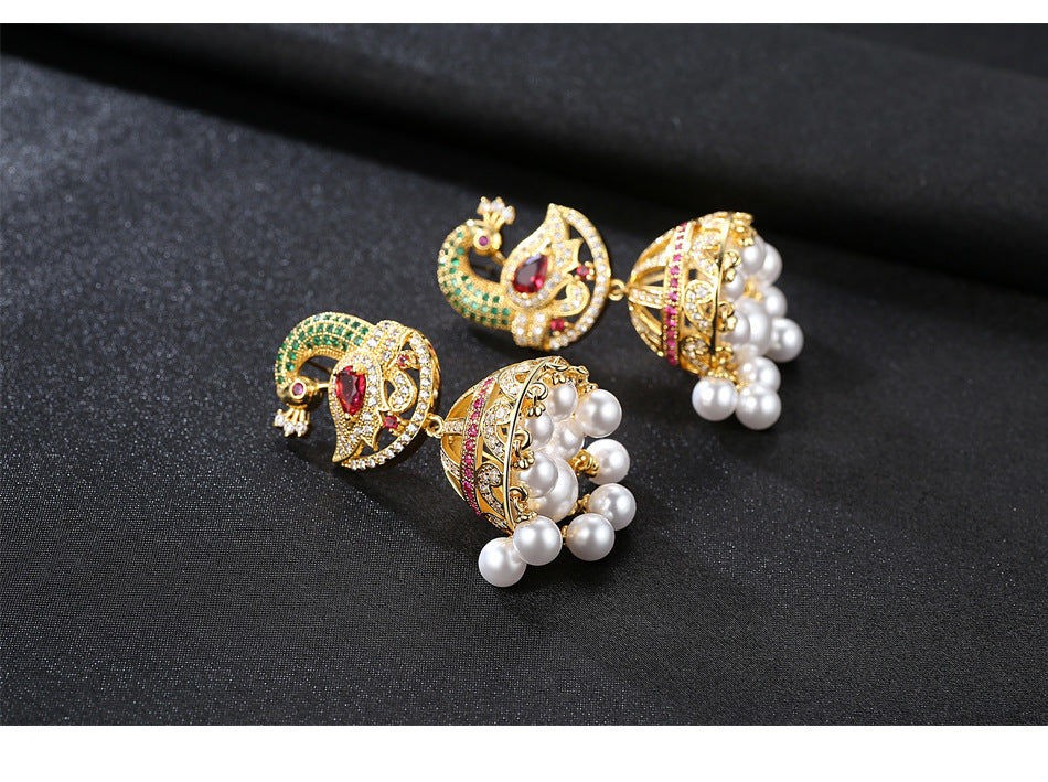 Pendientes de circonita cúbica con forma de pavo real E7805