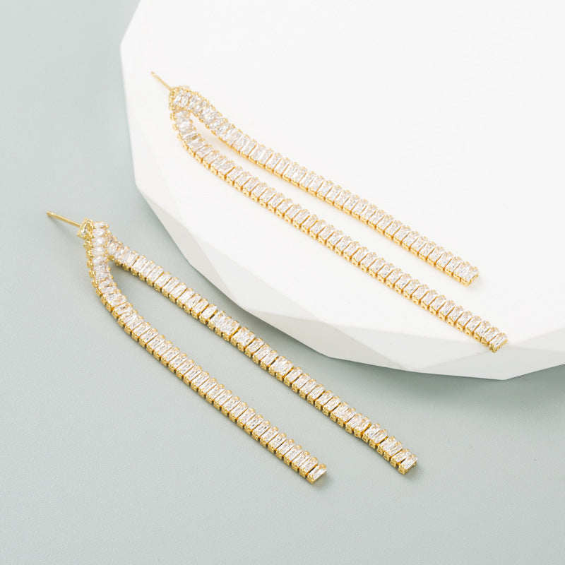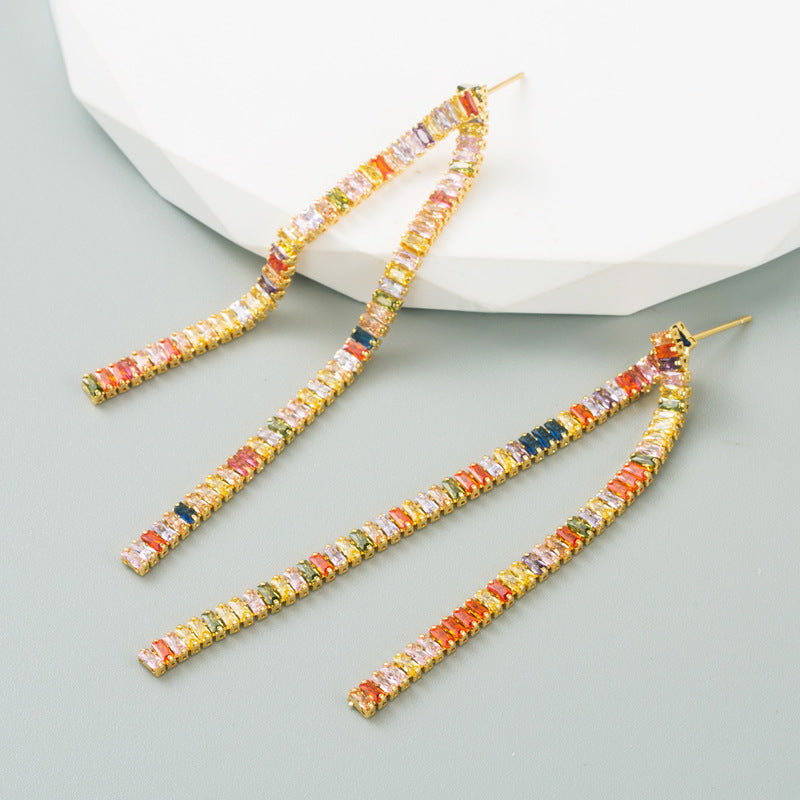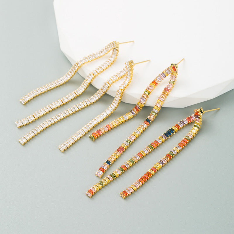 Pendientes de circonitas cúbicas con borlas E6739