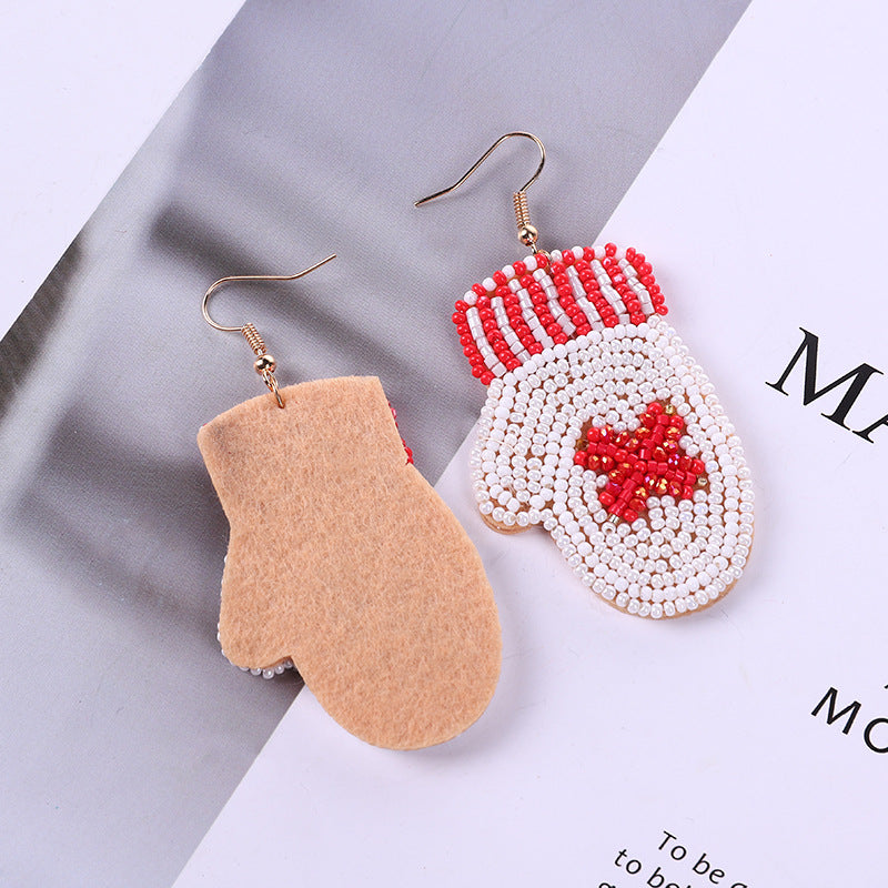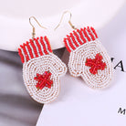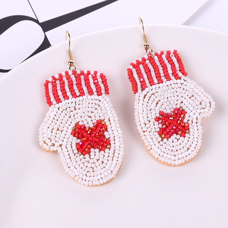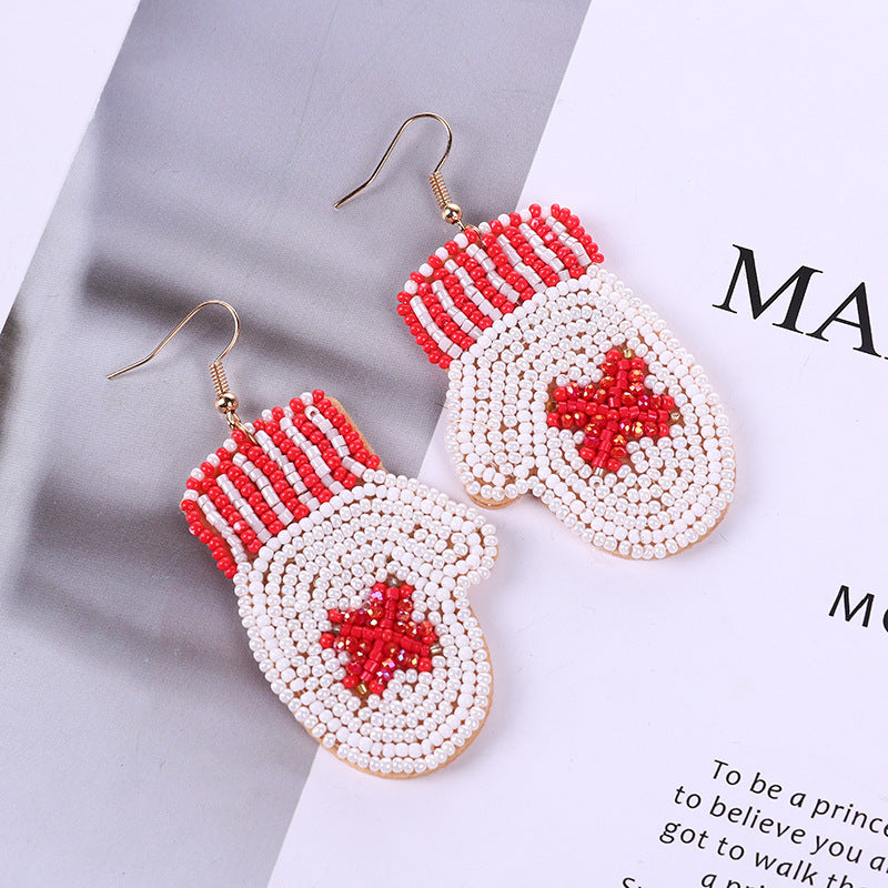 3. Christmas Mitten Seed Bead Drop Earrings E5076