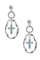 Fashion Blue Crystals Cross Circles Stud Earrings E1597