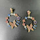 Pendientes de mariposa para mujer/Pendientes de mariposa con diamantes de imitación de cristal brillante, pendientes de flores, pendientes colgantes de mariposa con flores, pendientes hipoalergénicos, regalo de joyería delicada para mujeres y niñas