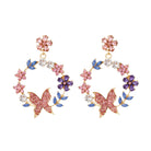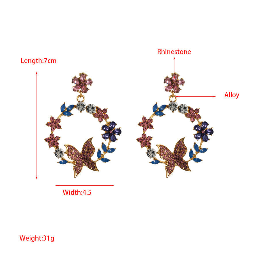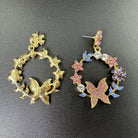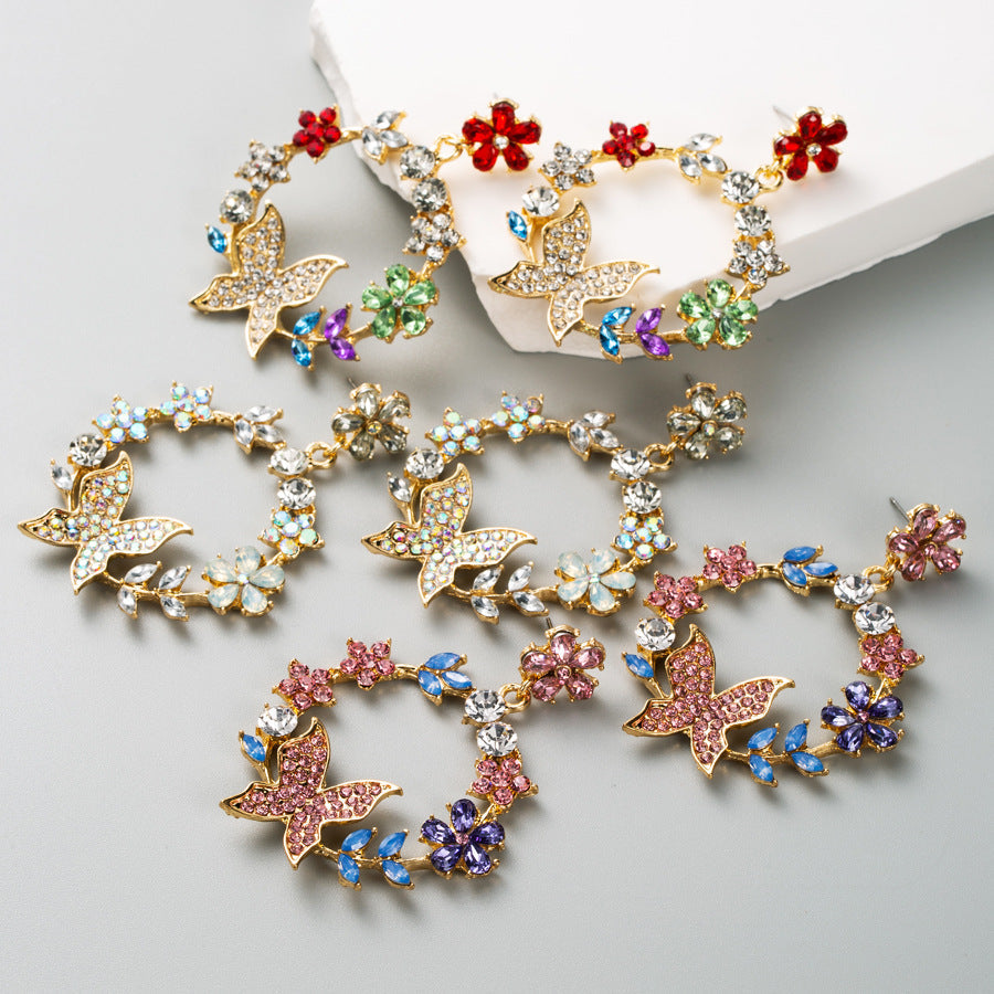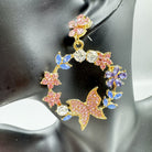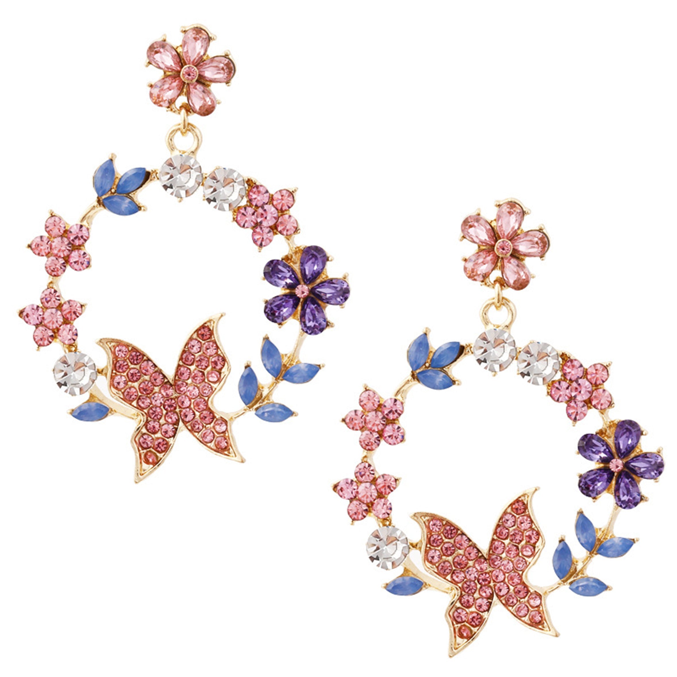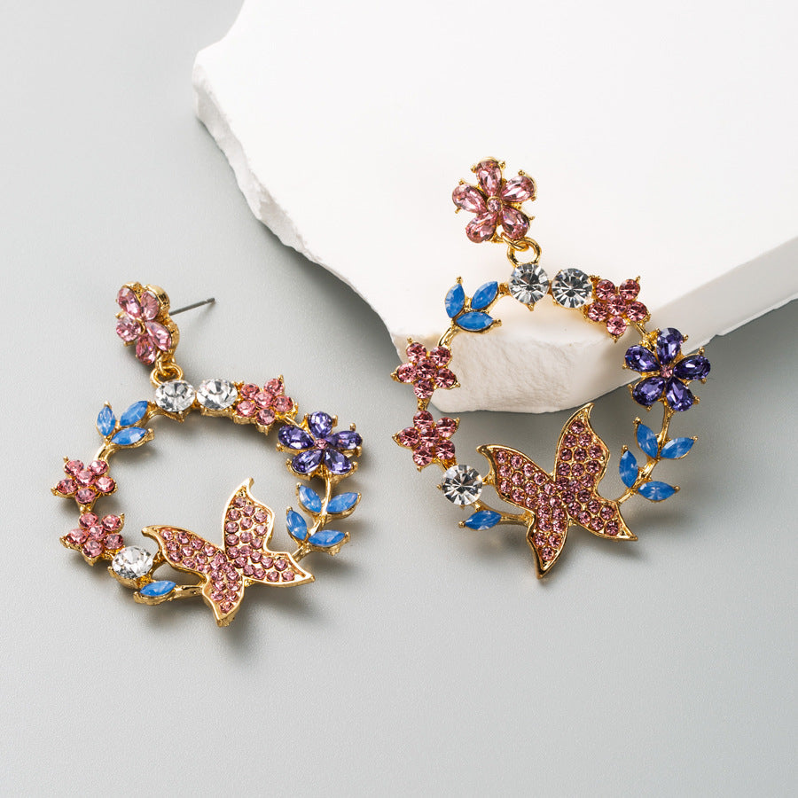 Pendientes de mariposa con flores y diamantes de imitación E8436