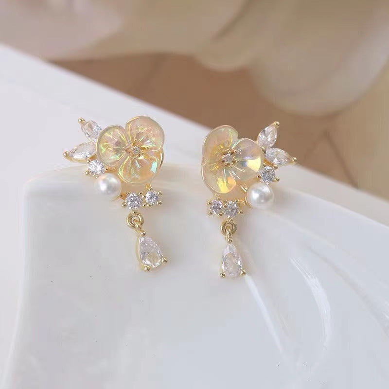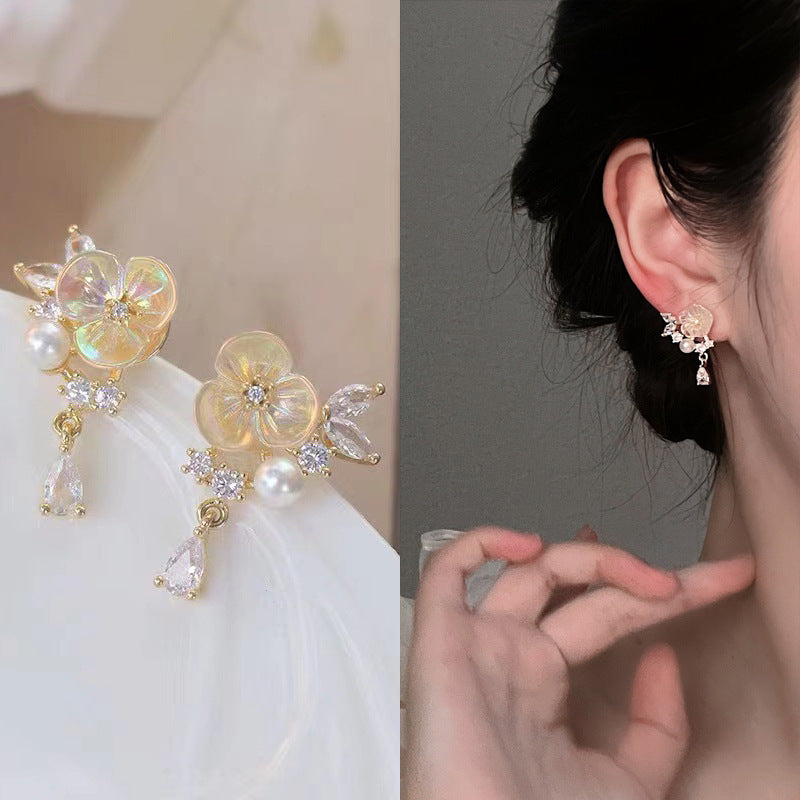 Pendientes de clip con circonitas cúbicas y diseño floral E7794