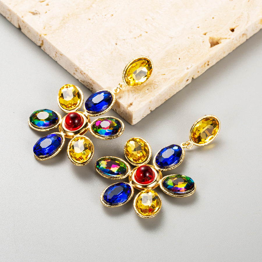 Pendientes de diamantes de imitación con diseño floral E8058