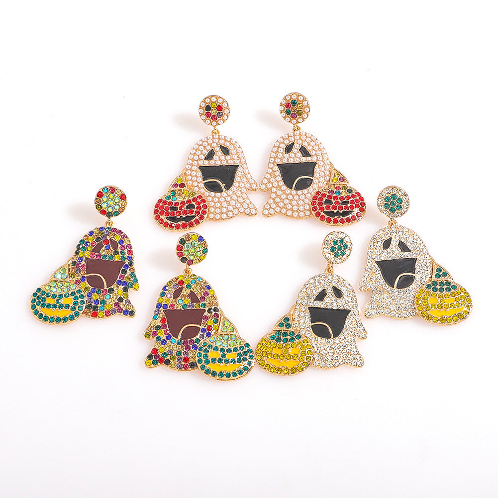 3. Ghost Pumpkin Pearl Rhinestone Earrings E5997