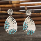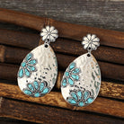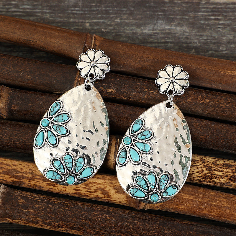 Pendientes de piedra turquesa natural de estilo bohemio para mujer/hermosos y lindos pendientes de flores de turquesa hechos a mano