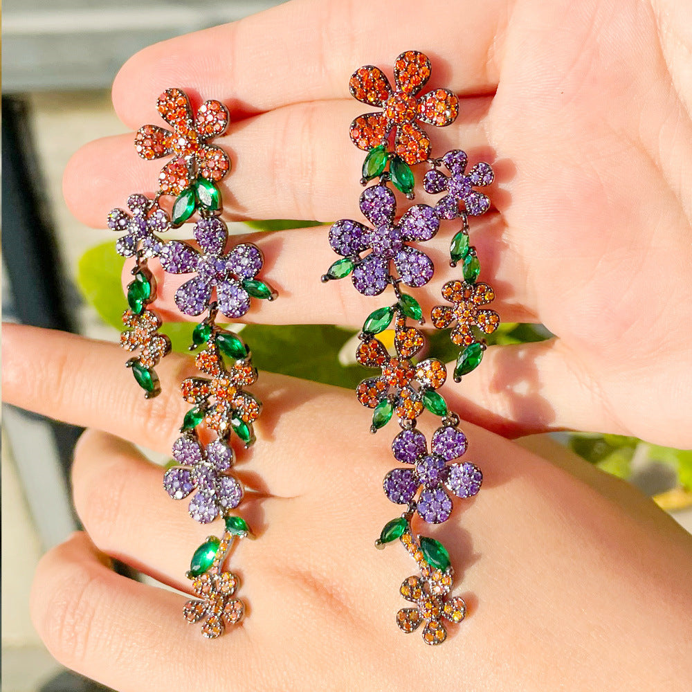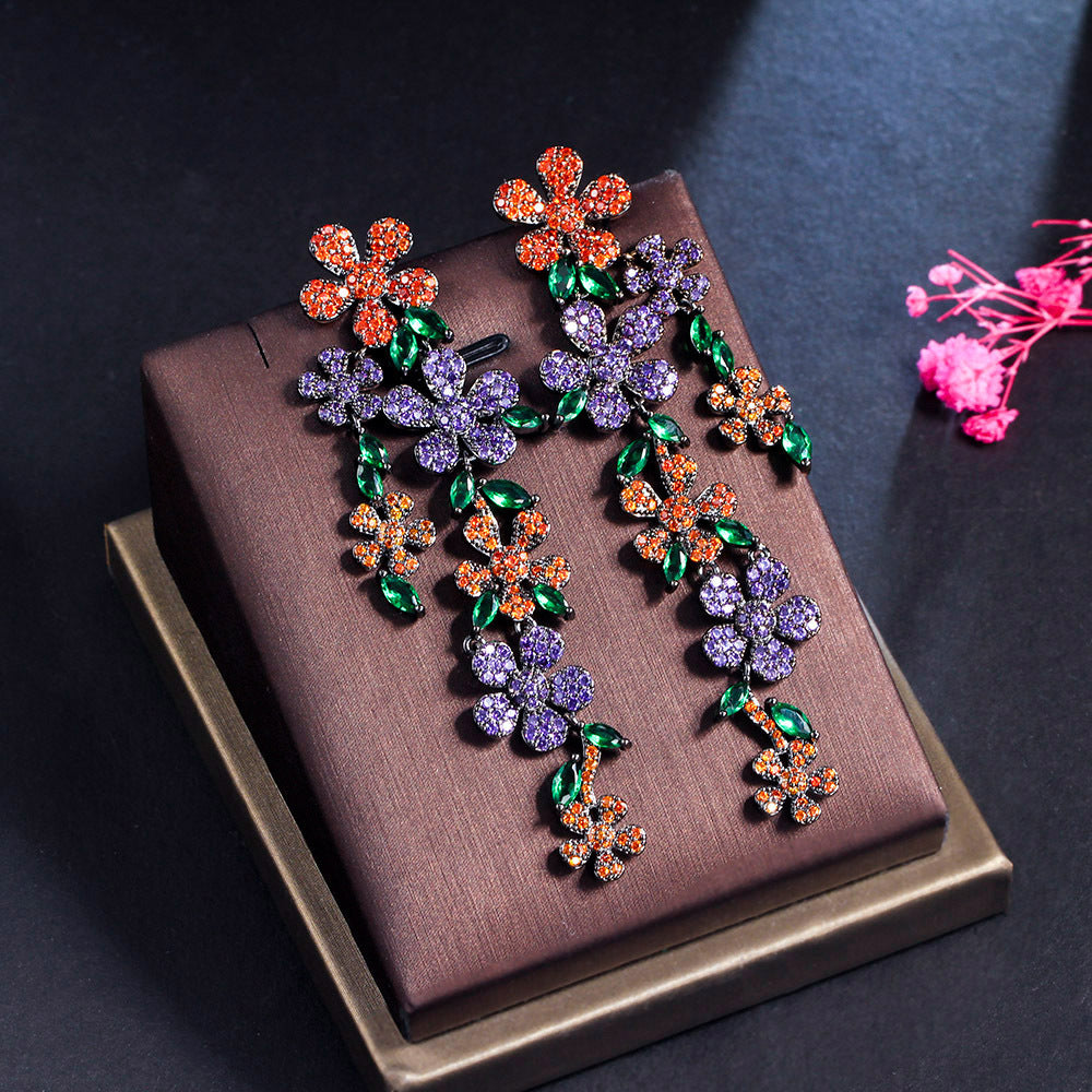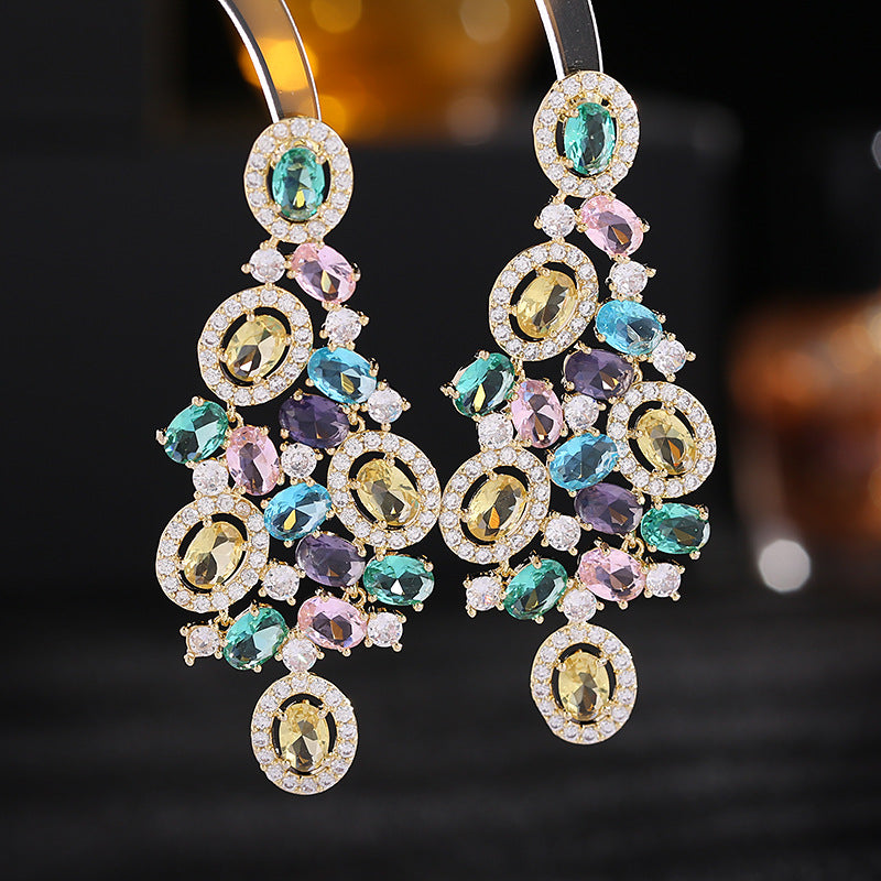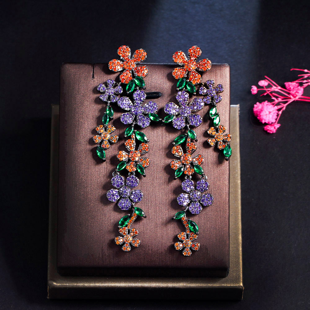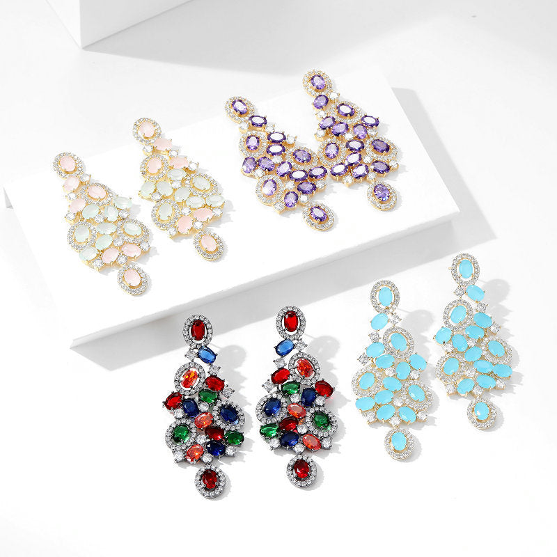 Pendientes de circonita cúbica con borlas geométricas E7679