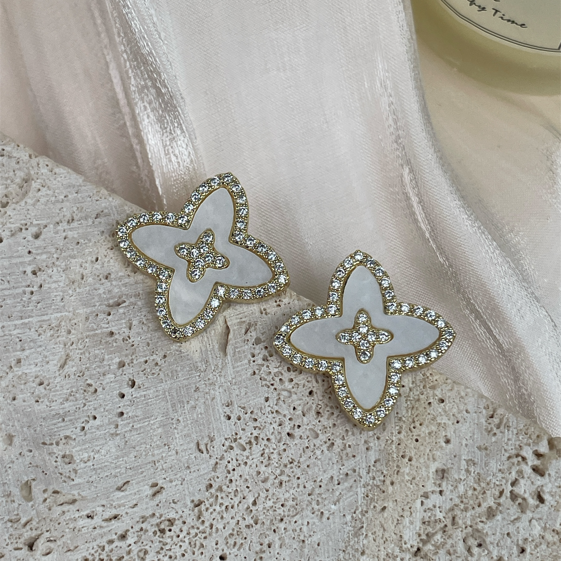 Cubic Zirconia With Glass Pearl Earrings E8718