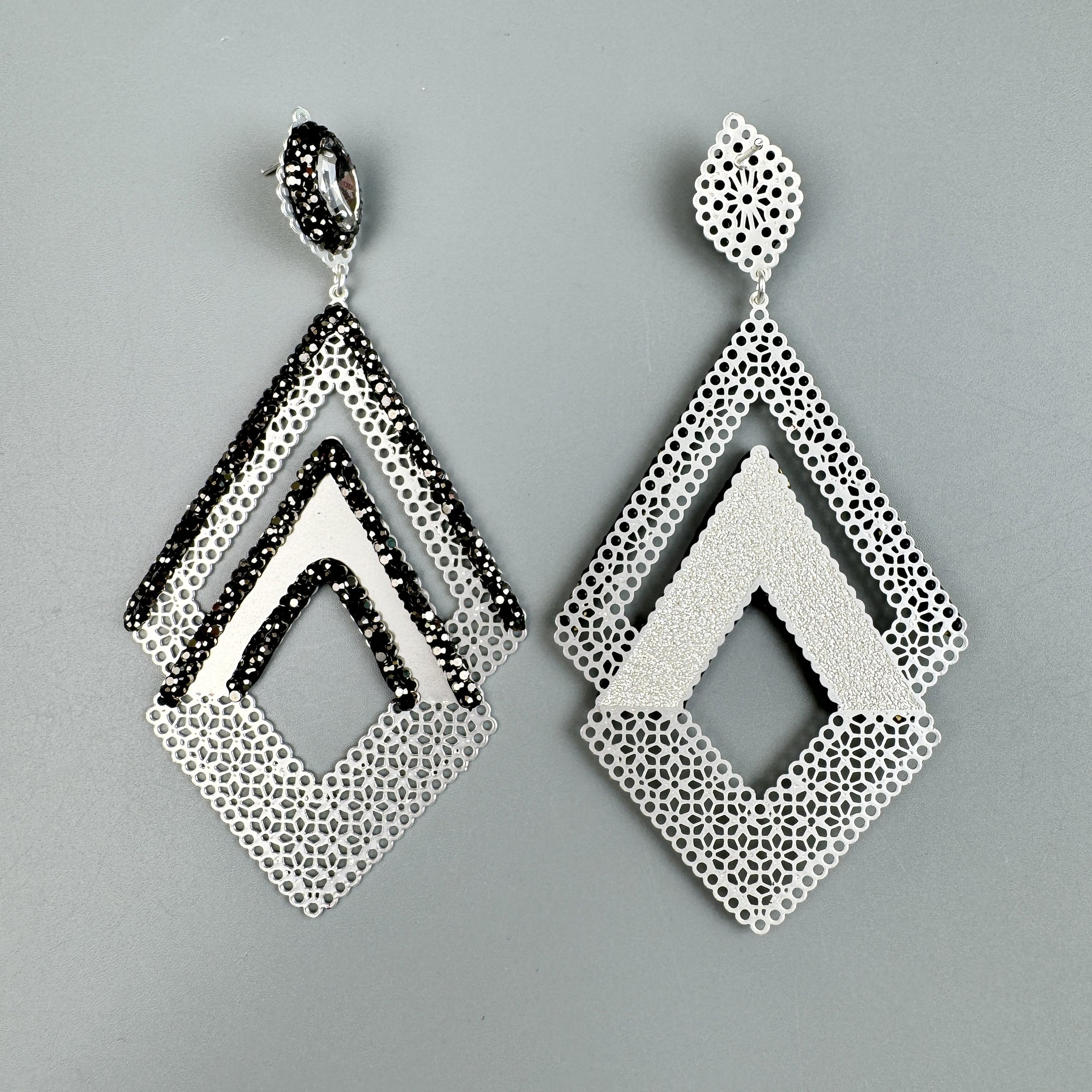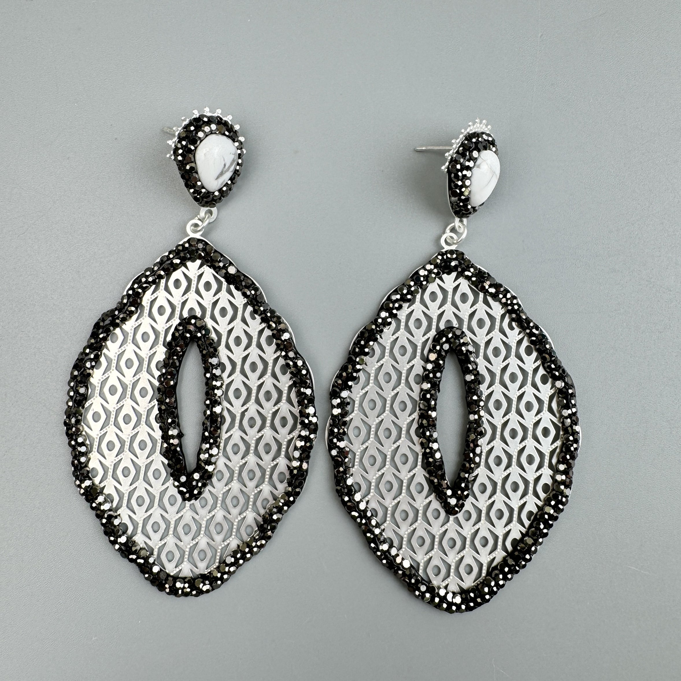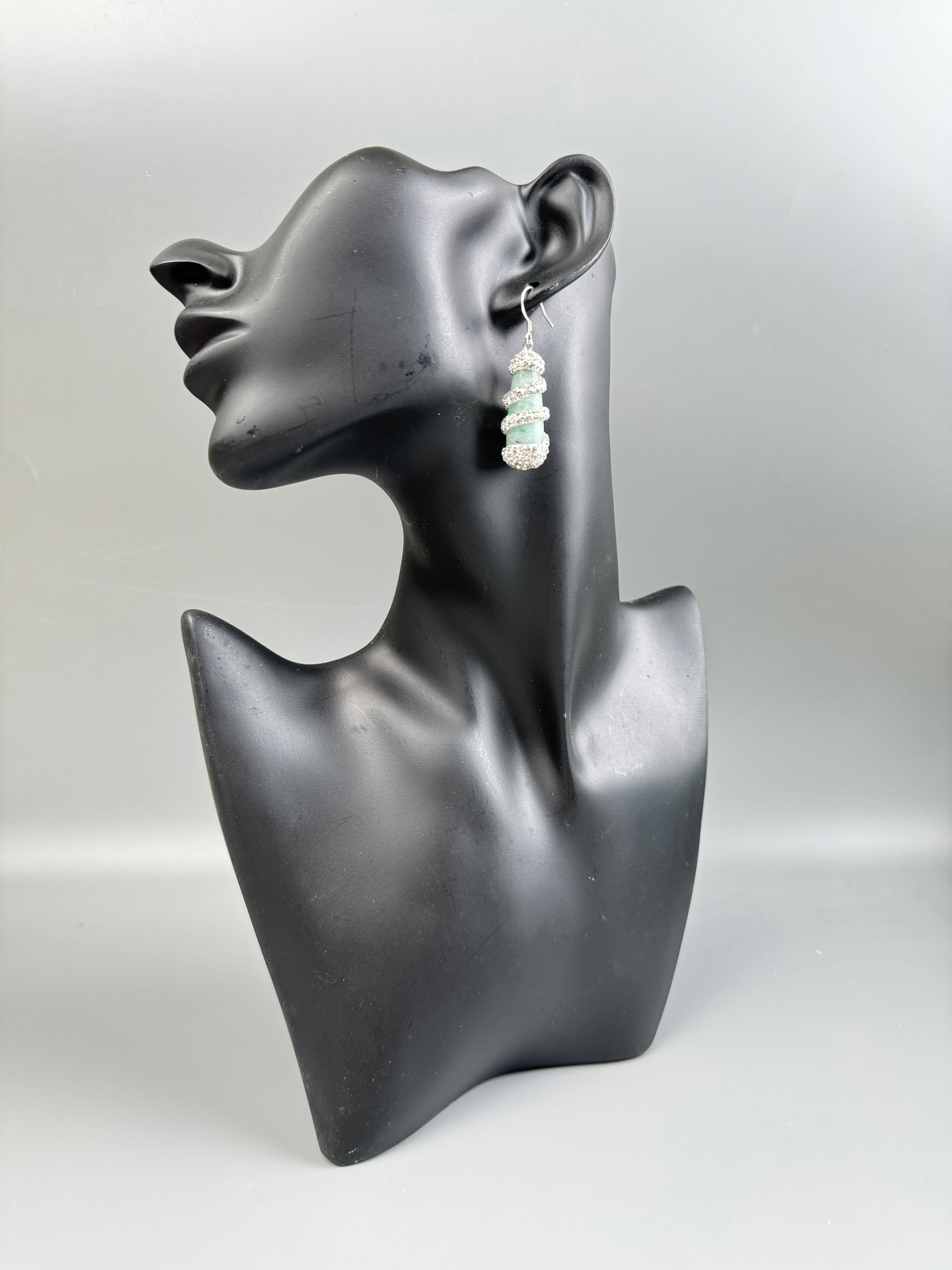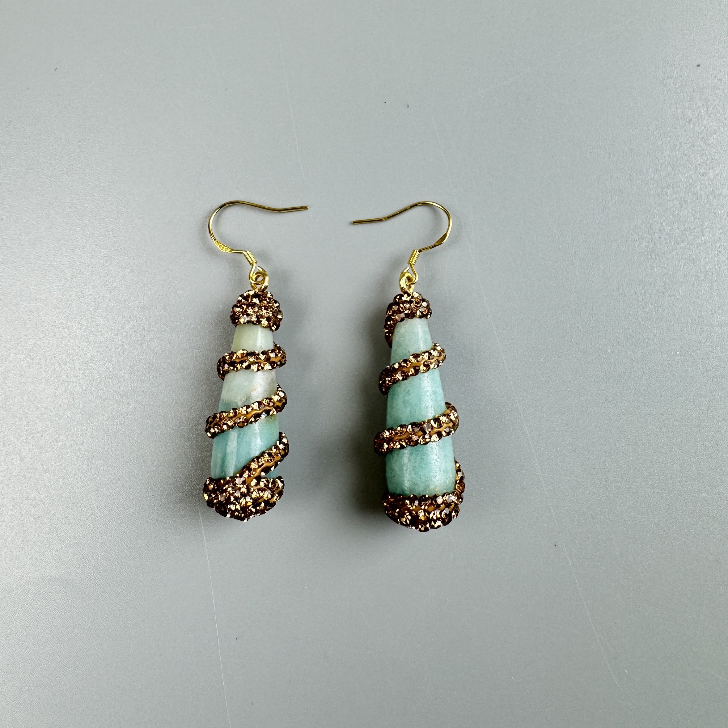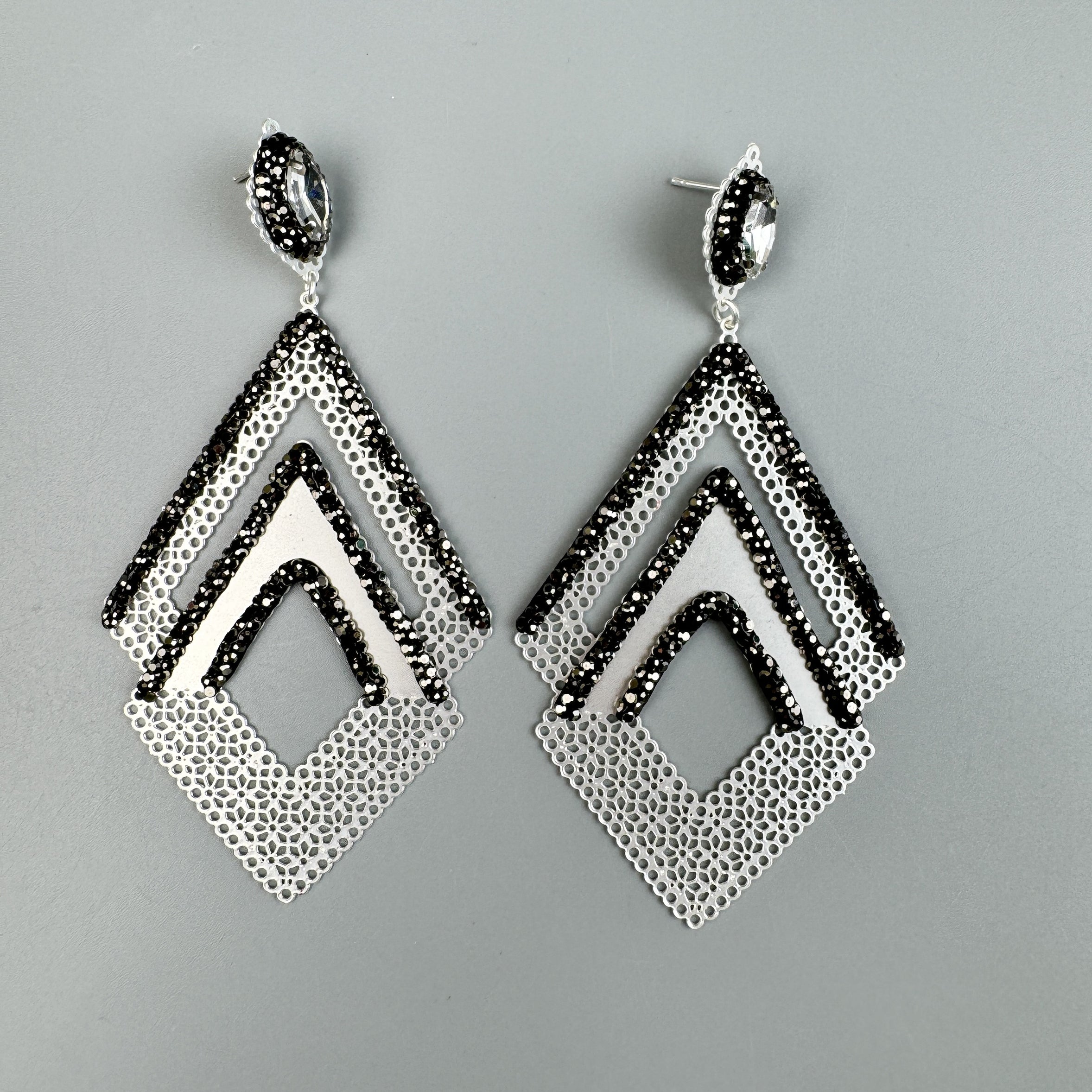 Pendientes geométricos de aleación con diamantes de imitación turquesa E8597