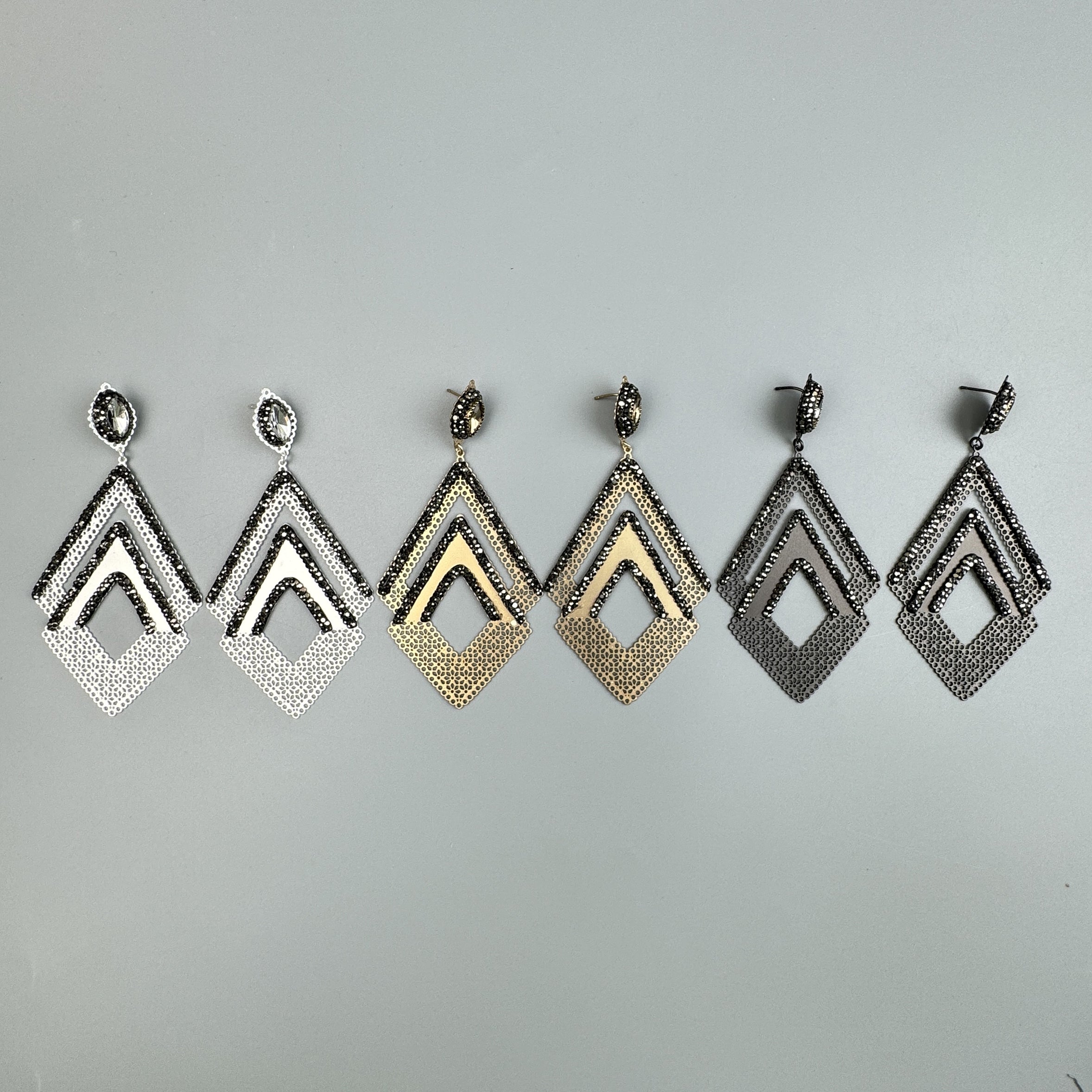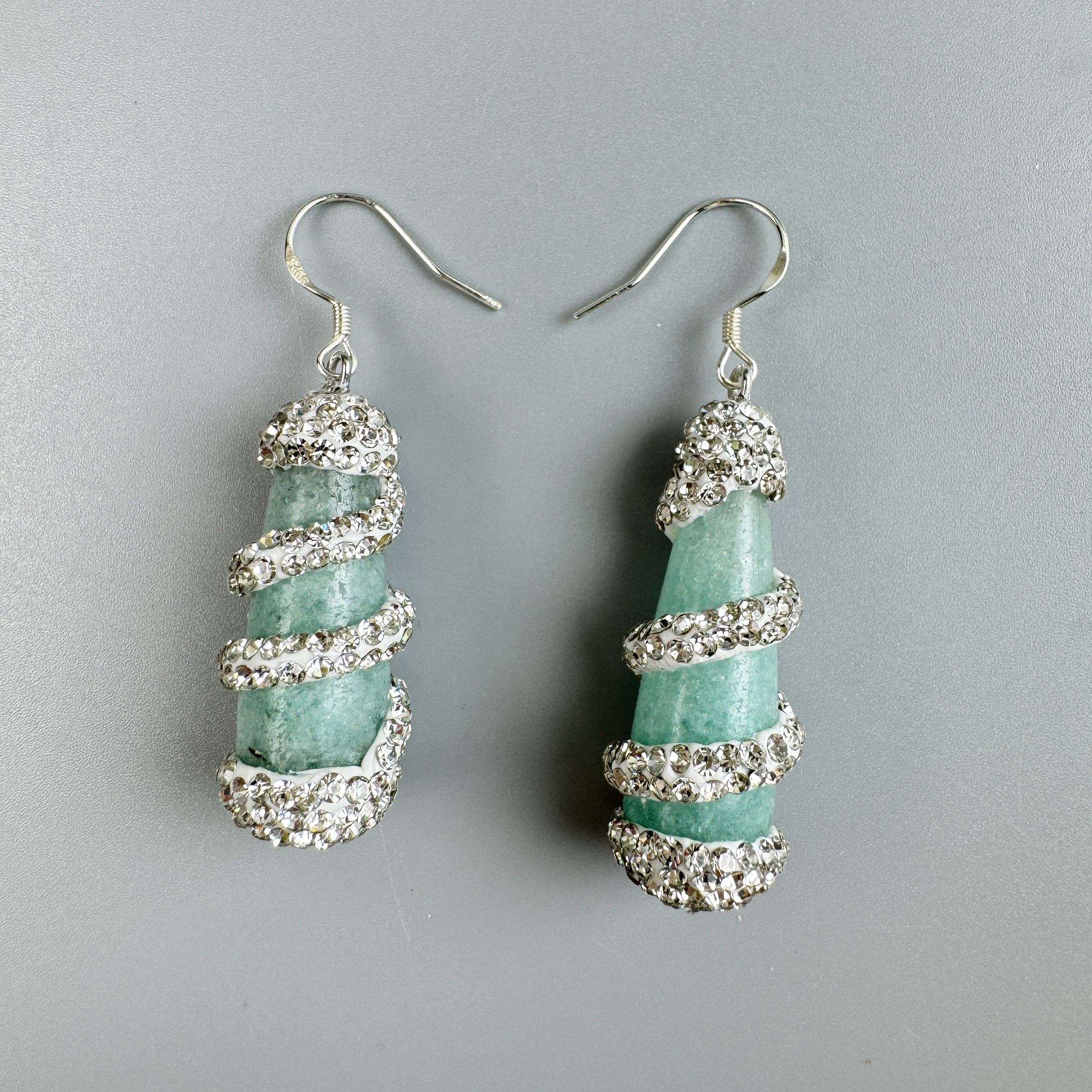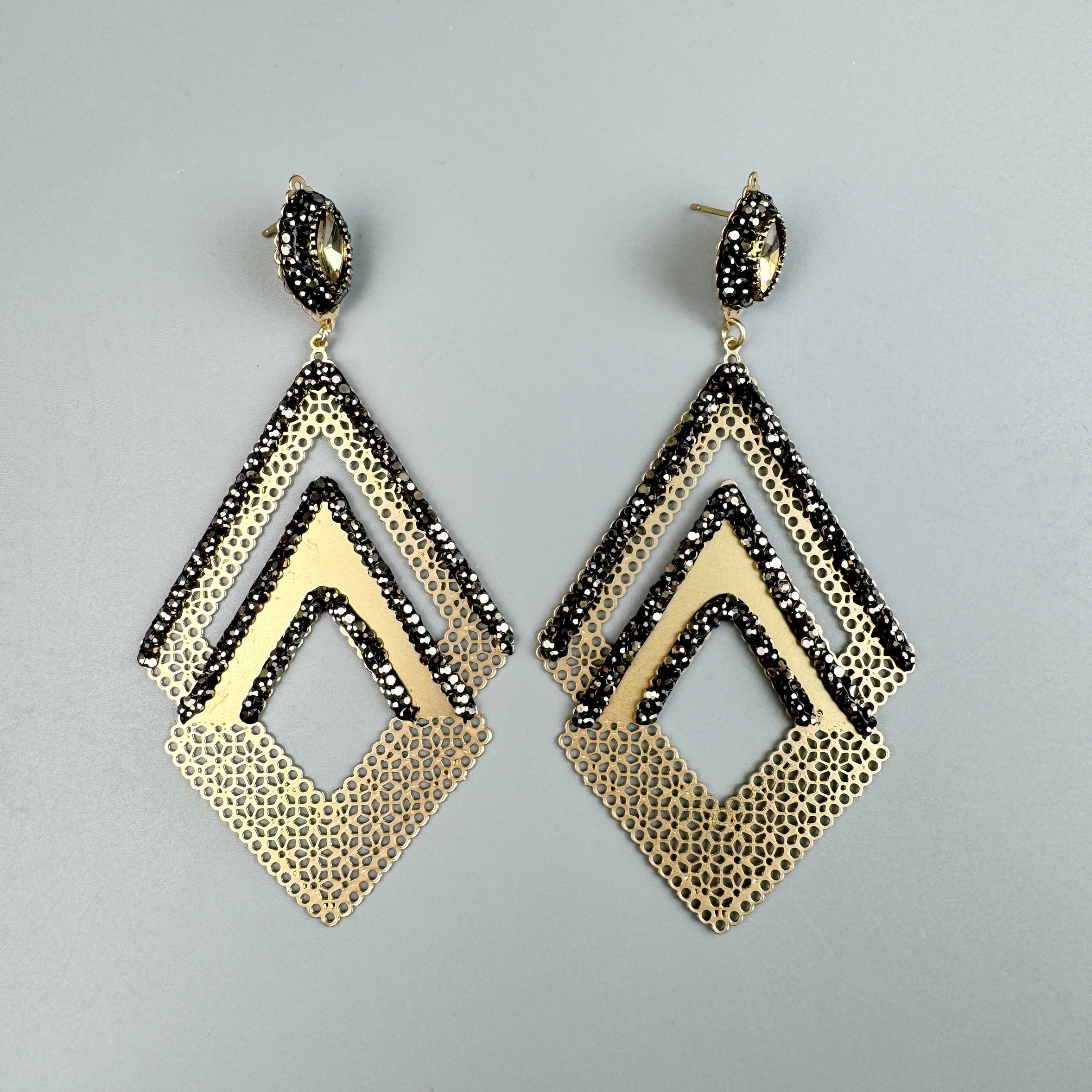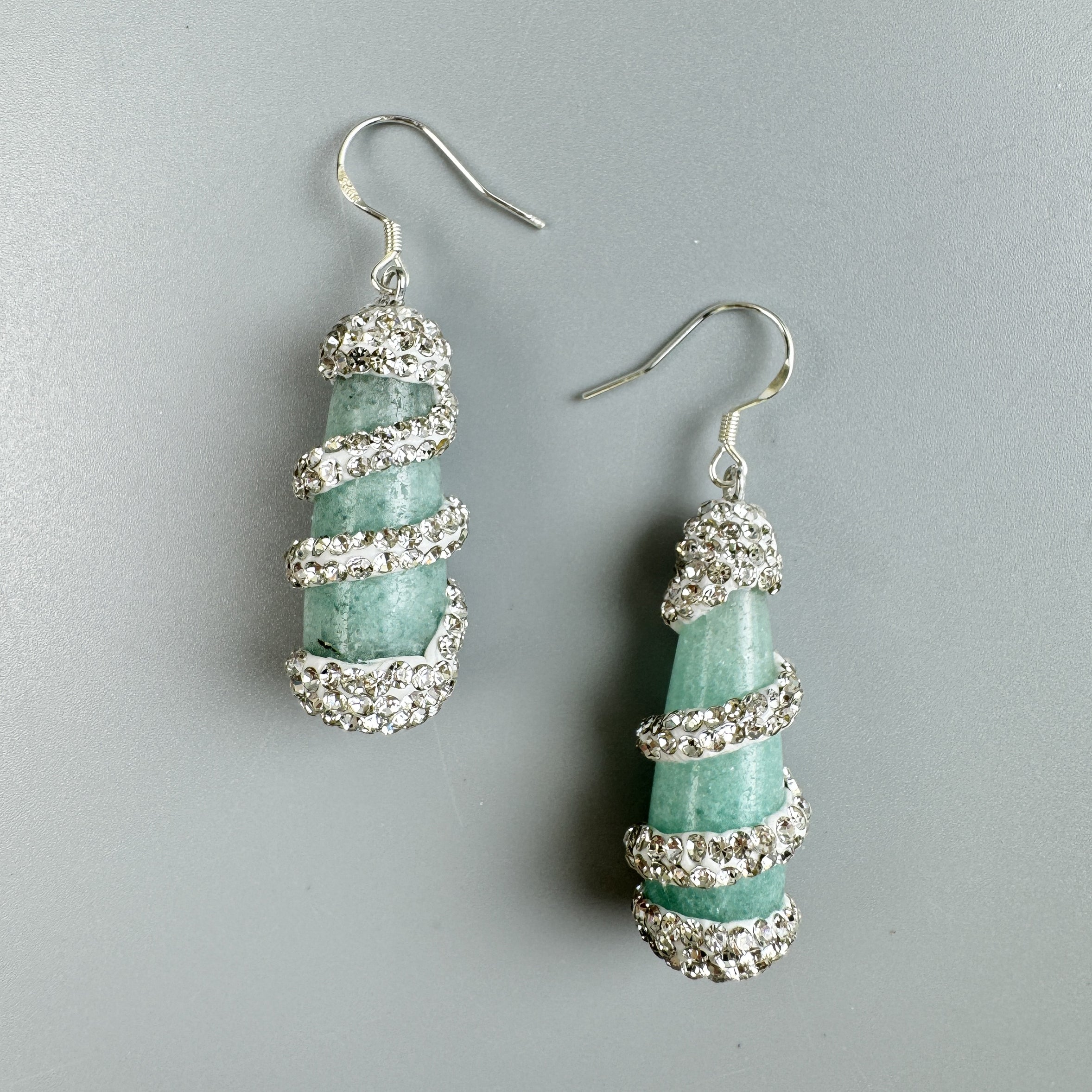 Pendientes geométricos de aleación con diamantes de imitación turquesa E8597