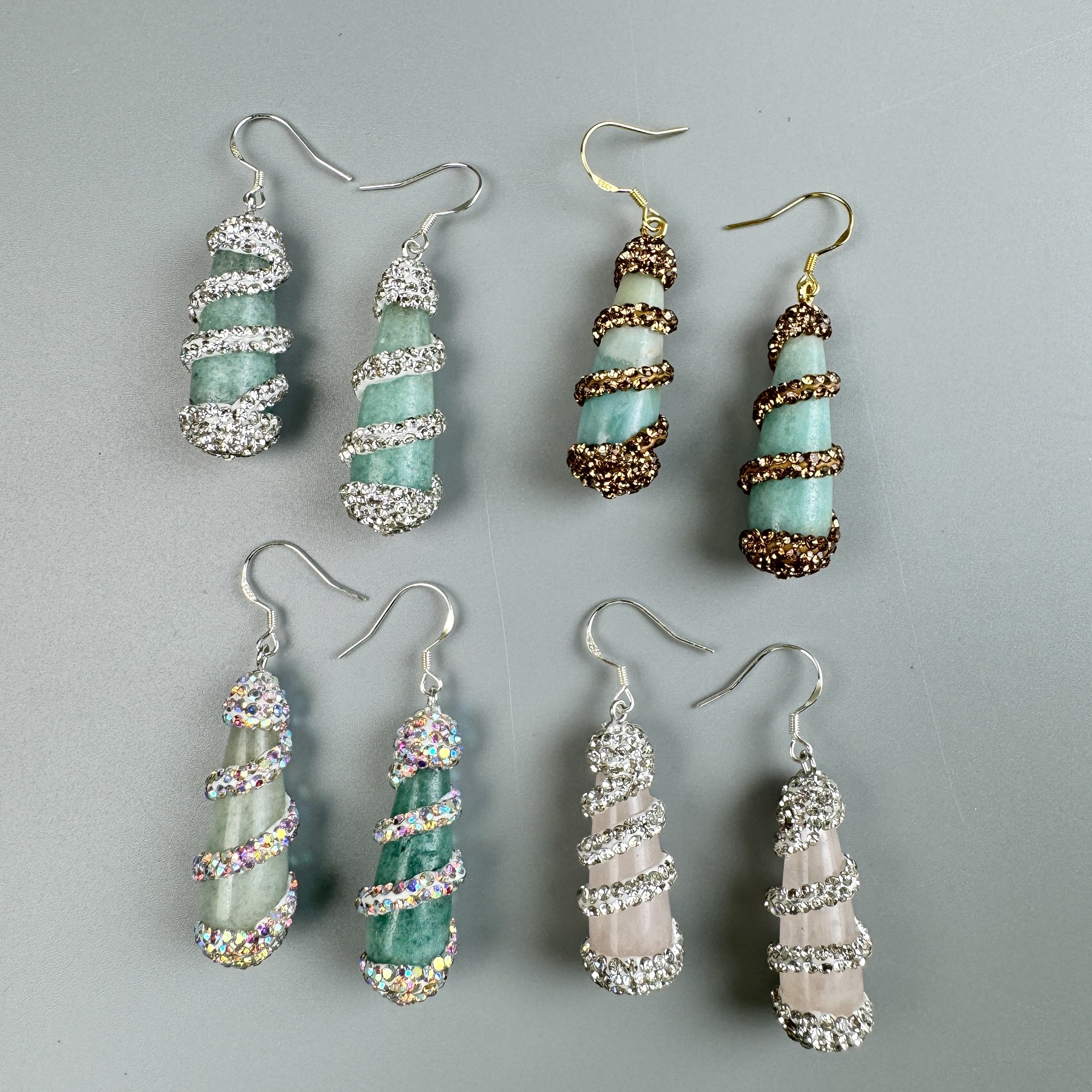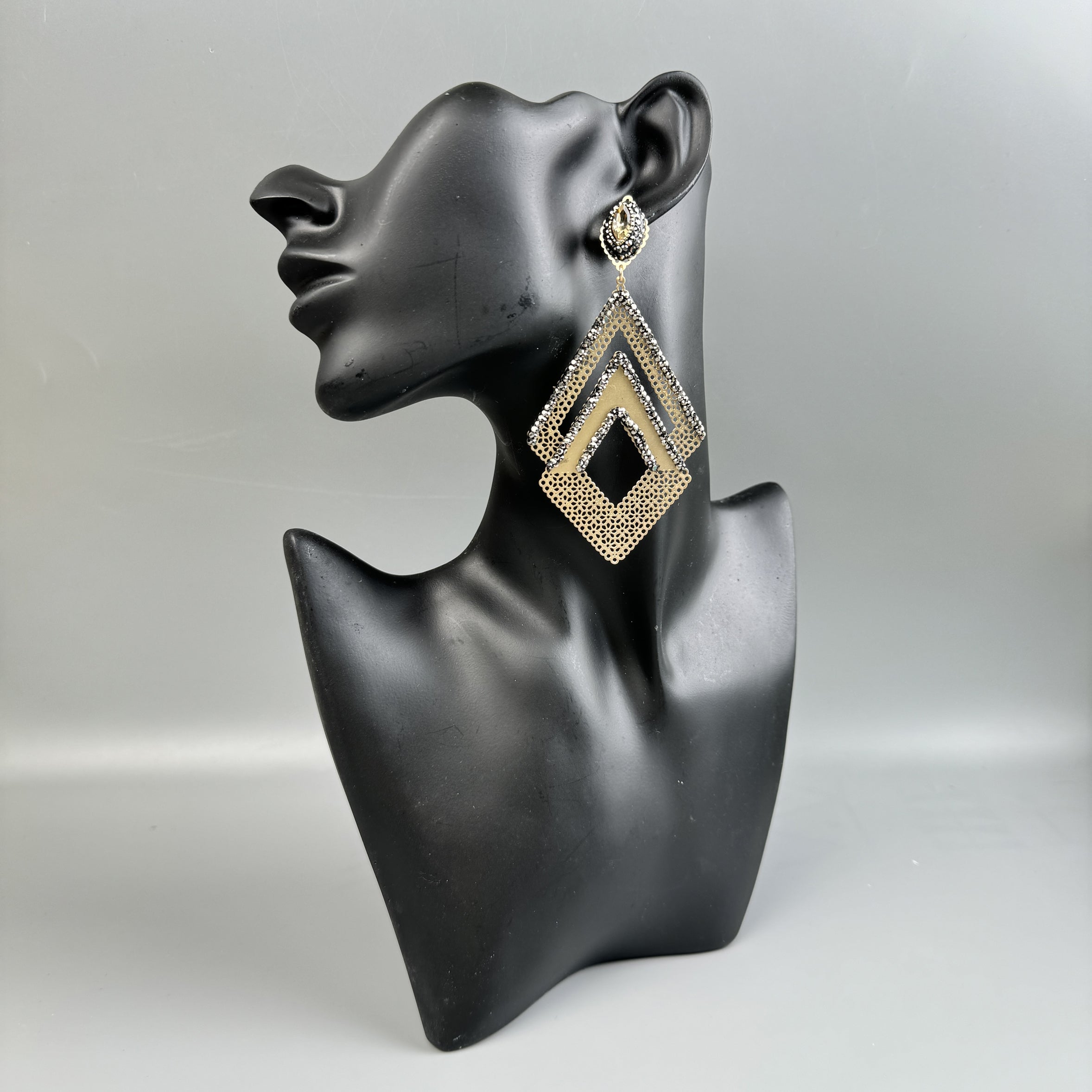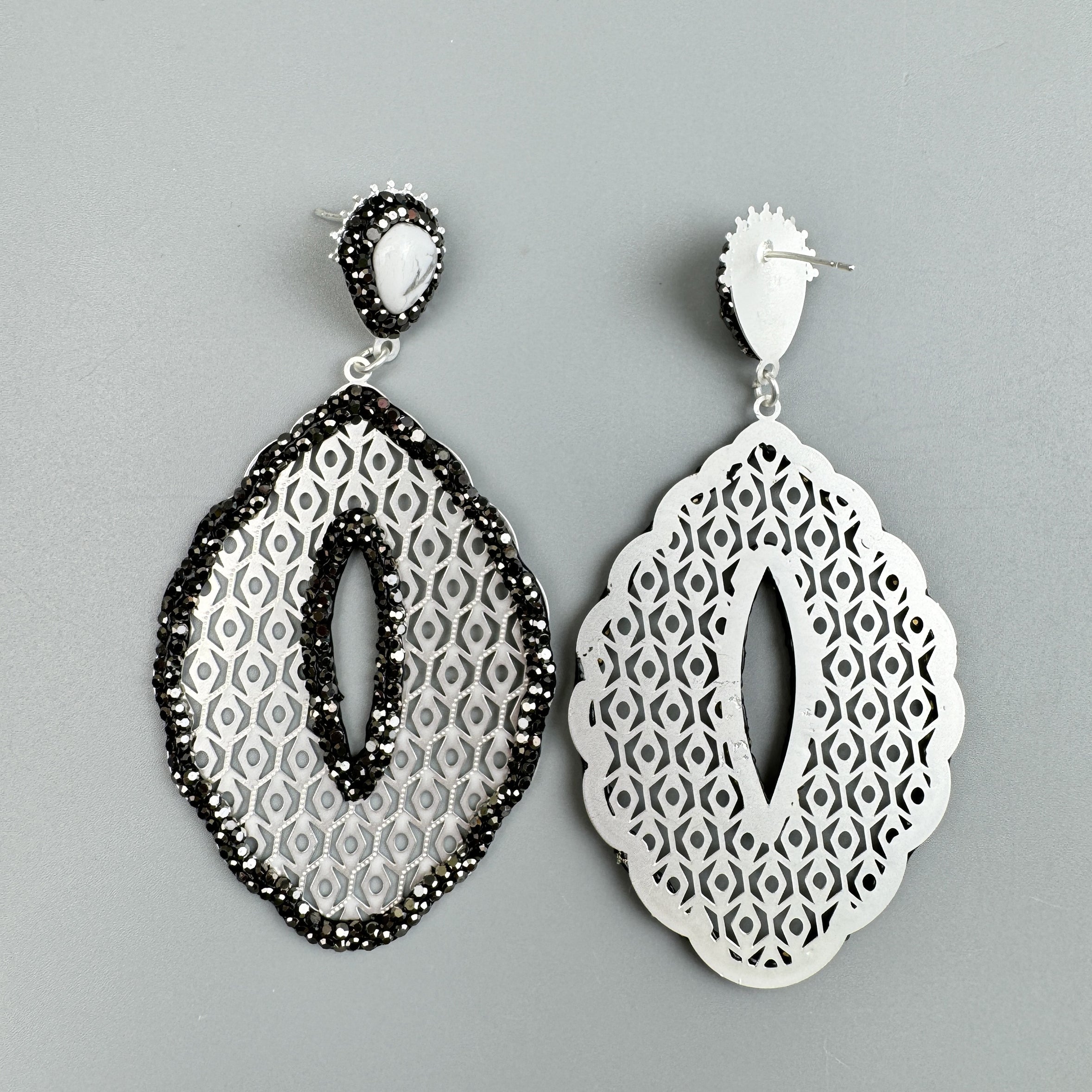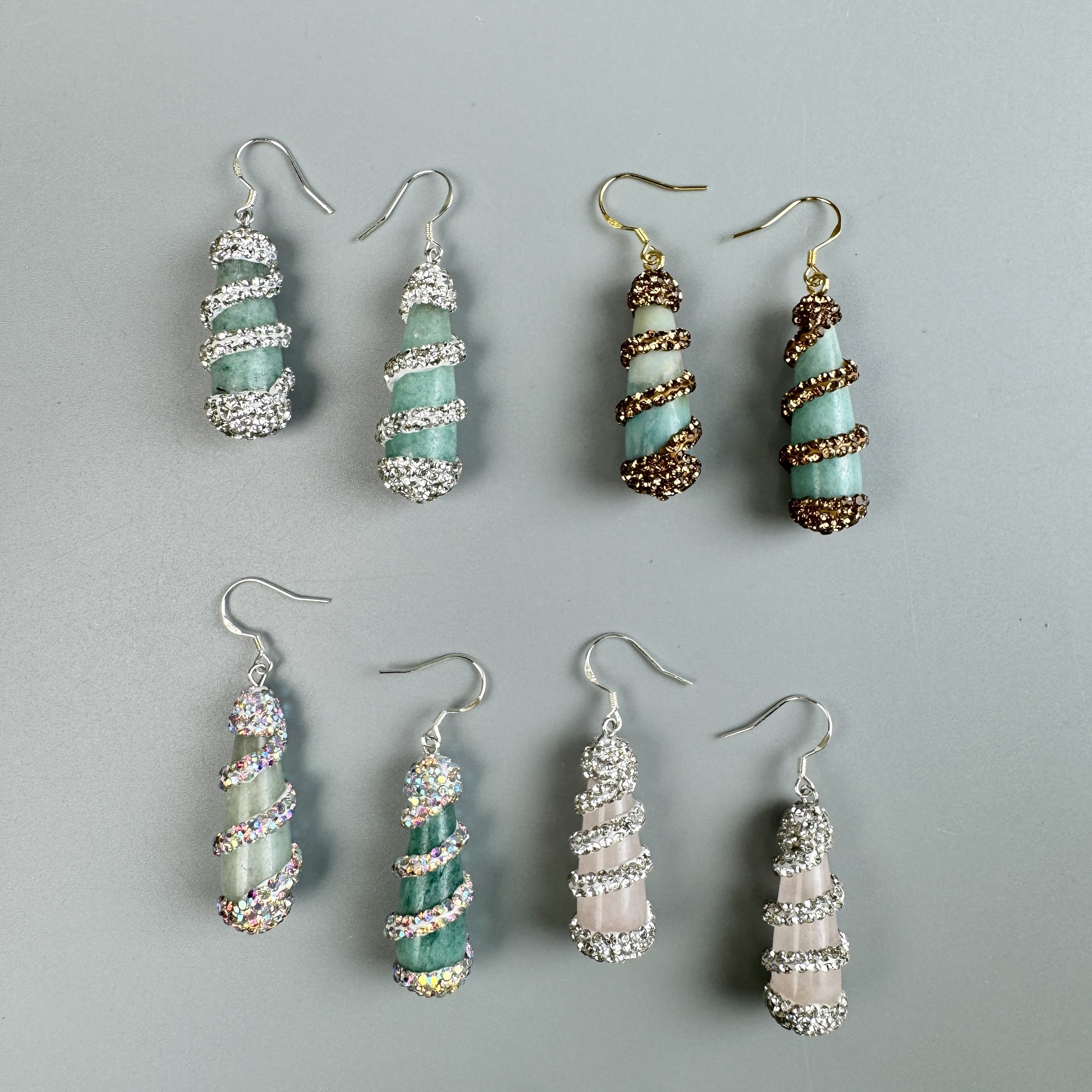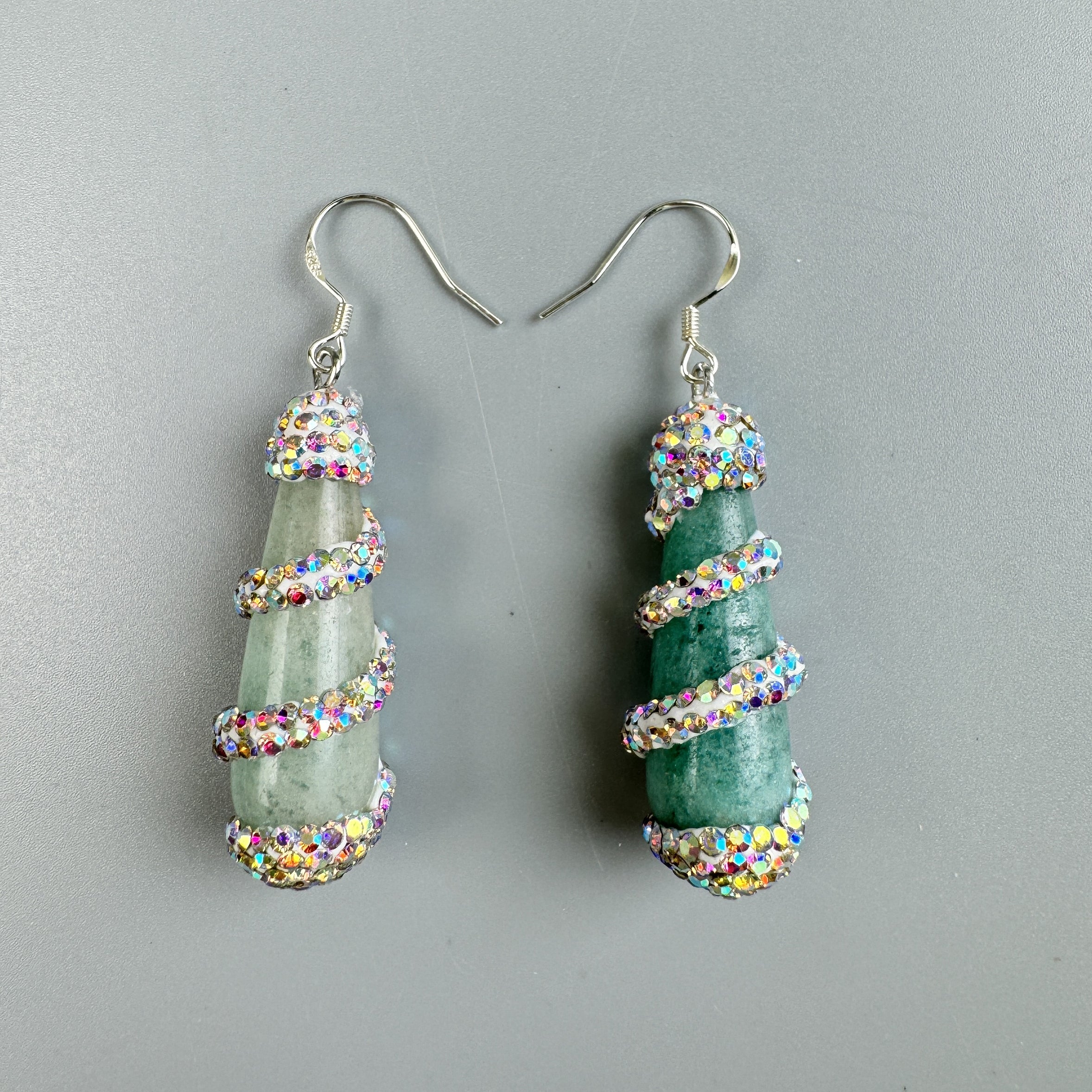 Pendientes geométricos de aleación con diamantes de imitación turquesa E8597
