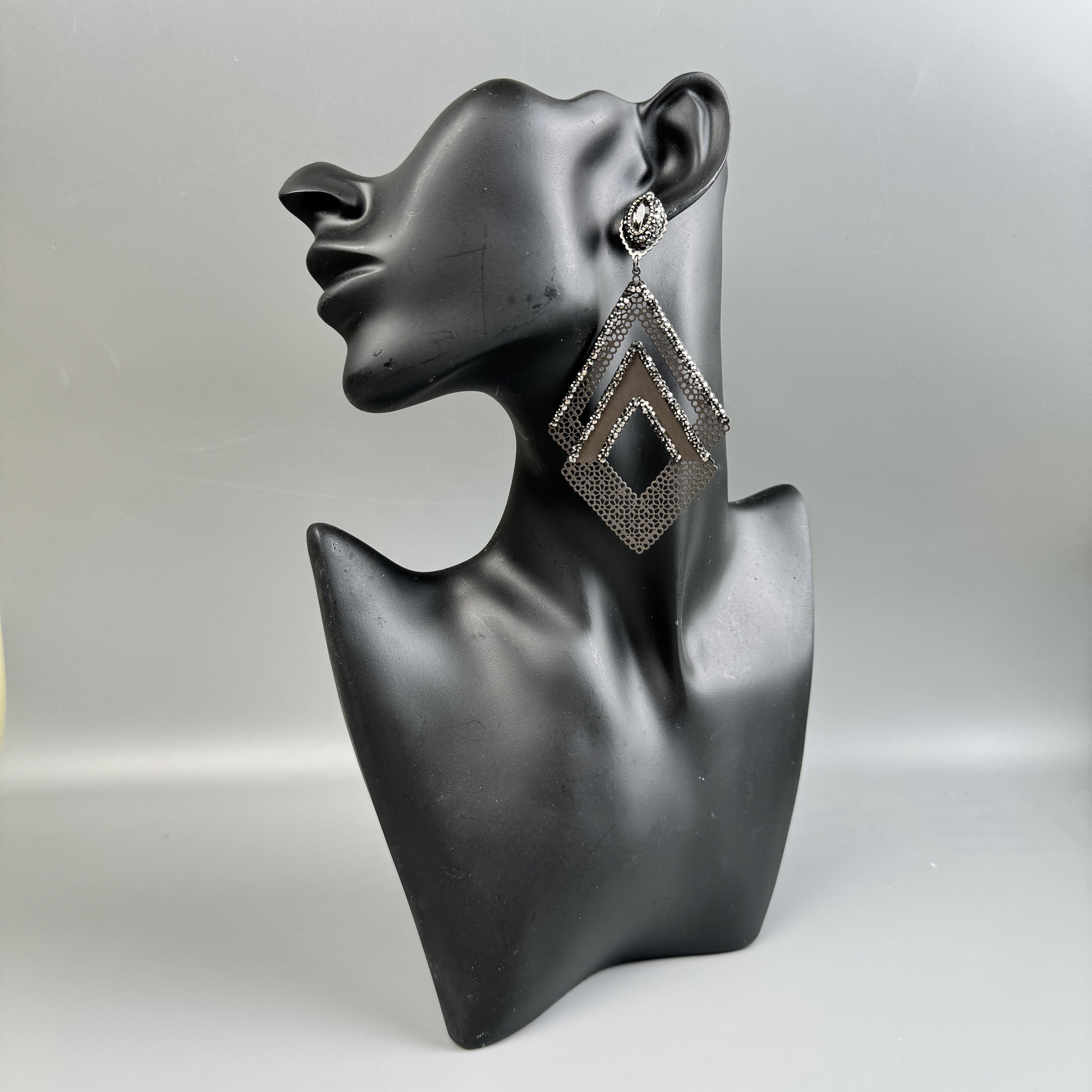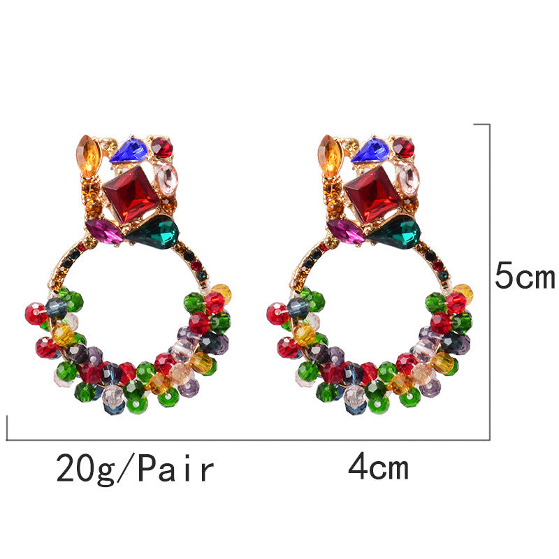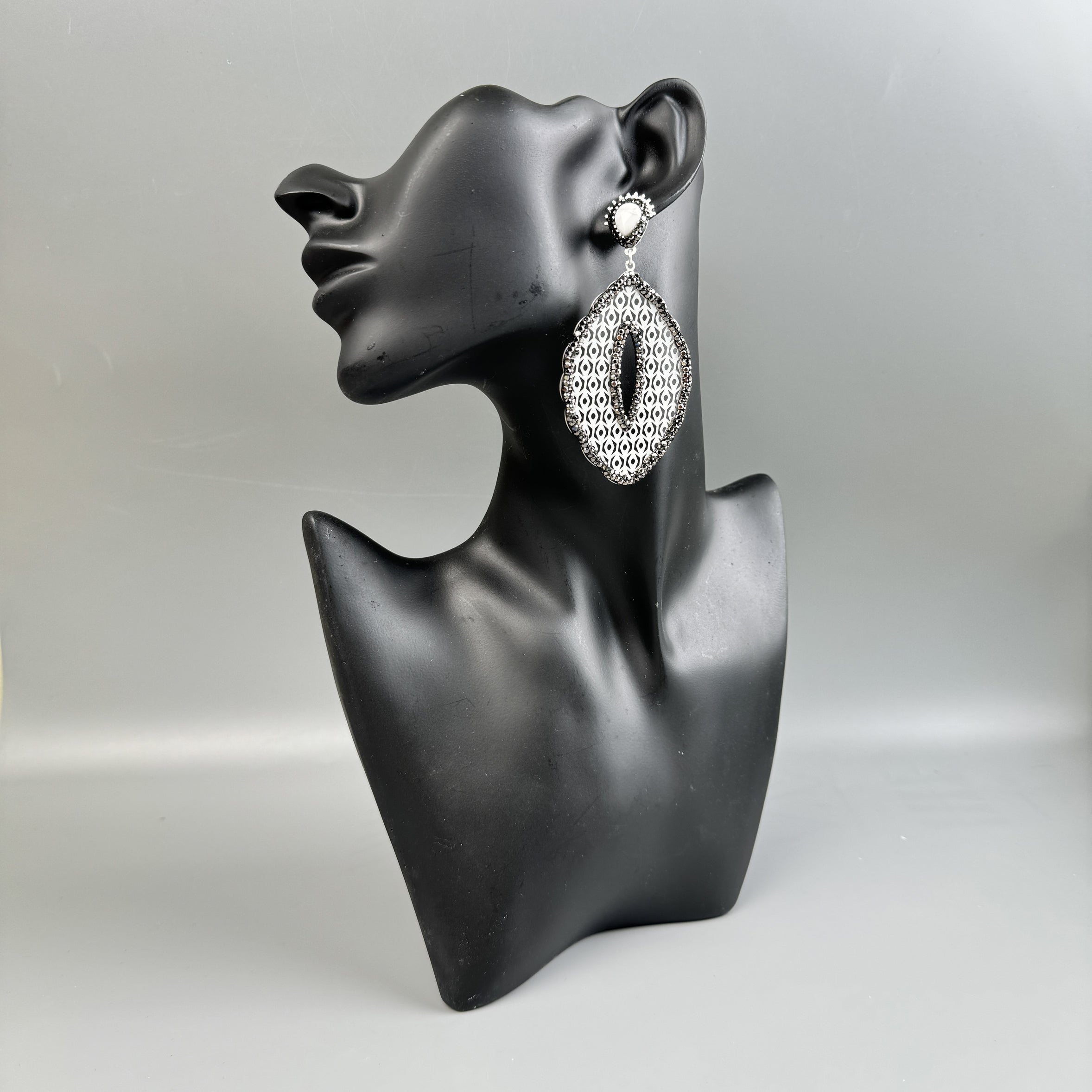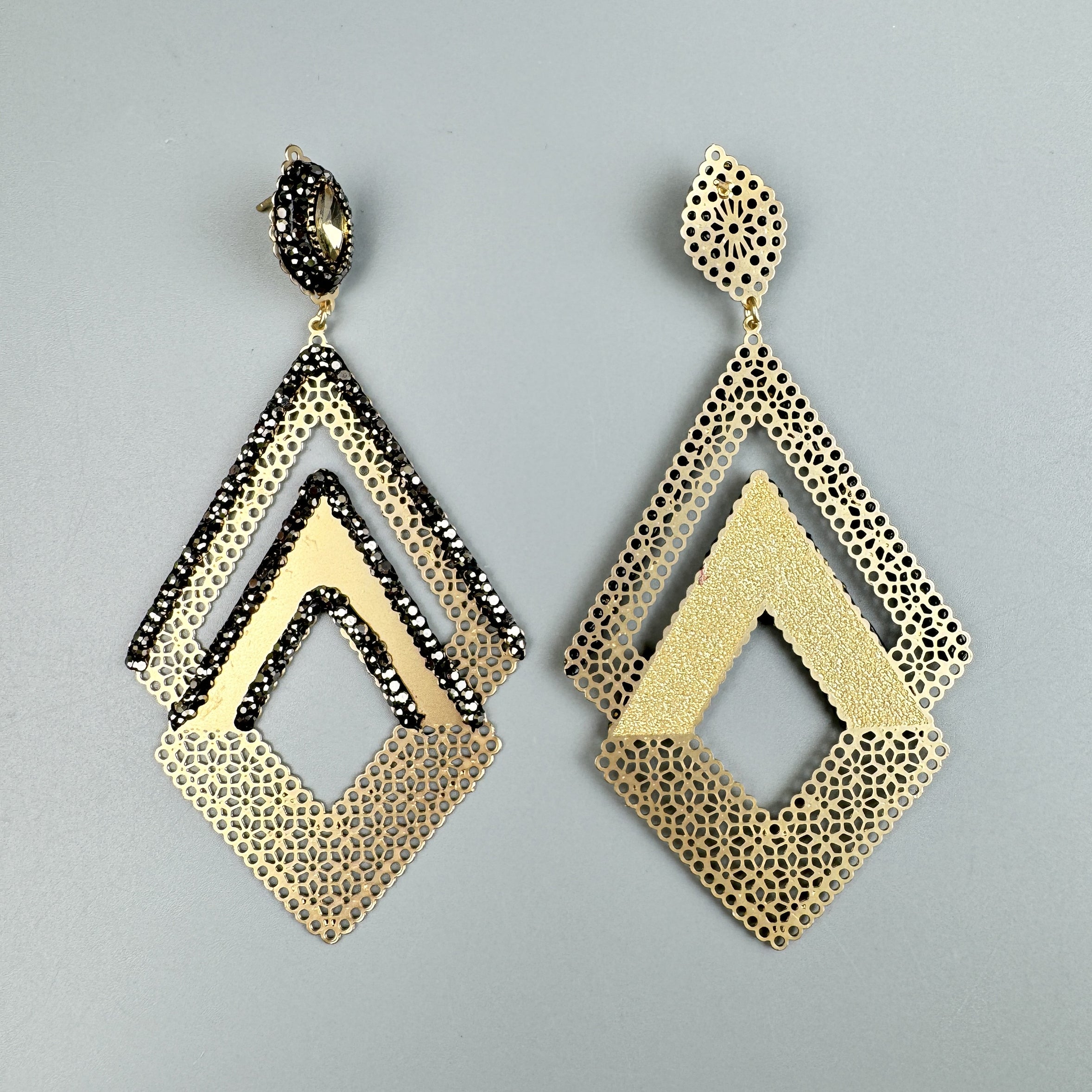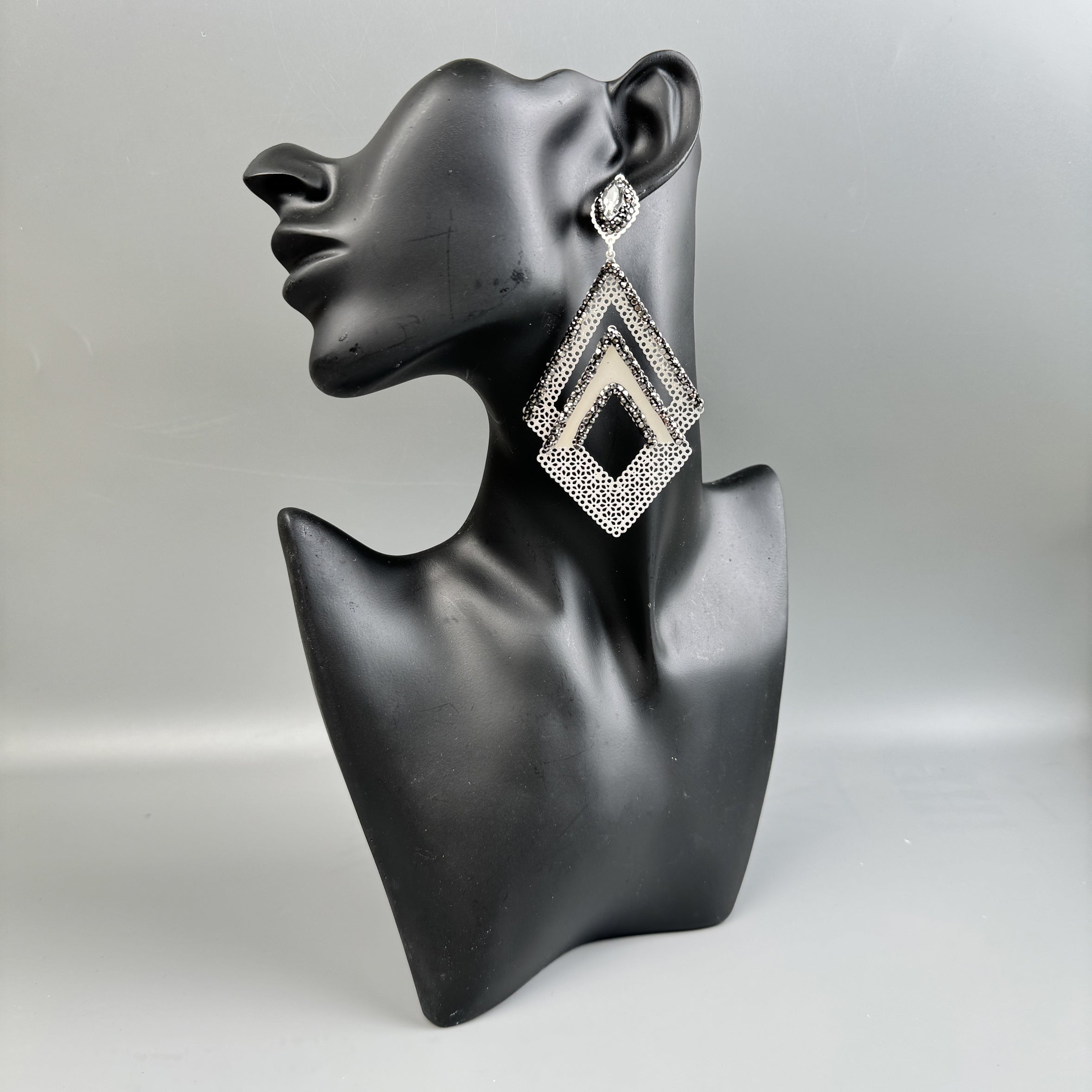 Pendientes geométricos de aleación con diamantes de imitación turquesa E8597