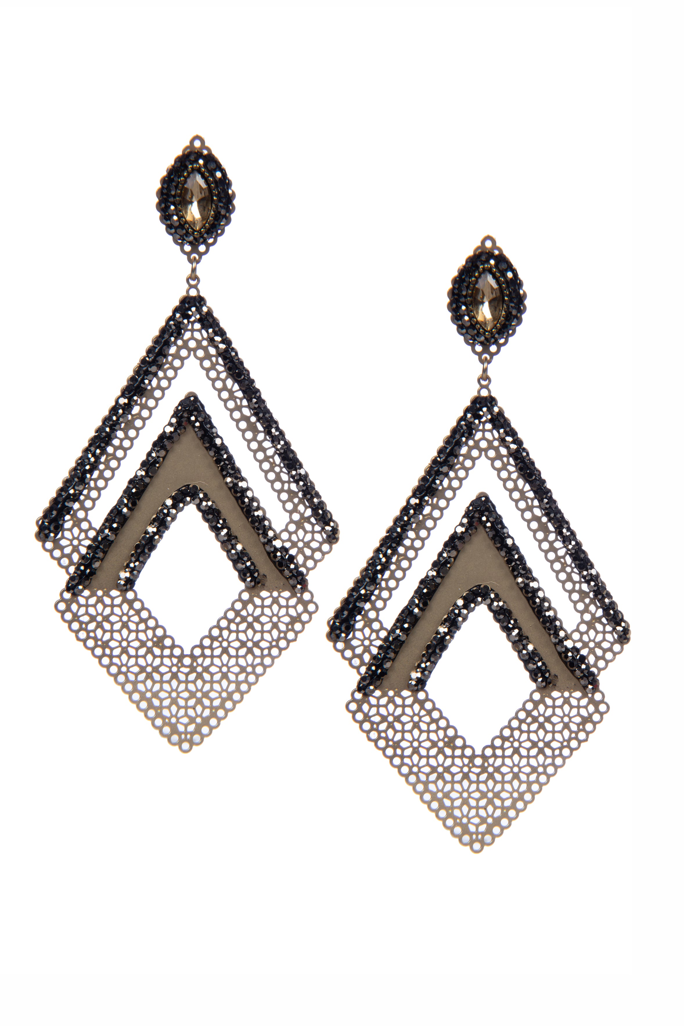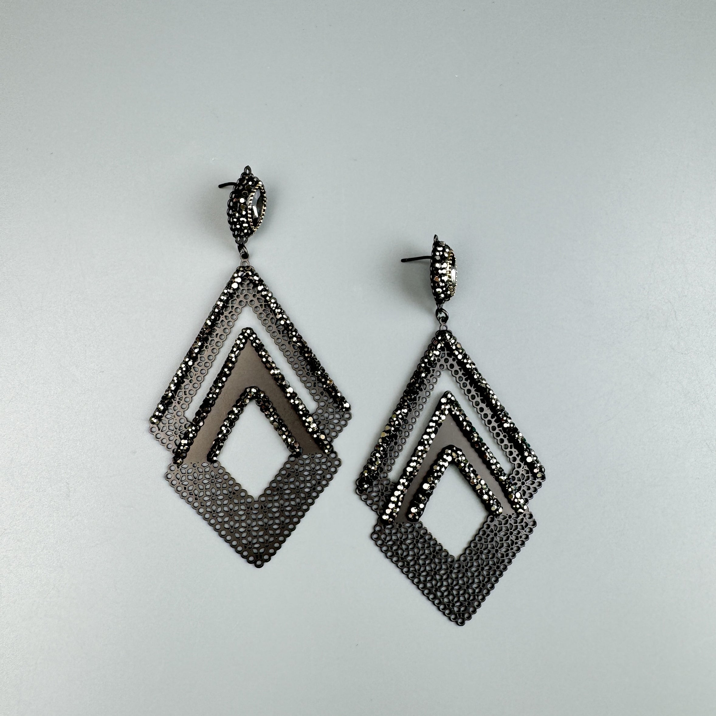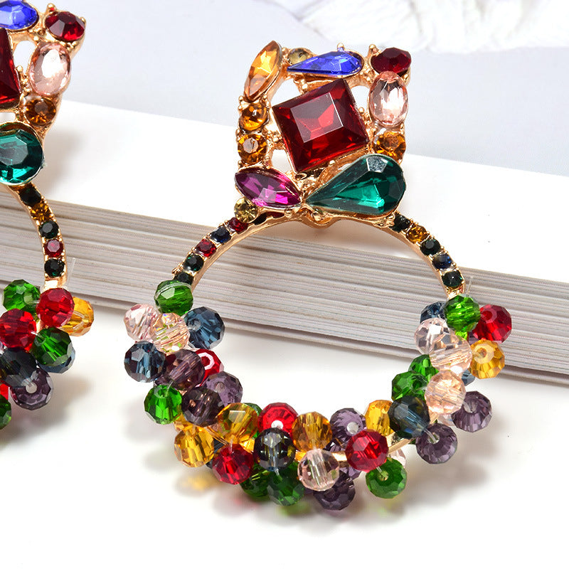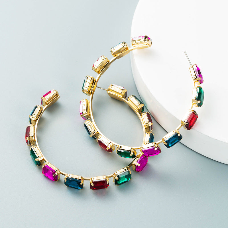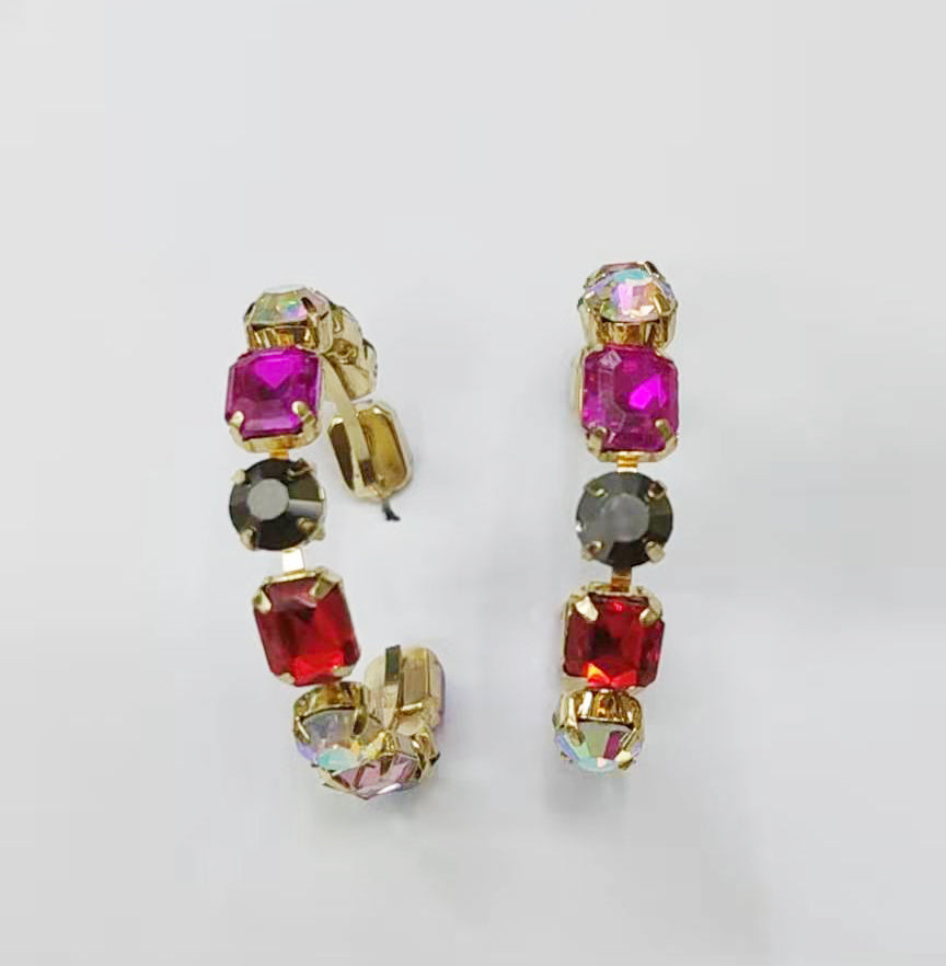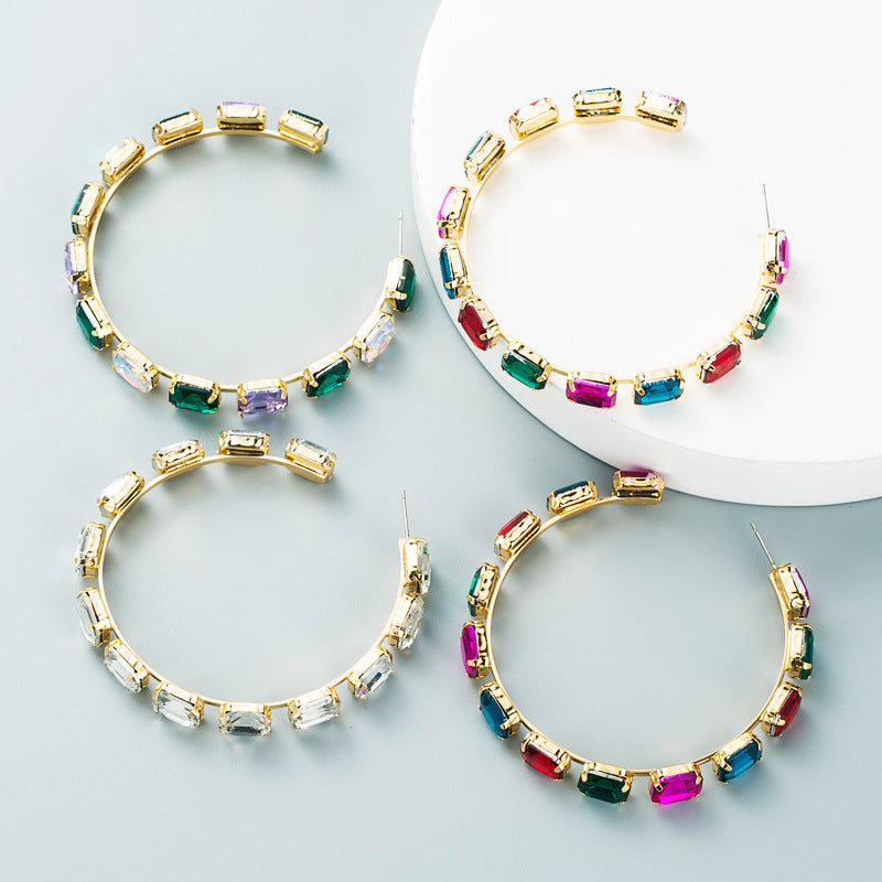 Pendientes geométricos de aleación con diamantes de imitación turquesa E8597