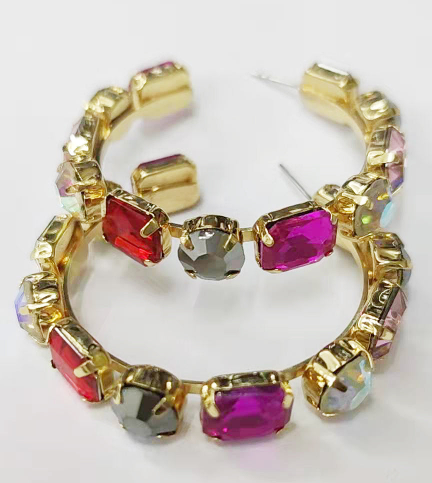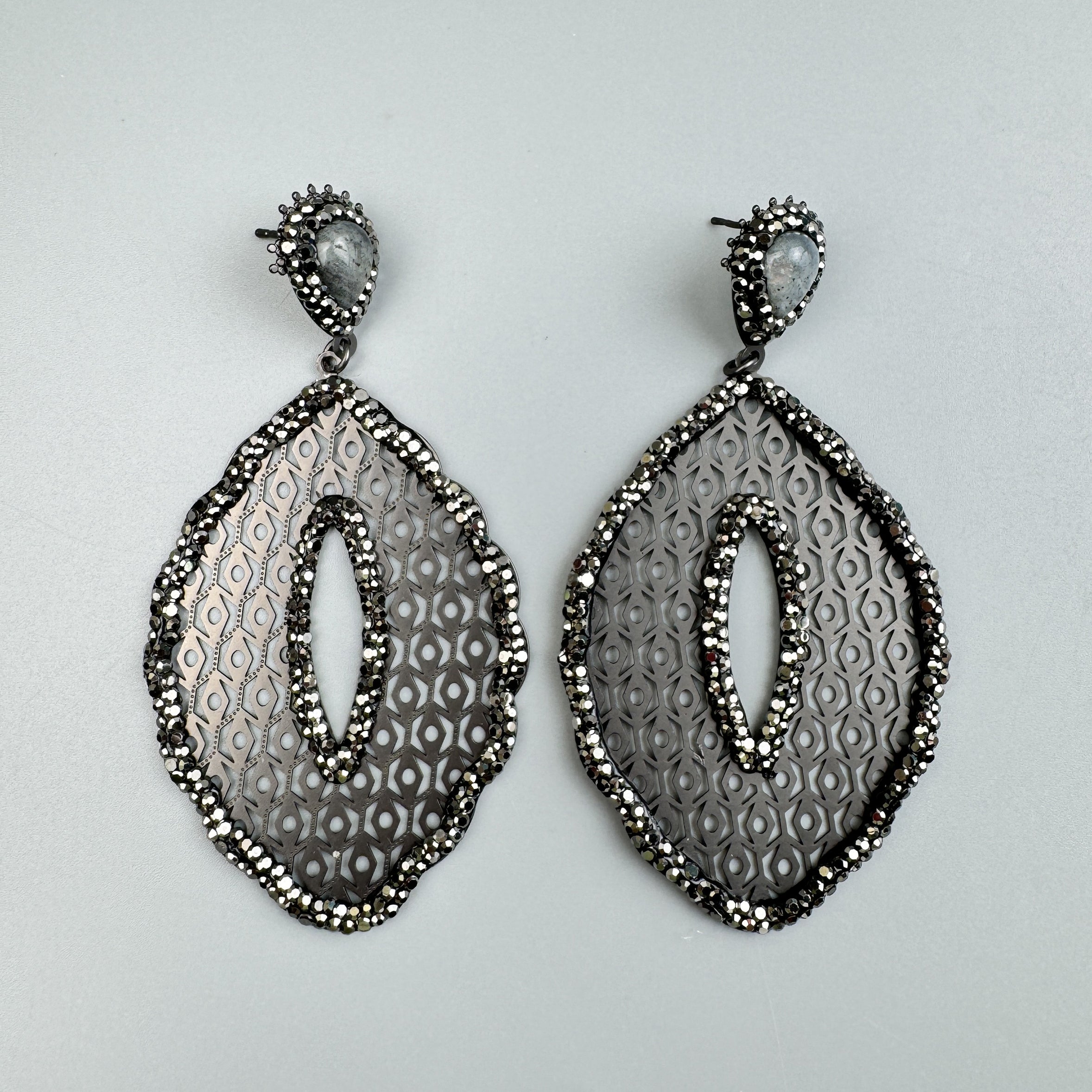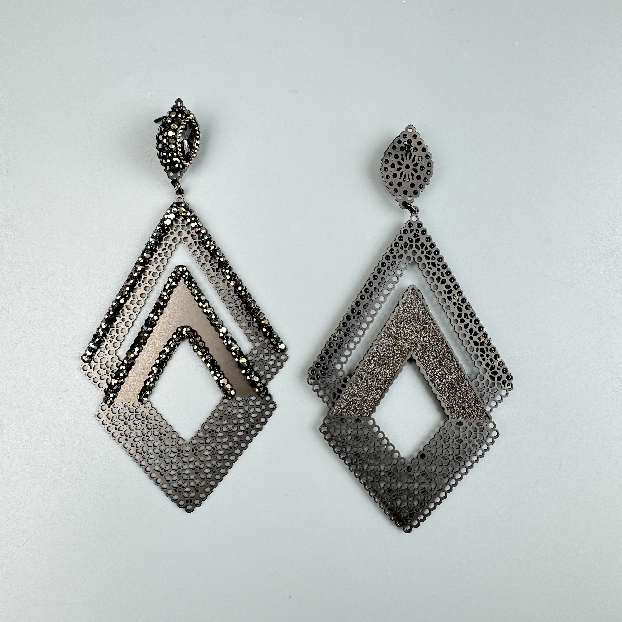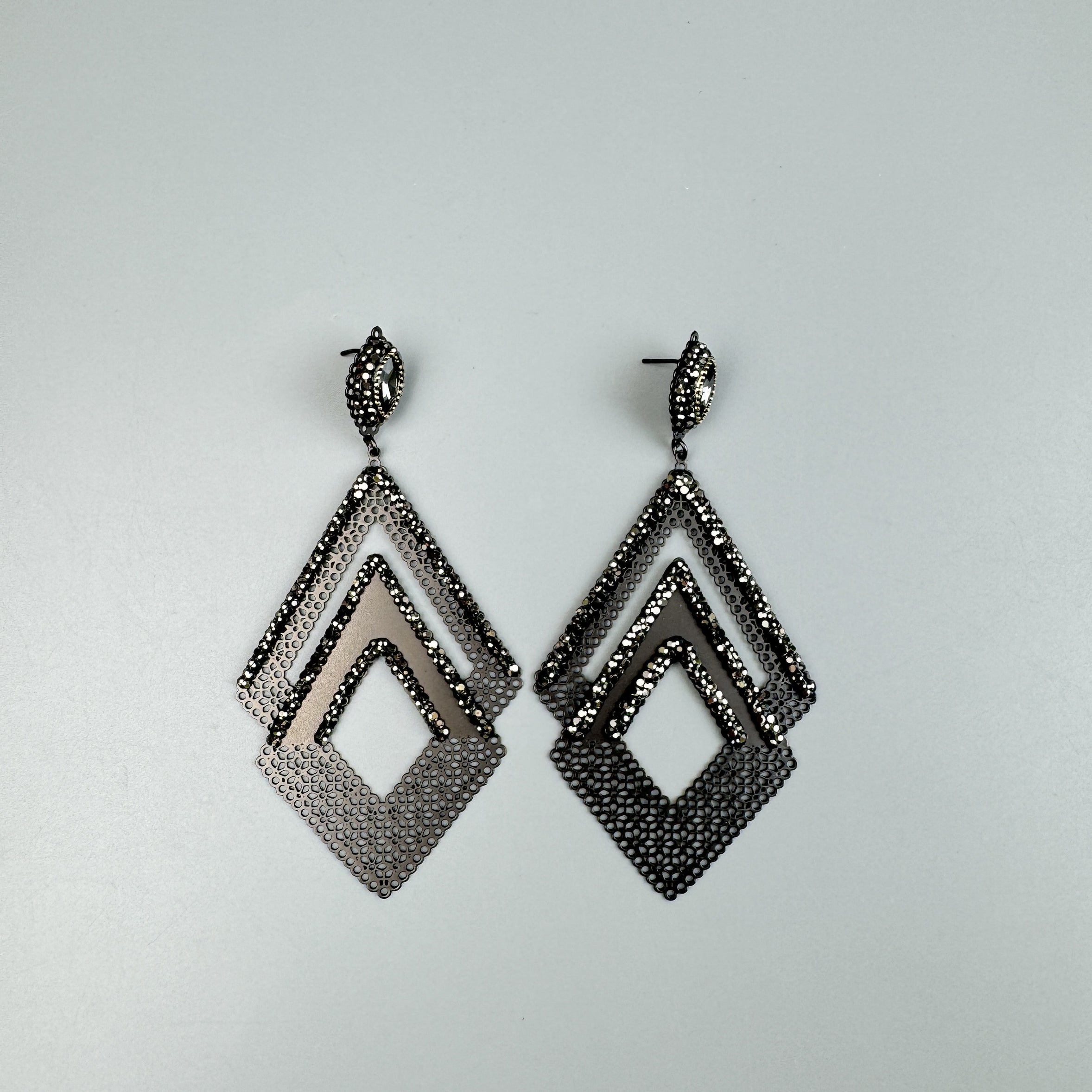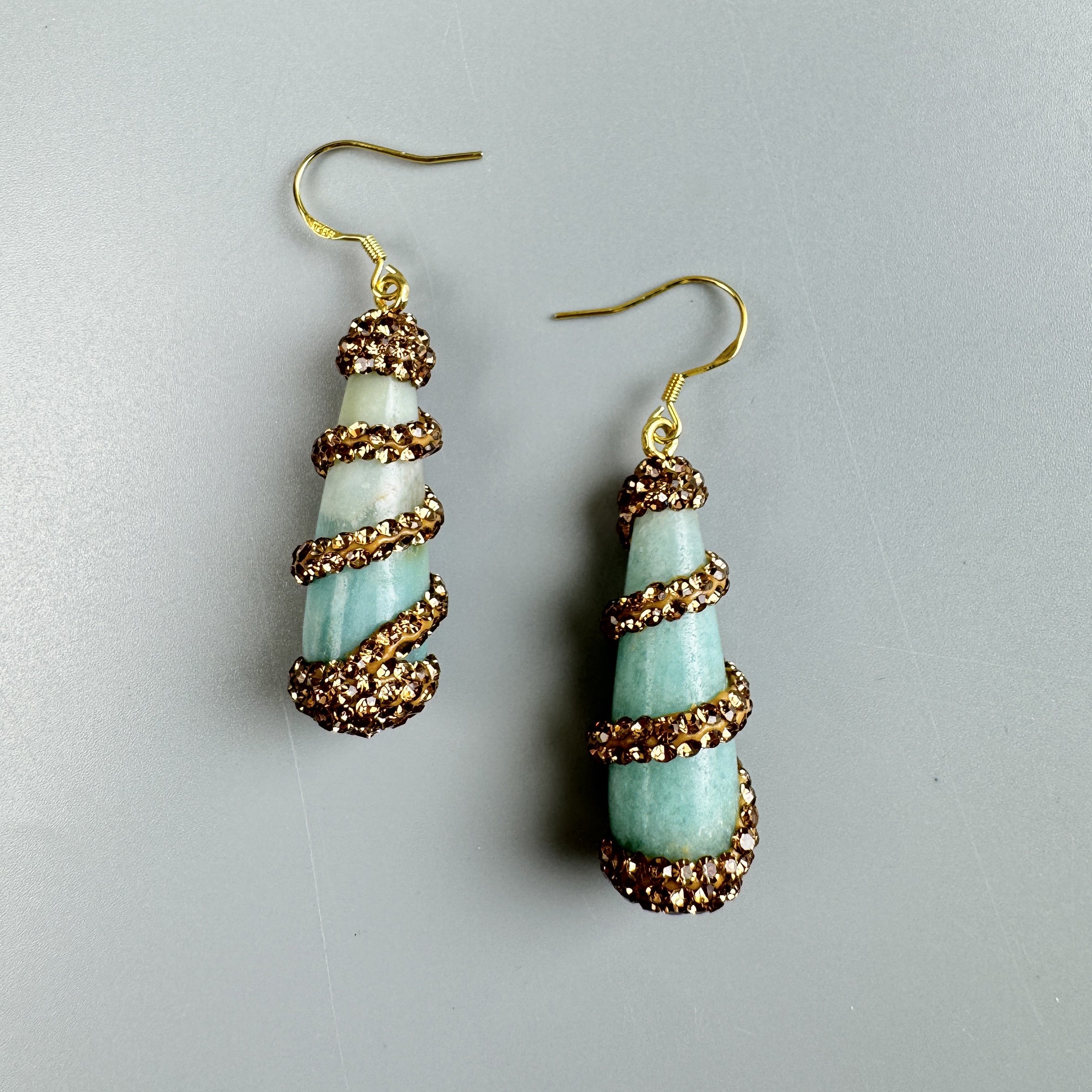 Pendientes geométricos de aleación con diamantes de imitación turquesa E8597
