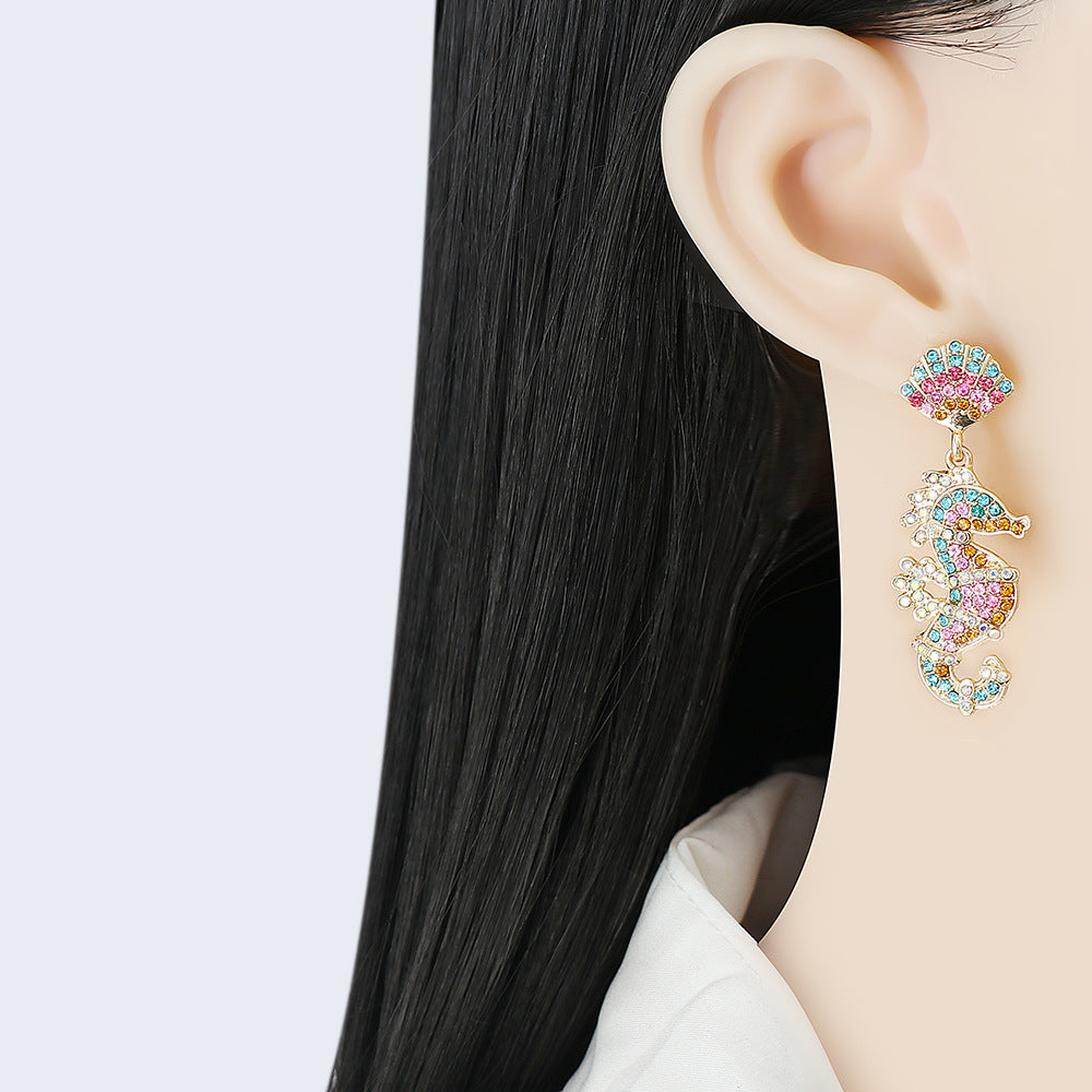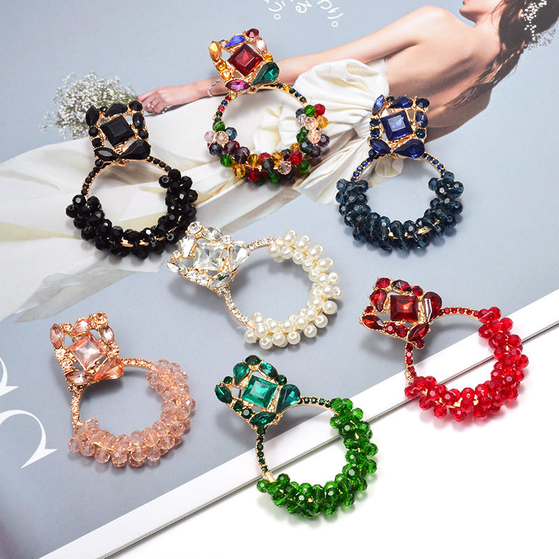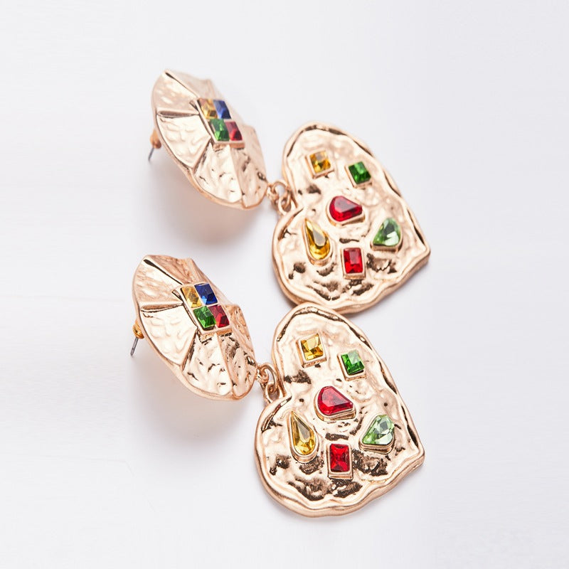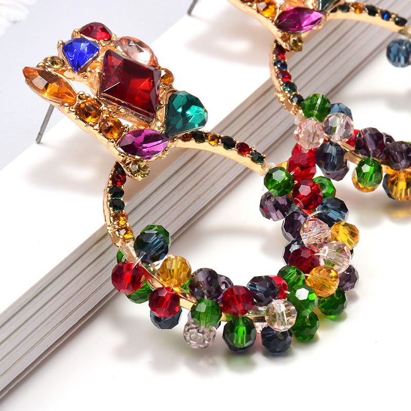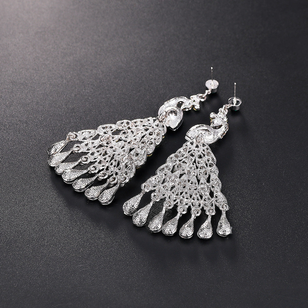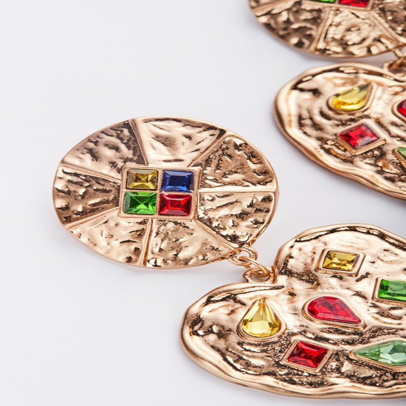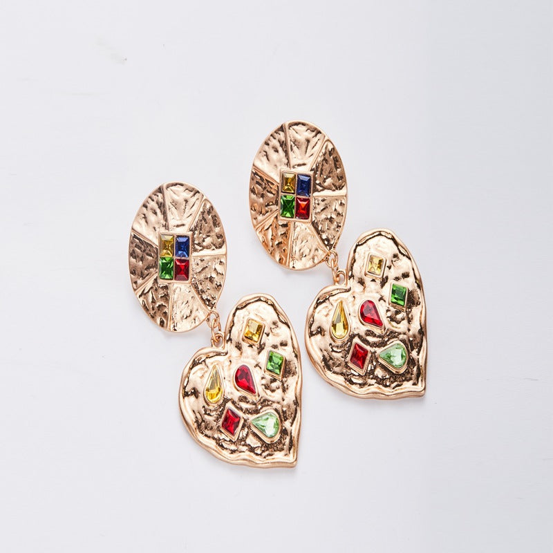 Pendientes geométricos de aleación con diamantes de imitación turquesa E8597