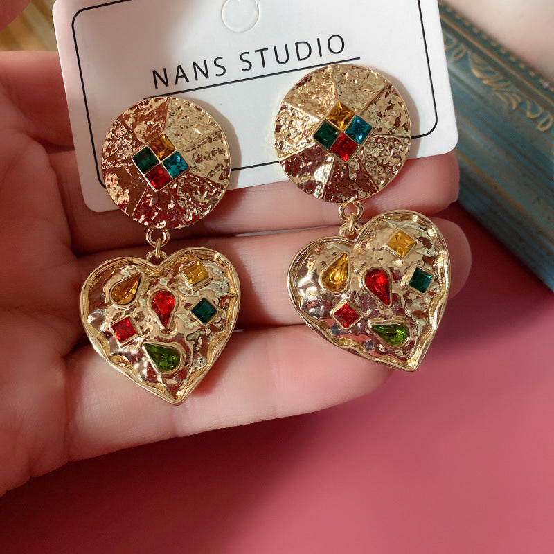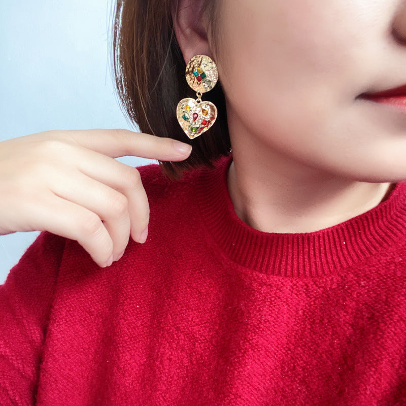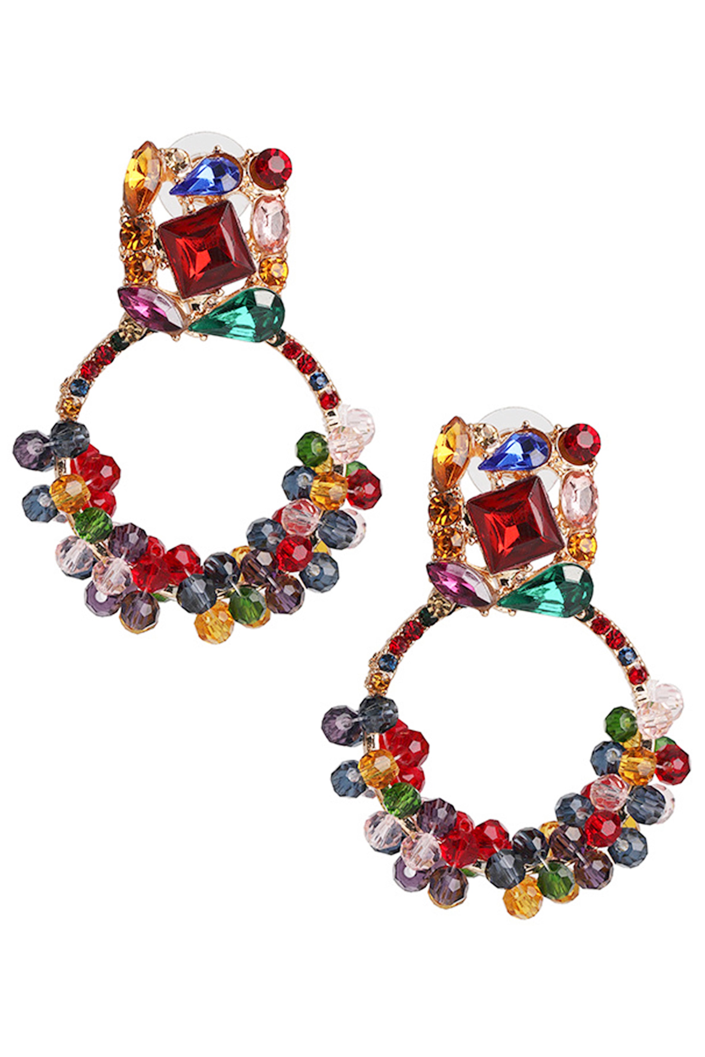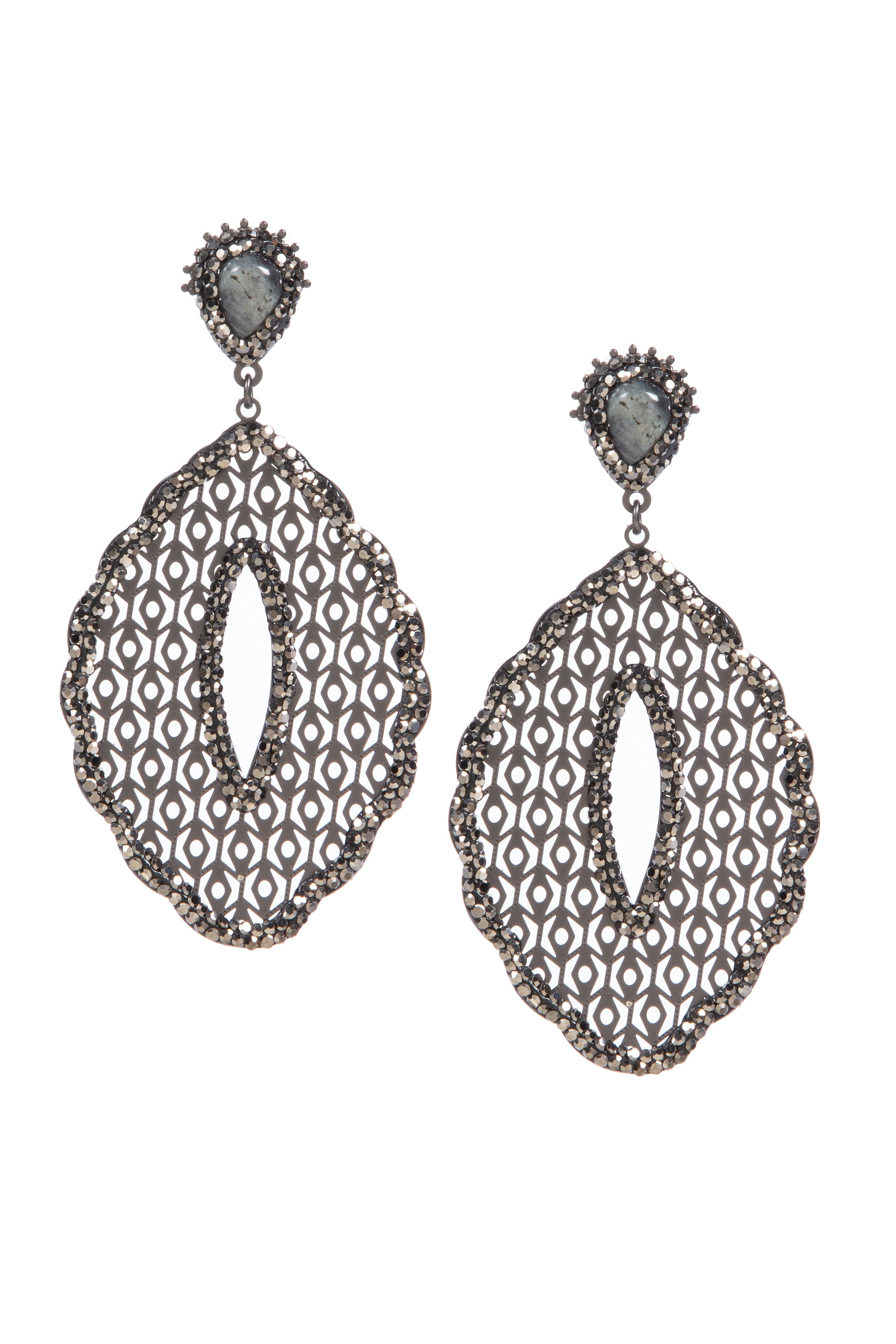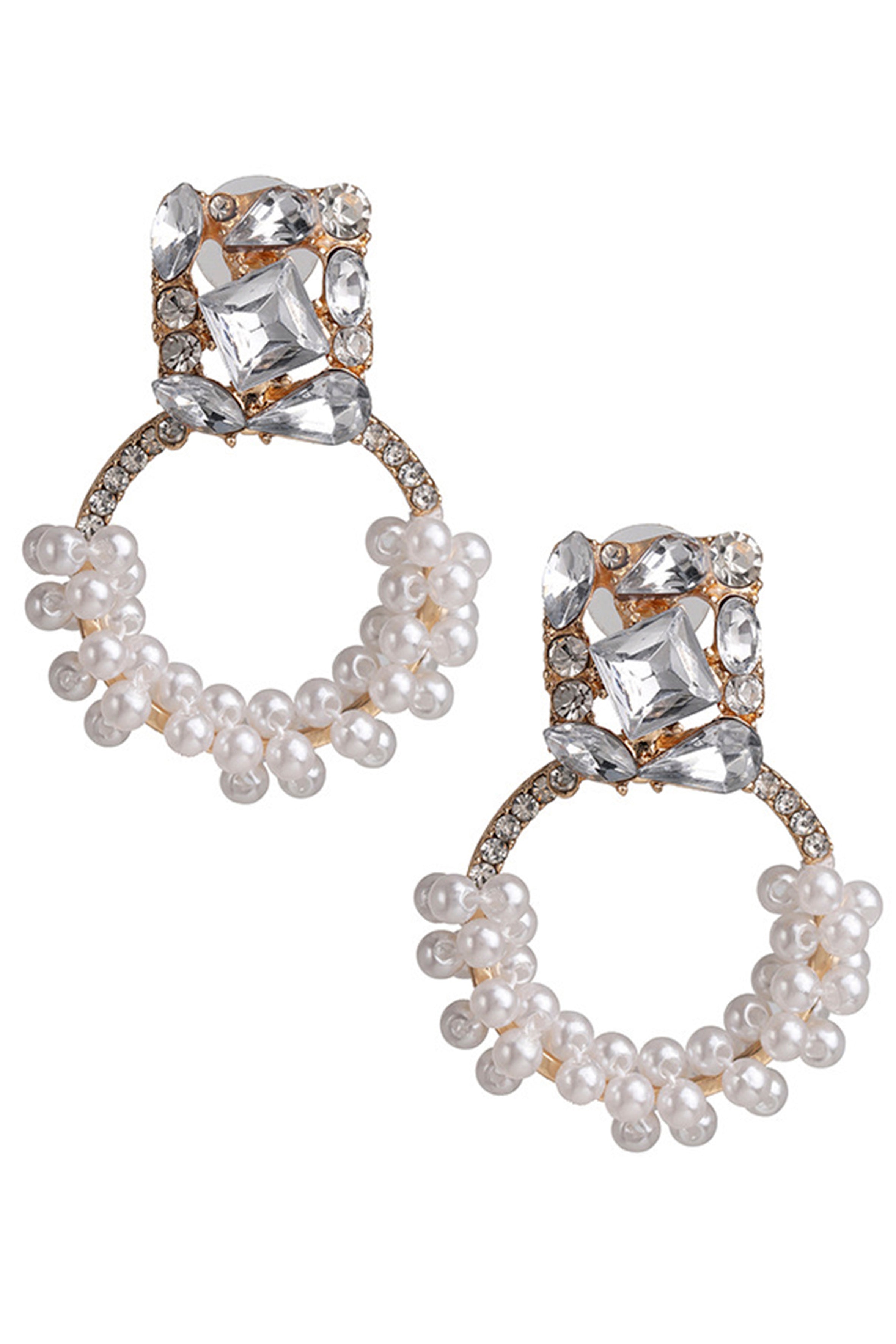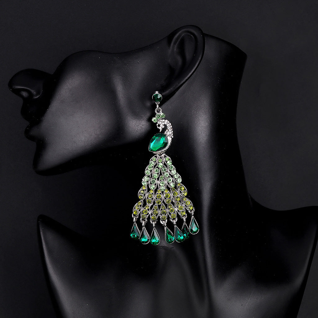 Pendientes geométricos de aleación con diamantes de imitación turquesa E8597