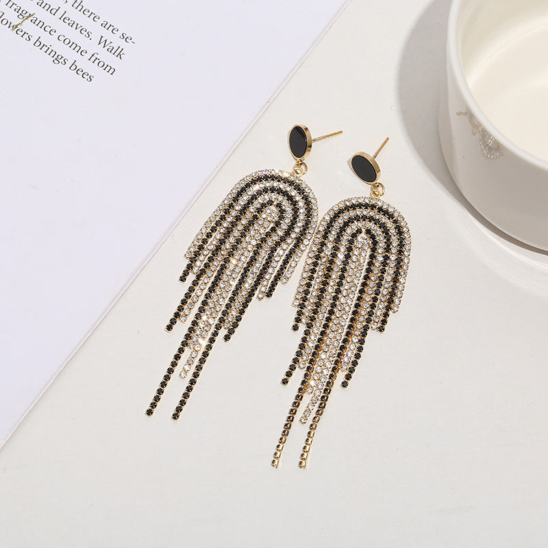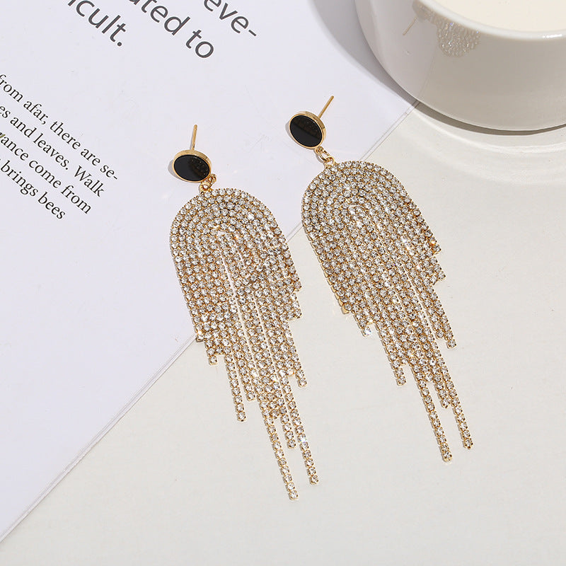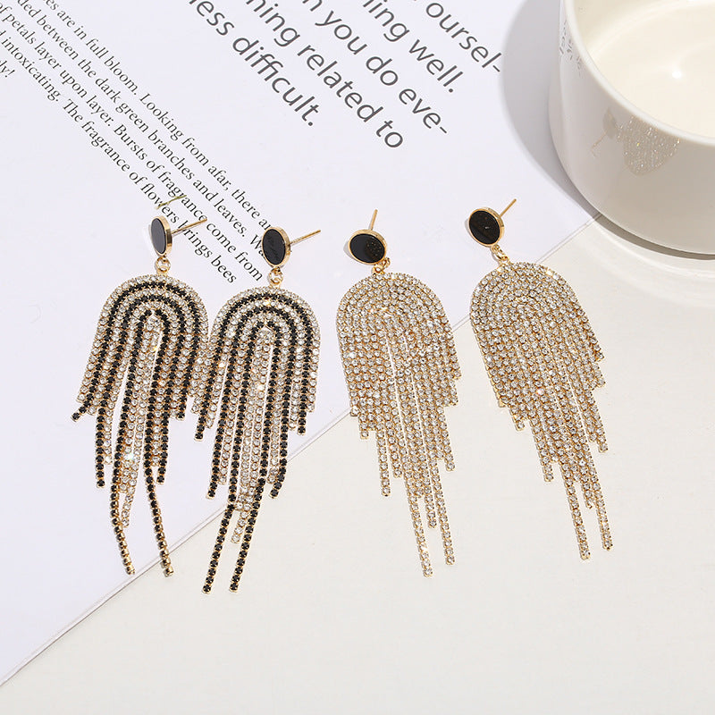 Pendientes con borlas y diamantes de imitación en forma de cruz E7305