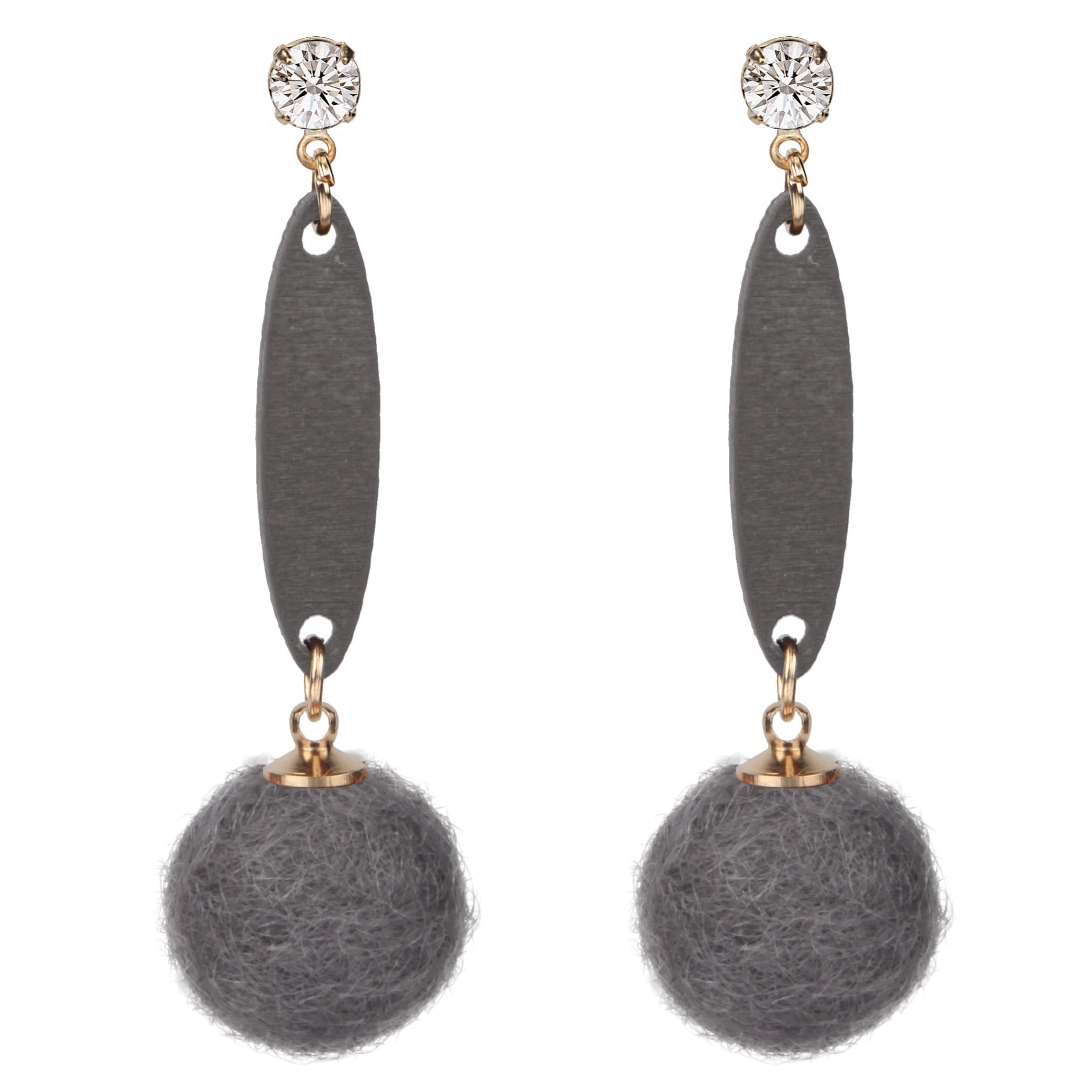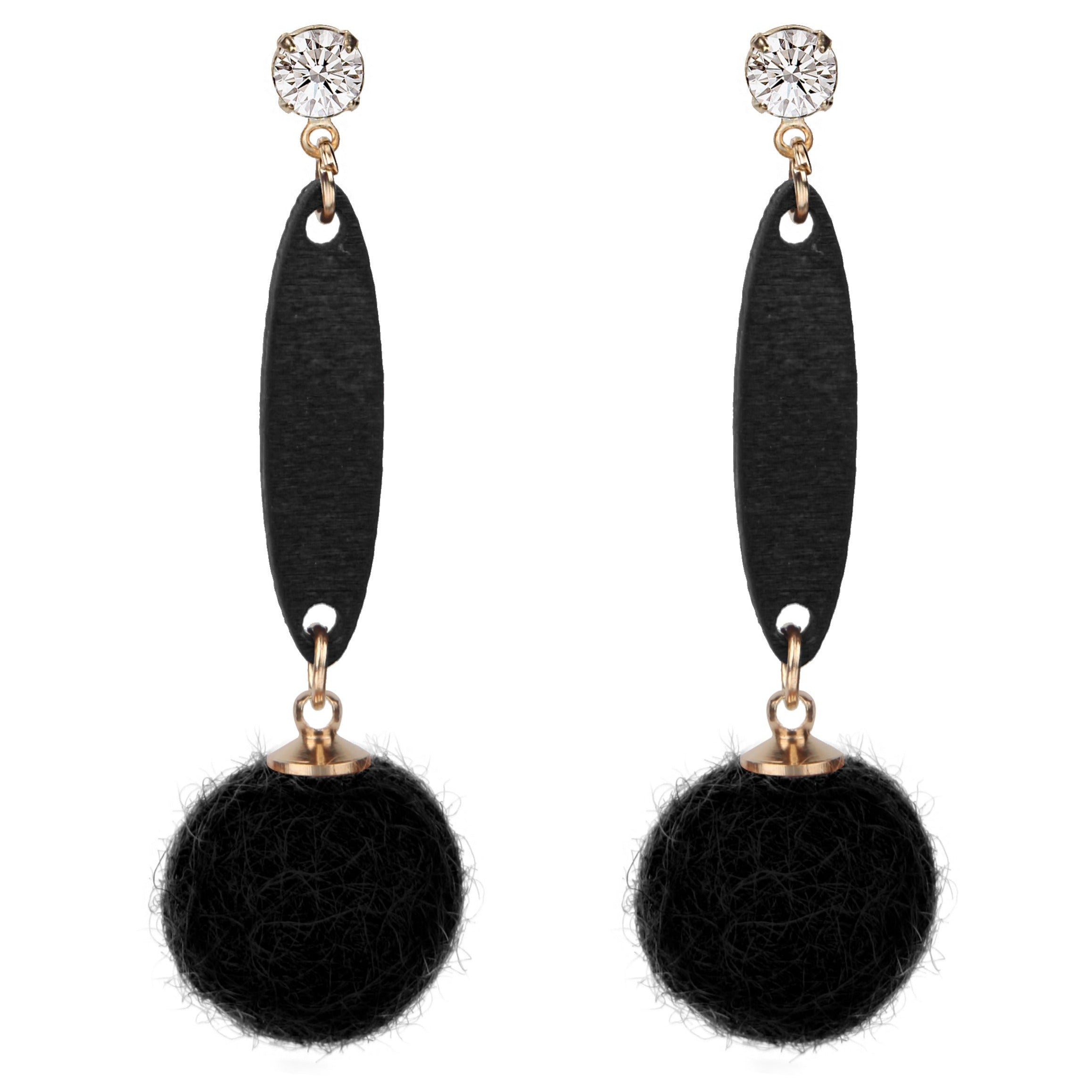 Pendiente colgante de madera con bola de pelo y cristal E2820