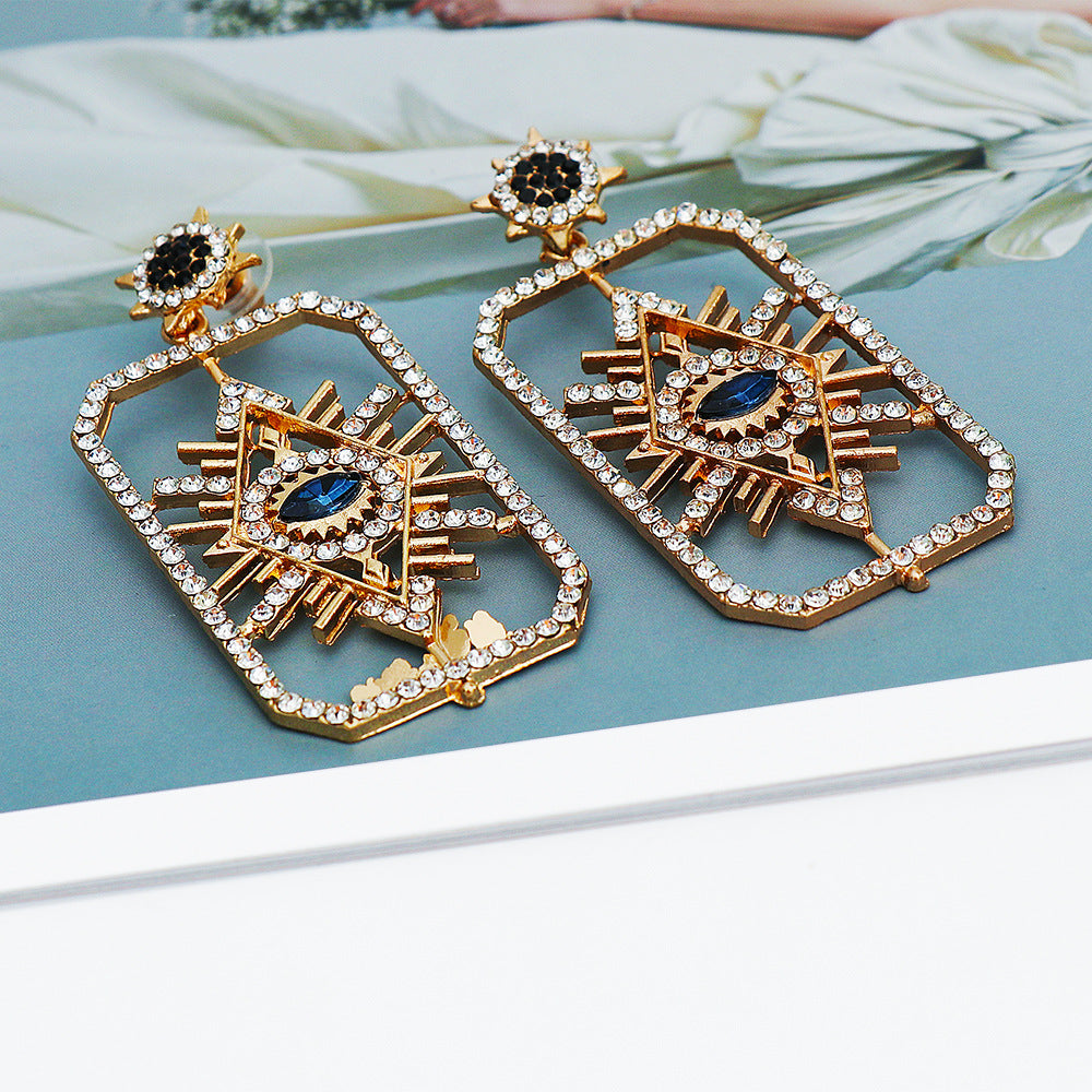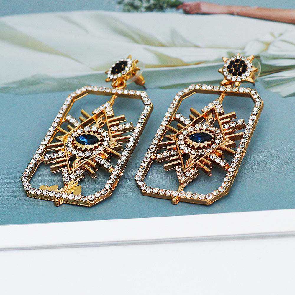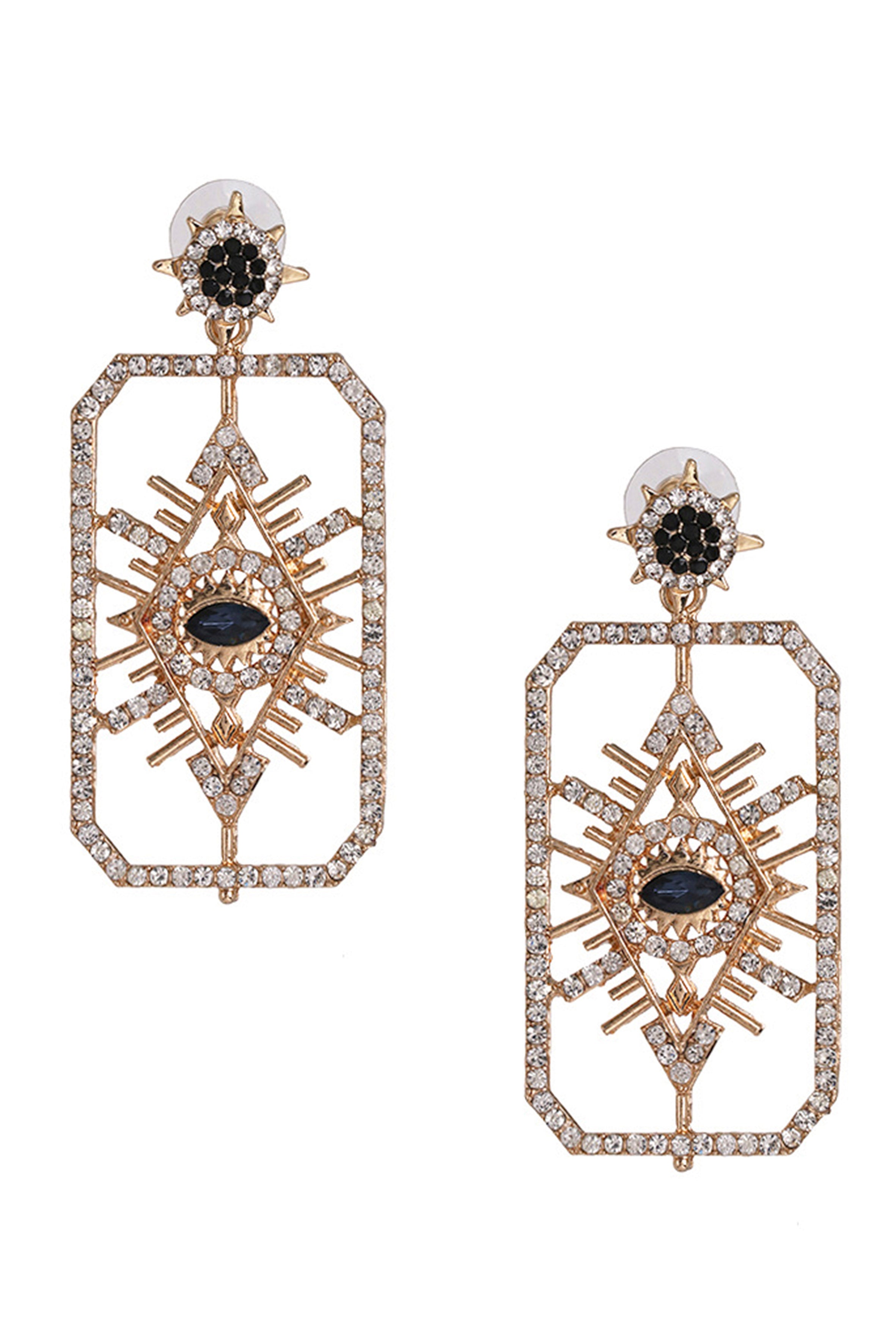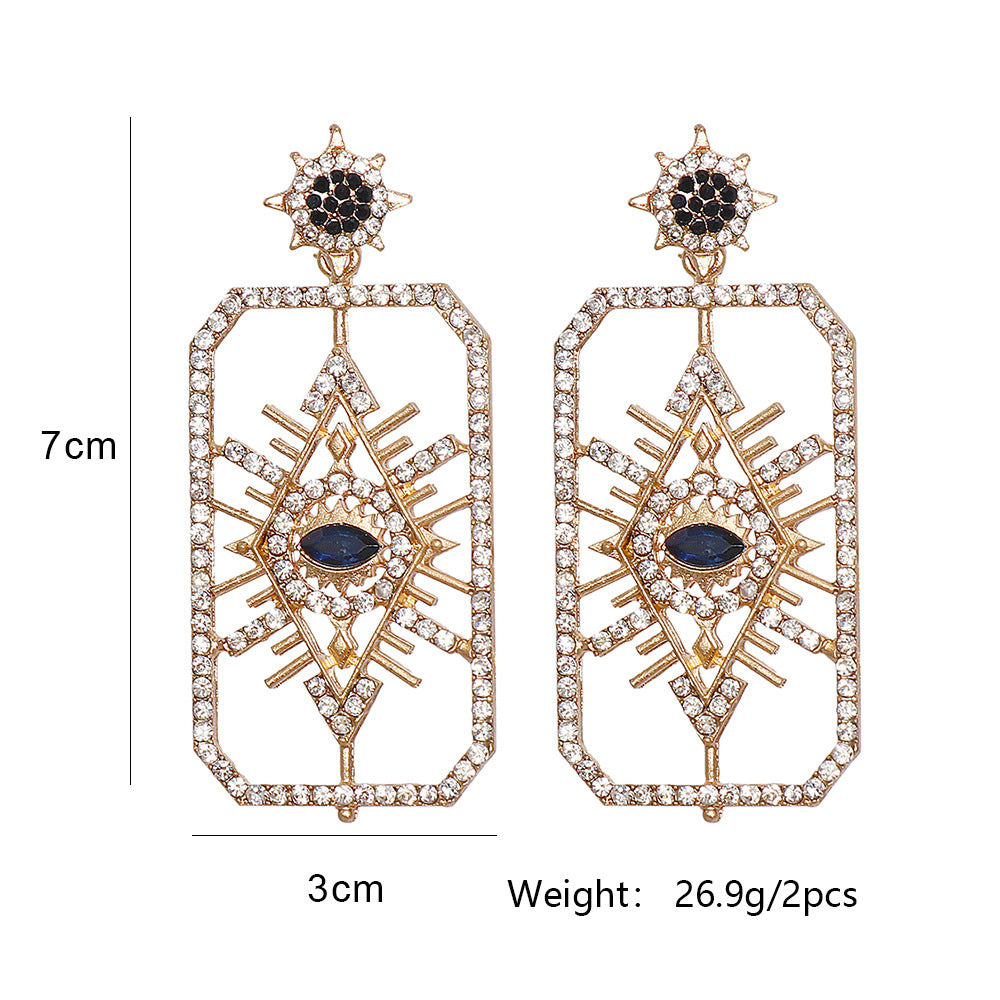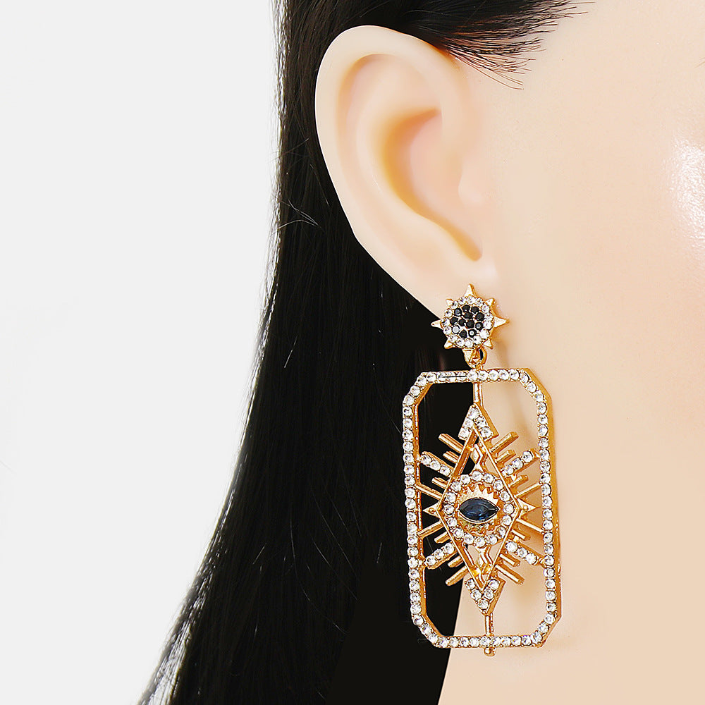 Pendientes rectangulares de diamantes de imitación con forma de ojo malvado E5468