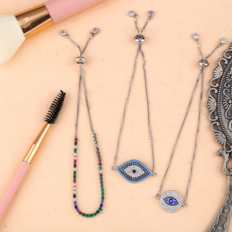 Pulseras de cadena de circonitas con ojo malvado B3138